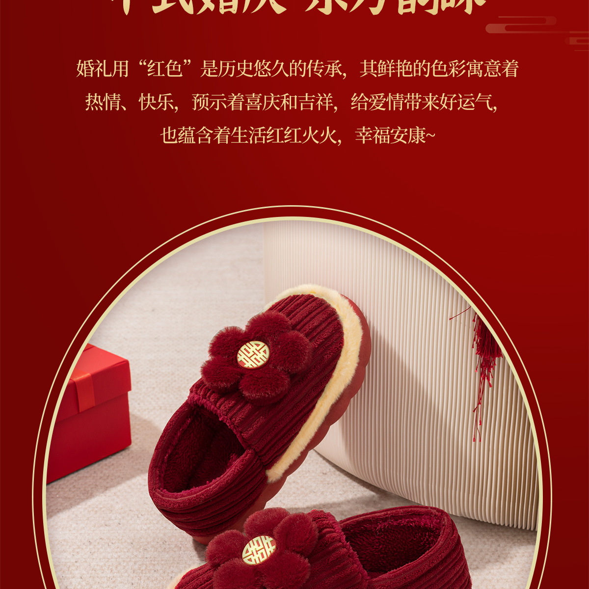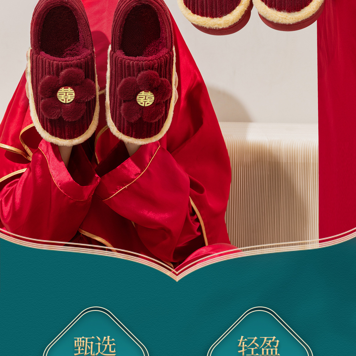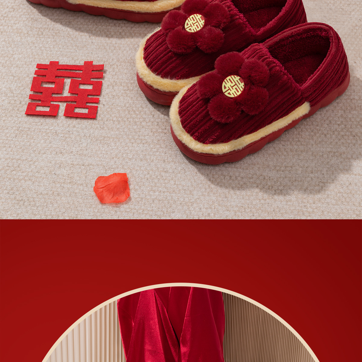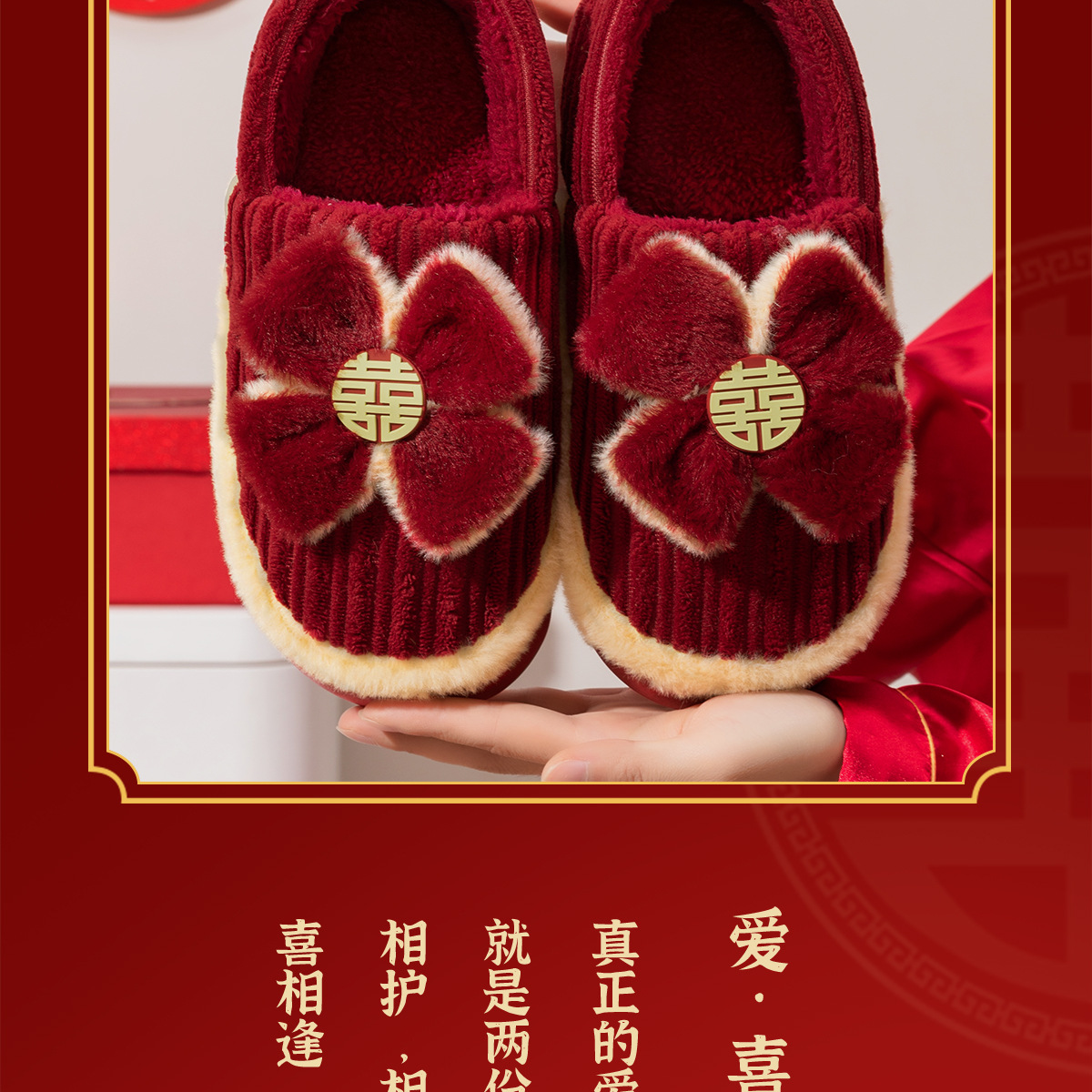 Красные хлопковые тапочки Зимние свадебные тапочки