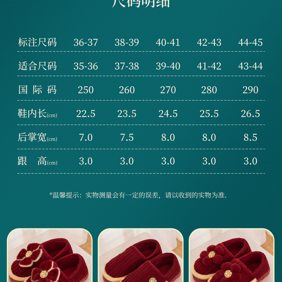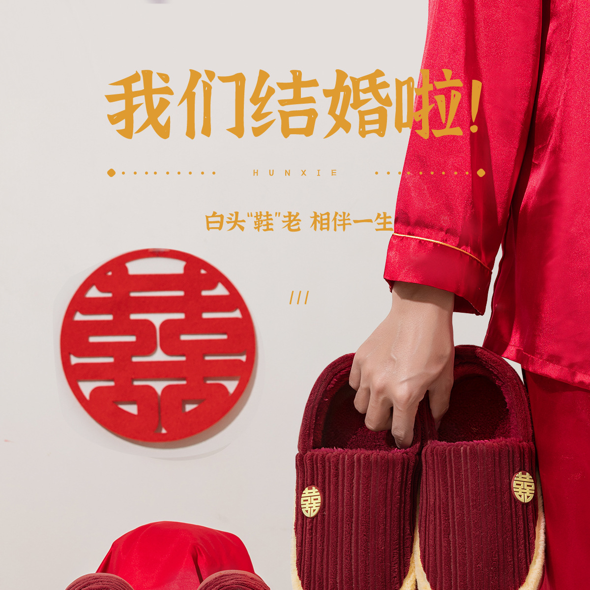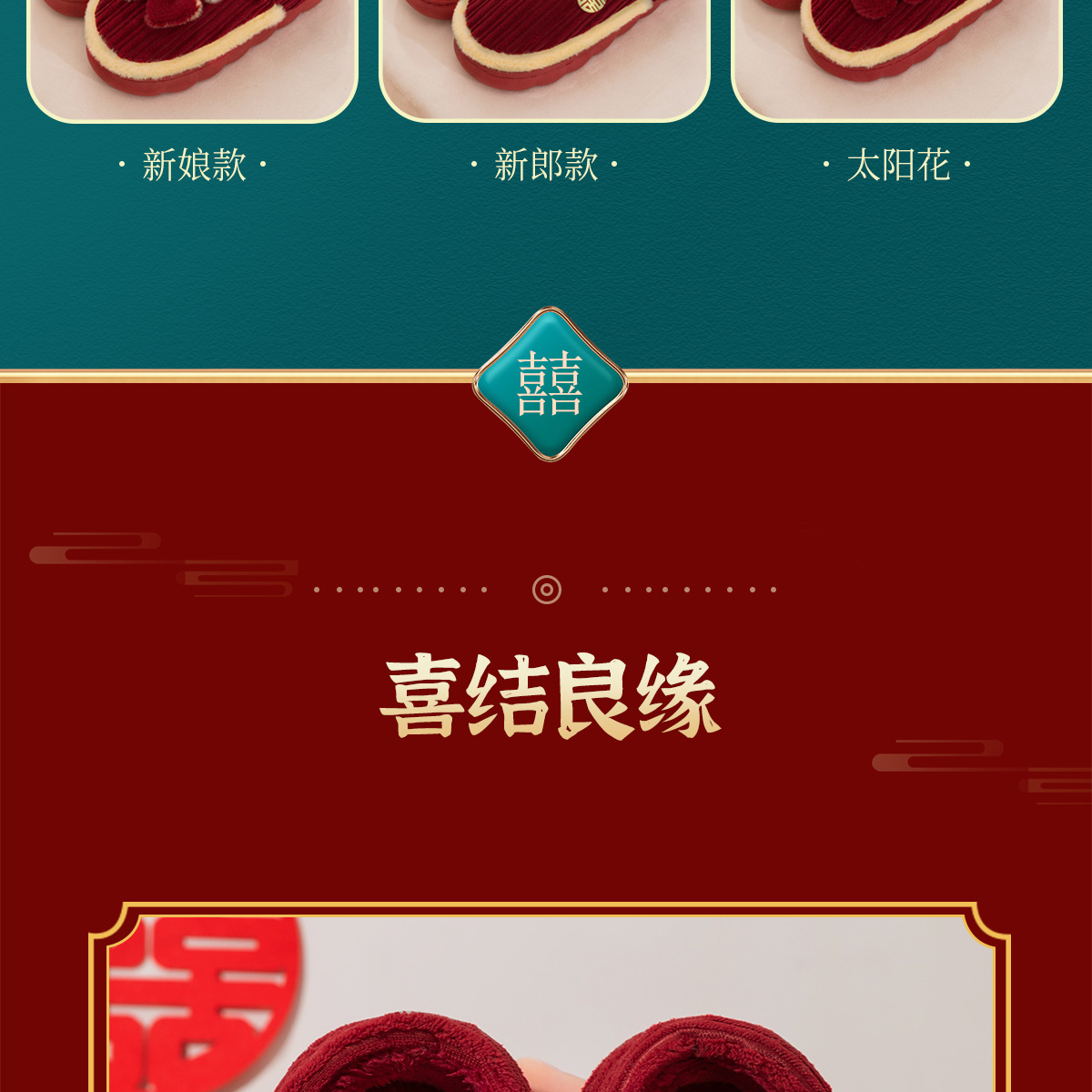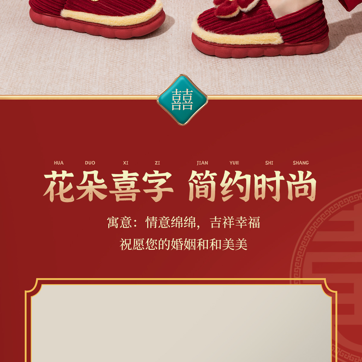 Красные хлопковые тапочки Зимние свадебные тапочки