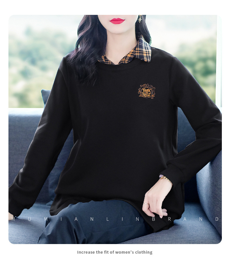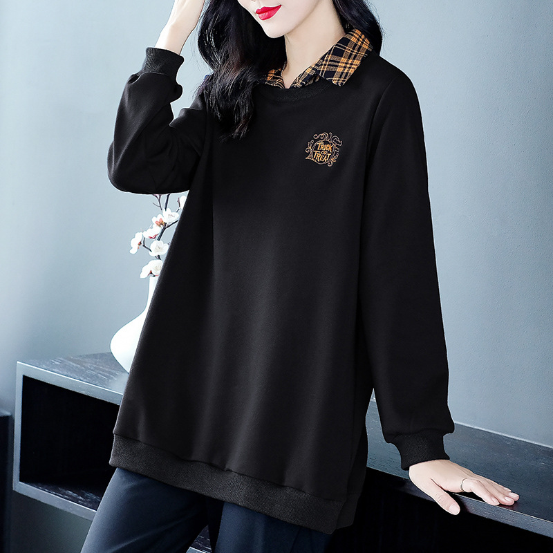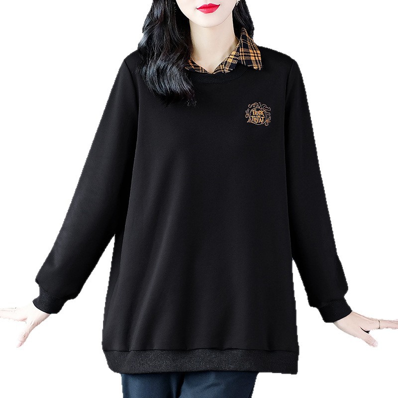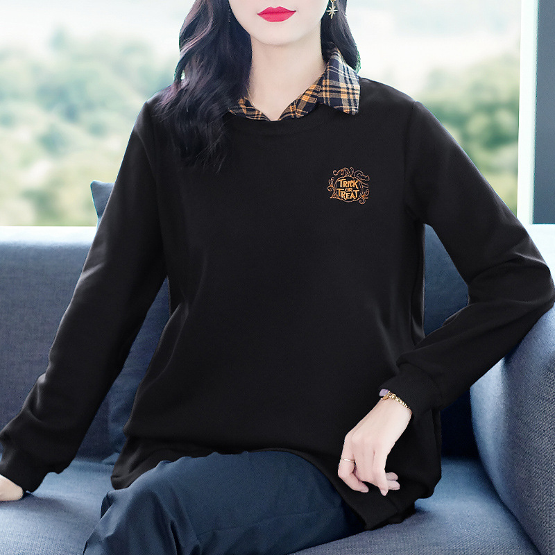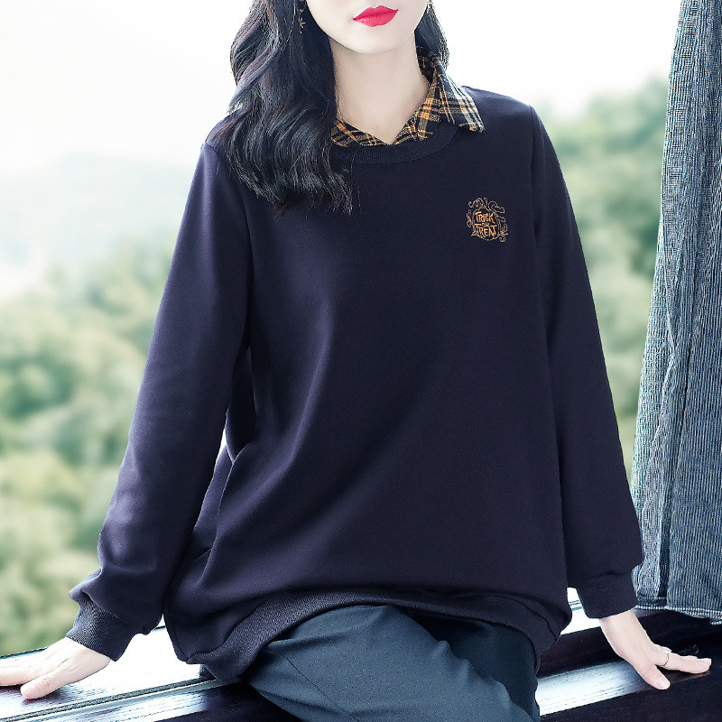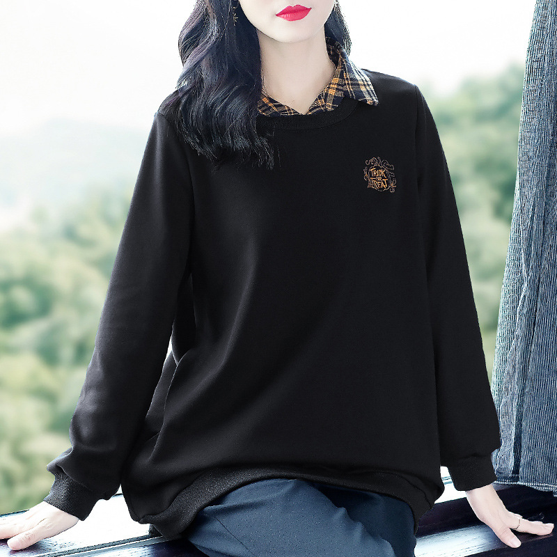 Осень и зима против морщин плюс размер лацкана POLO ретро дикий дном повседневная футболка с длинными рукавами топ для женщин среднего возраста
