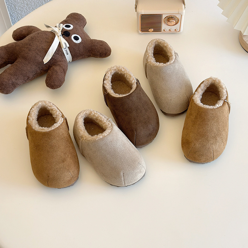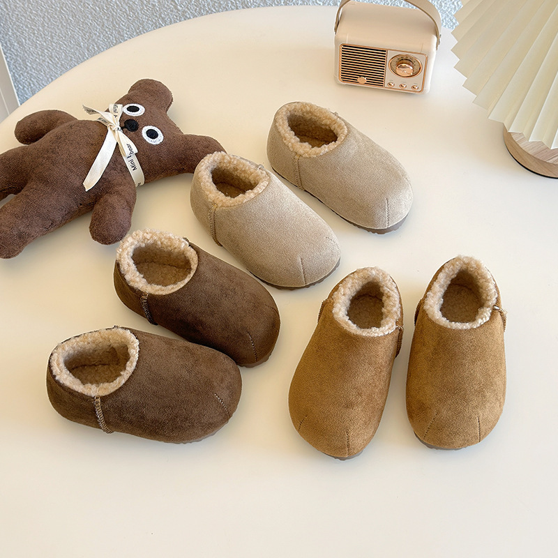 Хлопчатобумажная обувь для детей 2024 Зимняя корейская версия мужского и женского пола плюшевая утолщенная теплая обувь для хлеба
