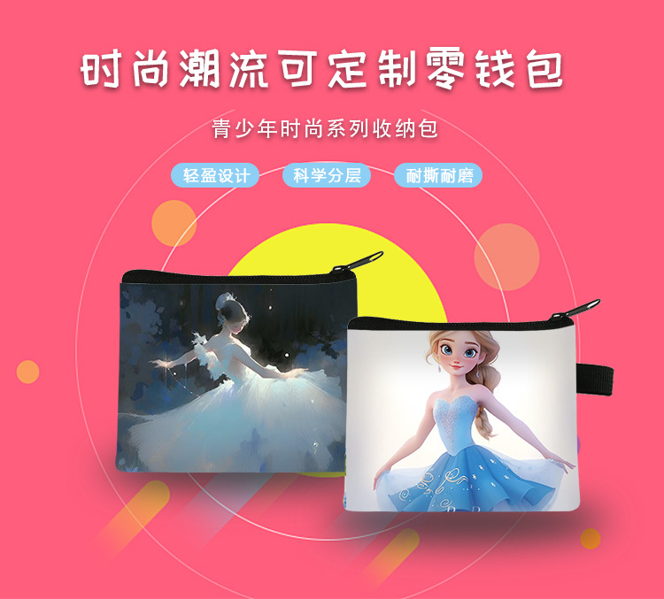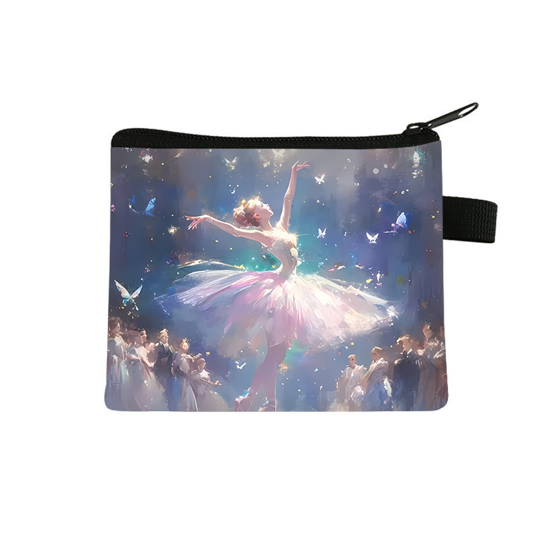 Мини-кошелек для монет в стиле балетного танца, держатель для школьных пропусков, ультралегкая унисекс-сумка на молнии с мультяшным принтом, оптовая продажа, хит продаж.