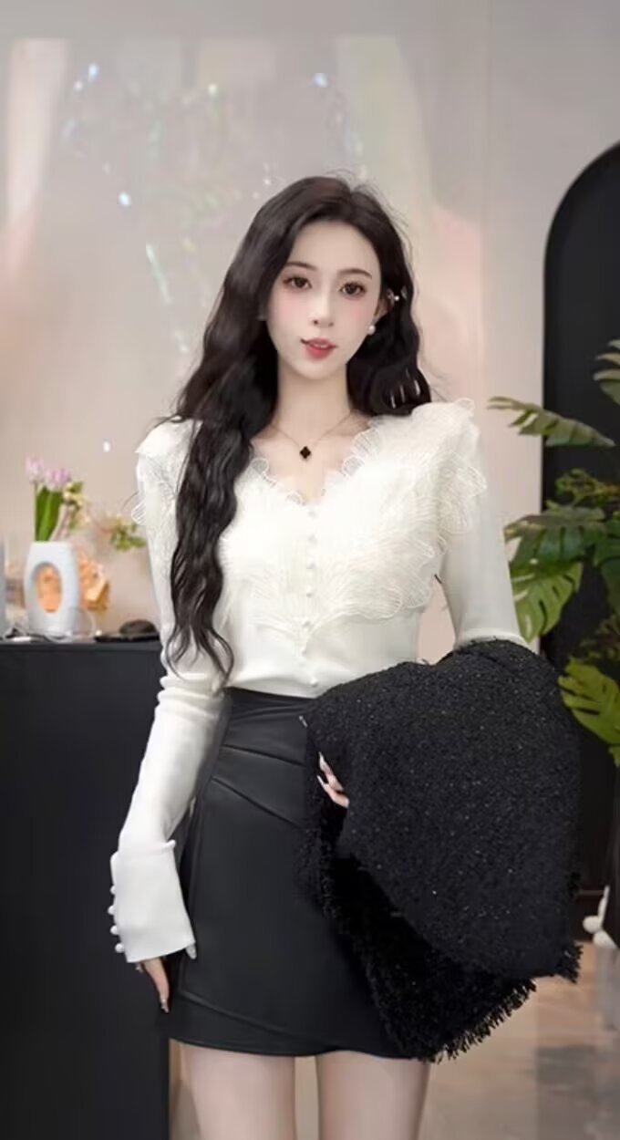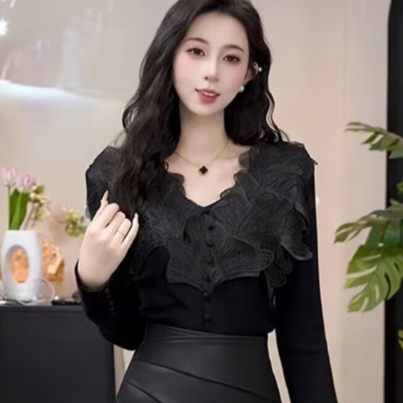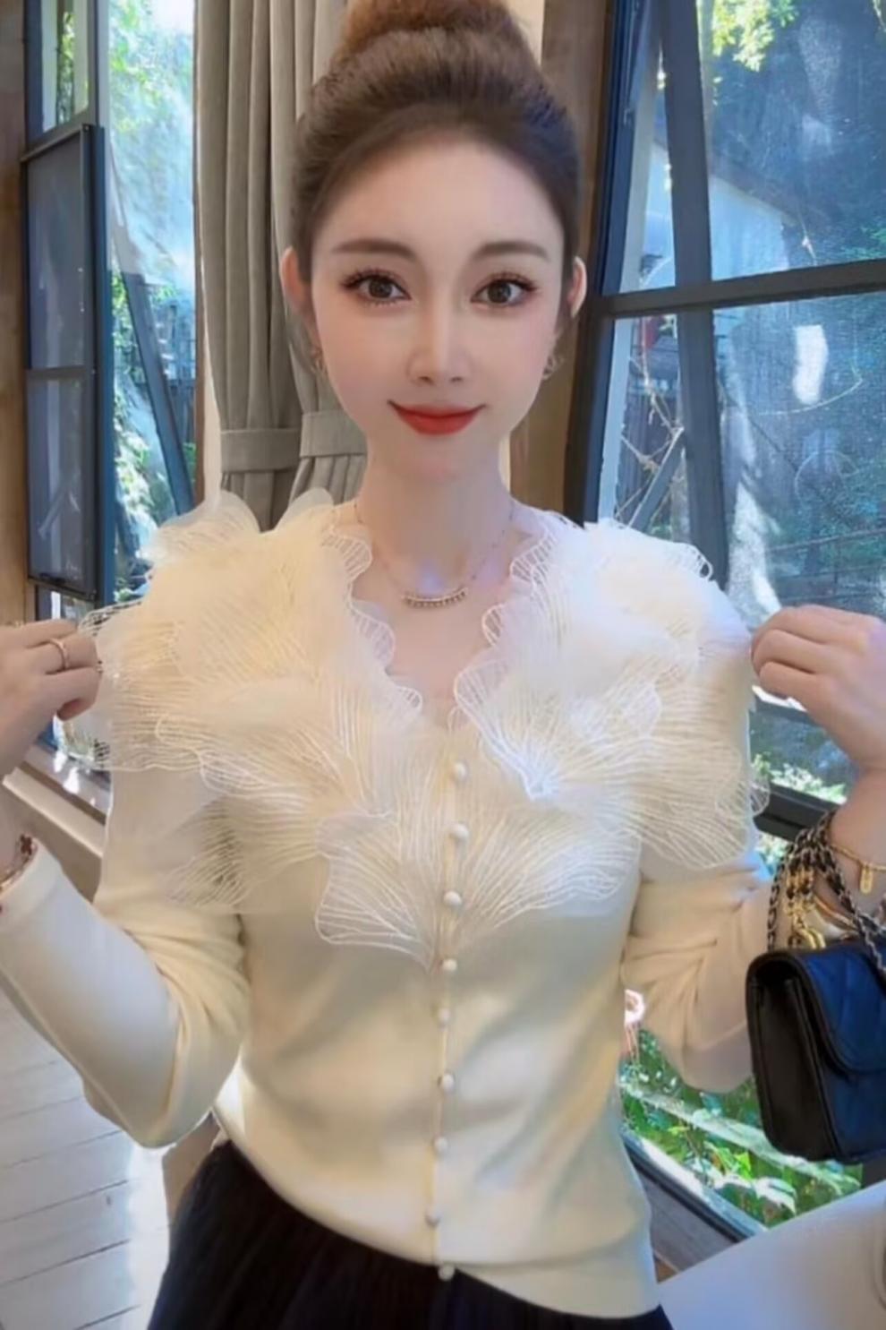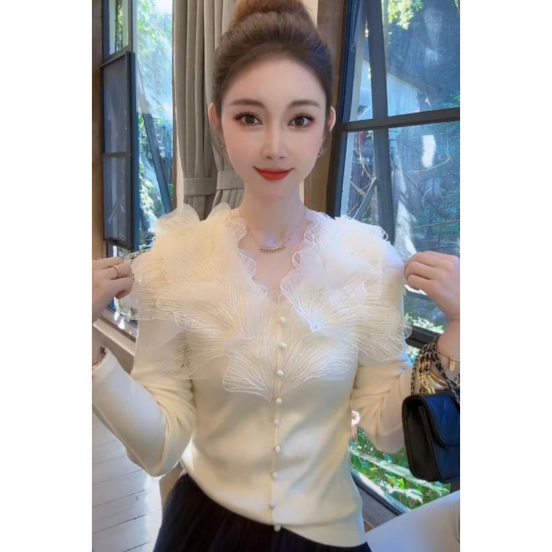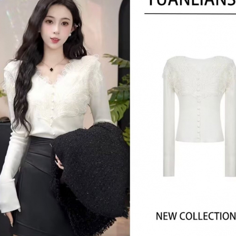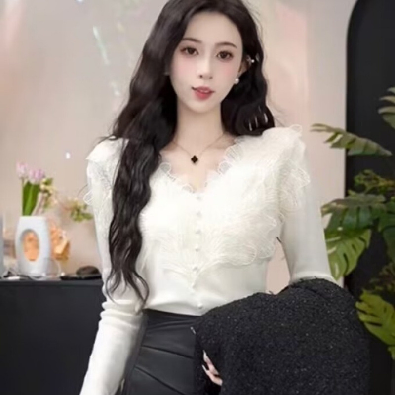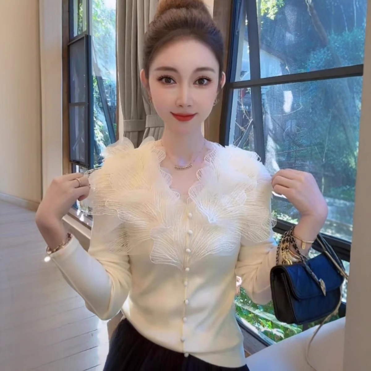 Прекрасный изысканный кружевной сшитый свитер женский осенний банкет сестры новый топ знакомства атмосфера трикотажный кардиган