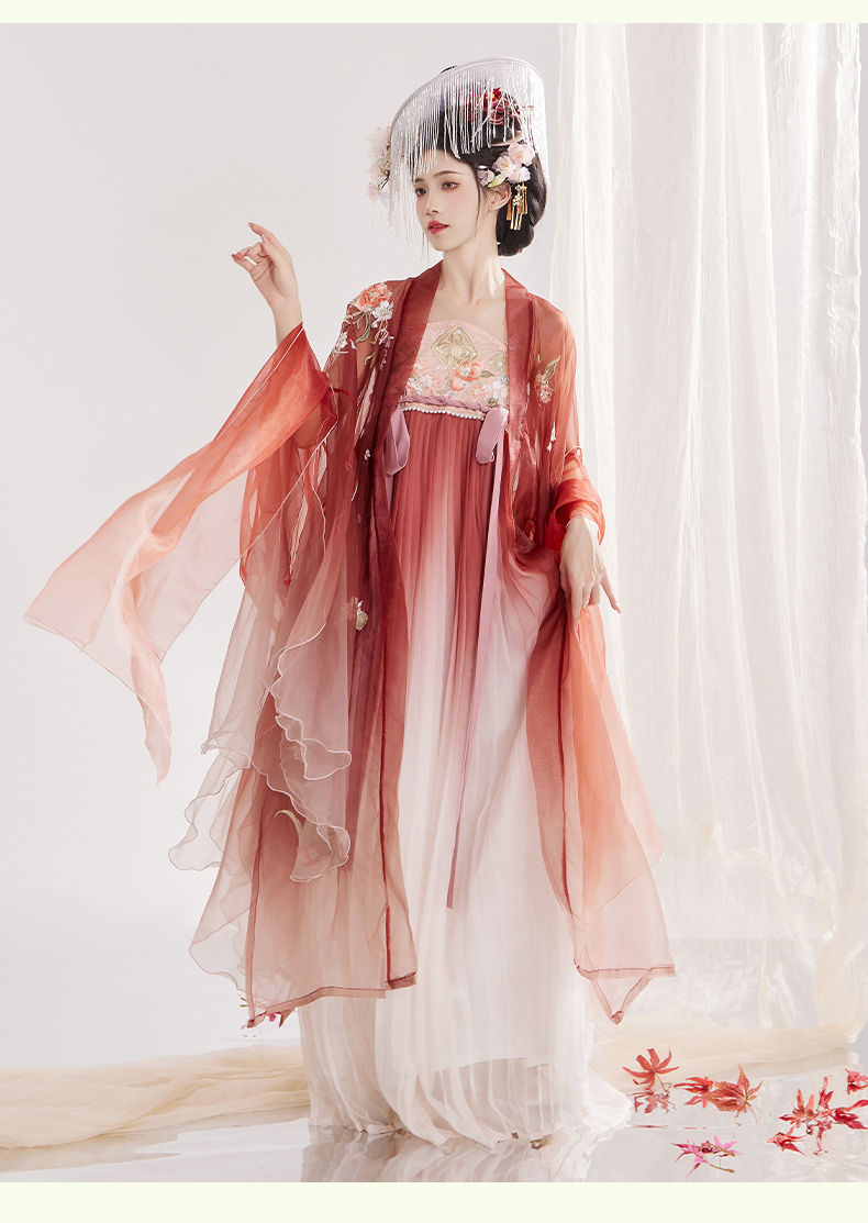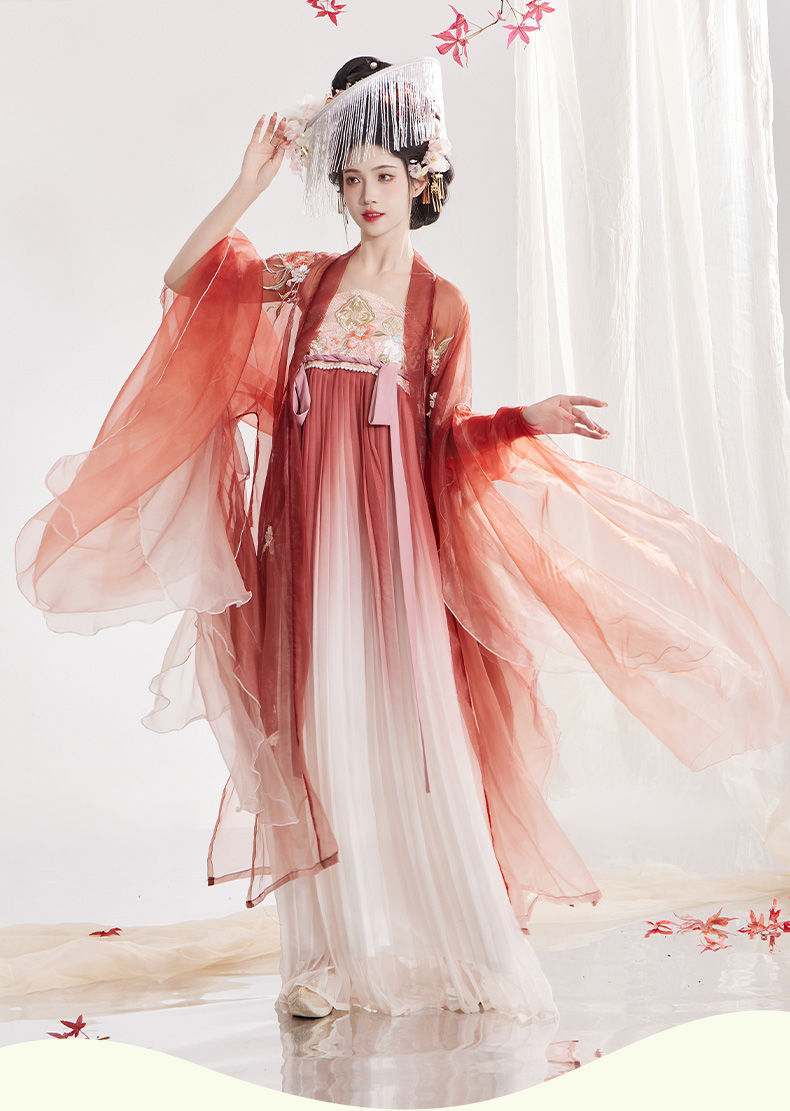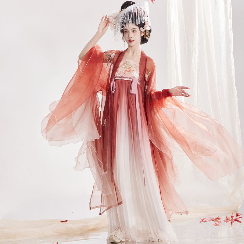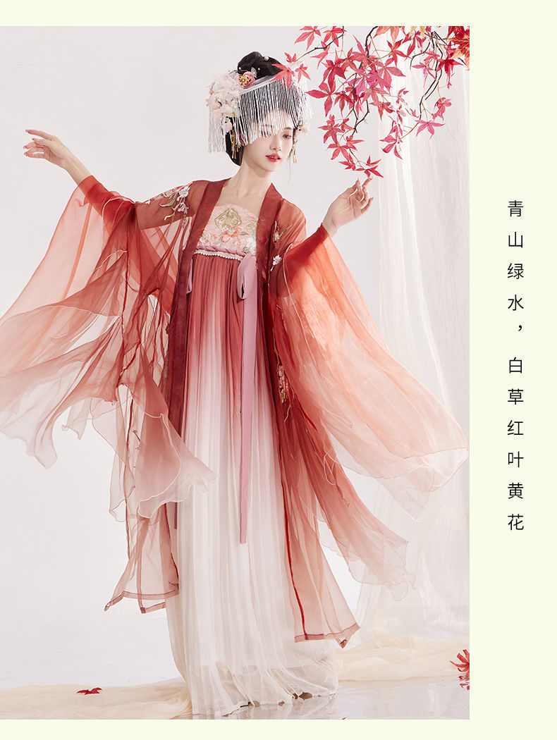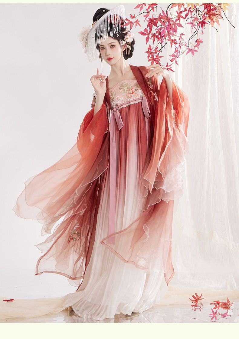 Новый оригинальный Hanfu Girl [персиковый цвет] Tang Cerry юбка с большими рукавами рубашка с тяжелой вышивкой фея весна и лето набор