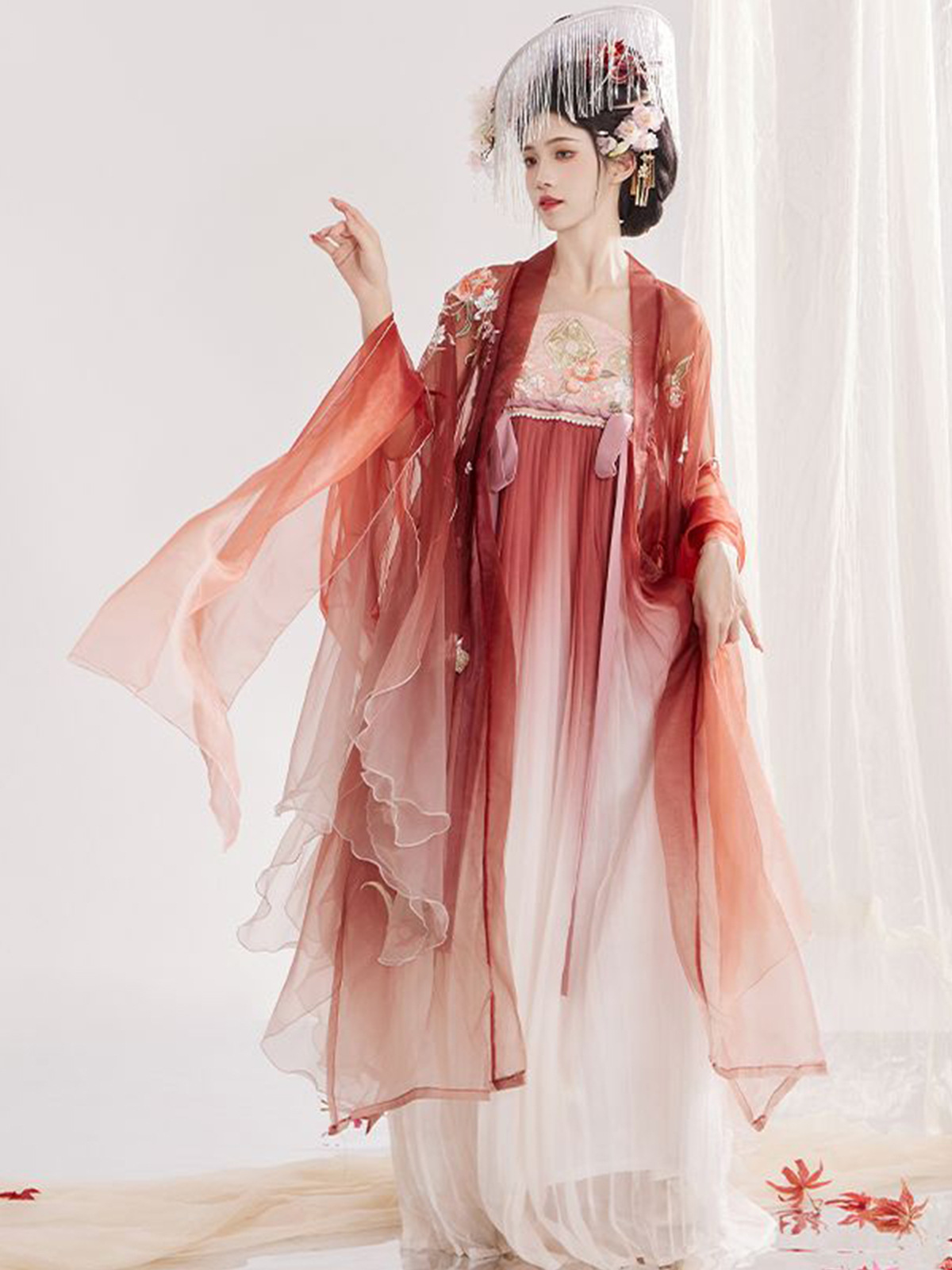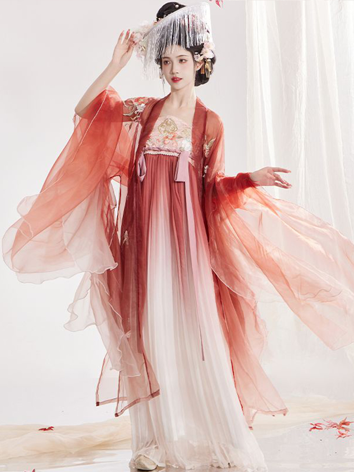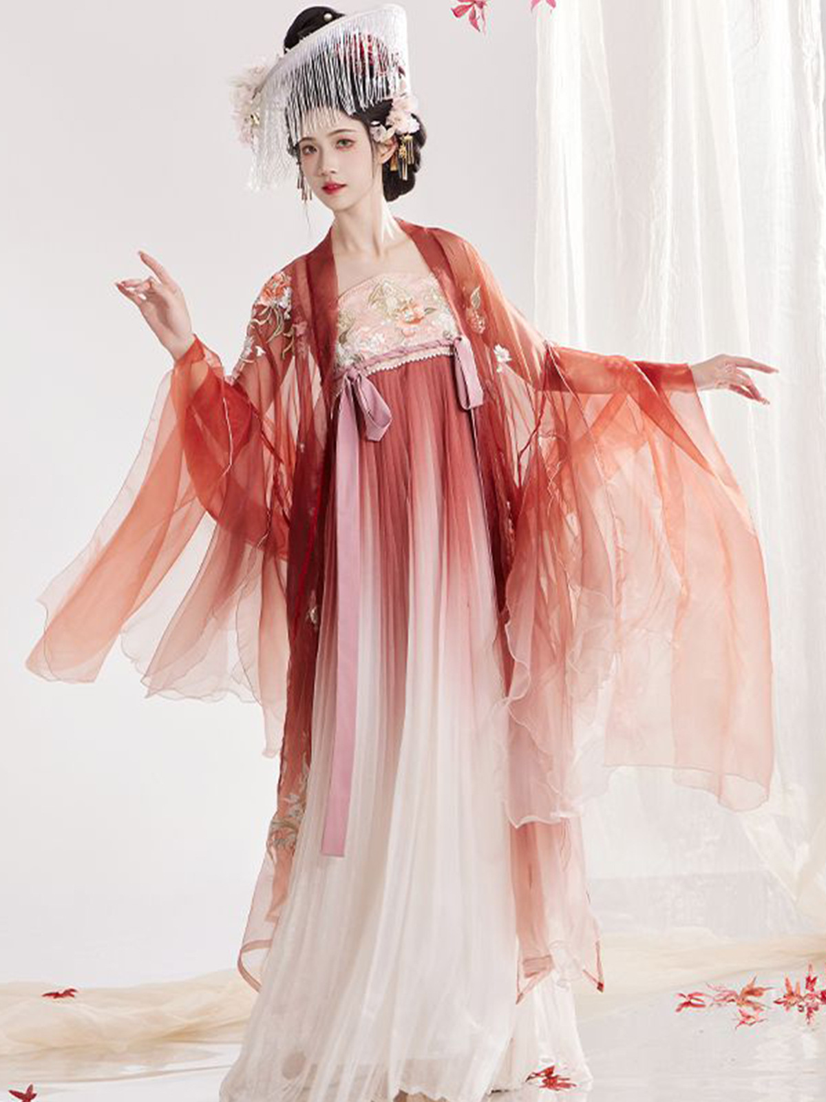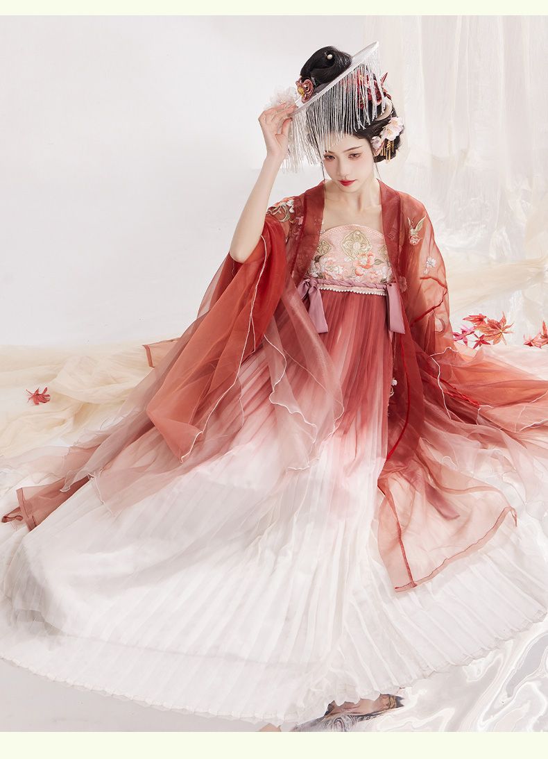 Новый оригинальный Hanfu Girl [персиковый цвет] Tang Cerry юбка с большими рукавами рубашка с тяжелой вышивкой фея весна и лето набор