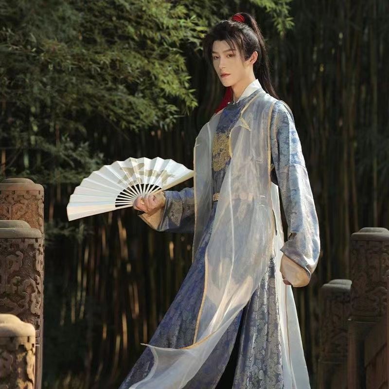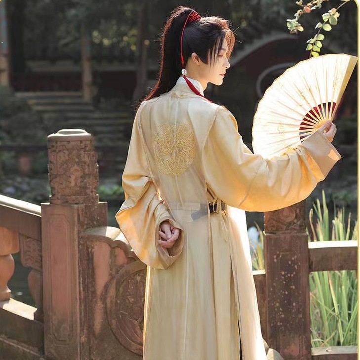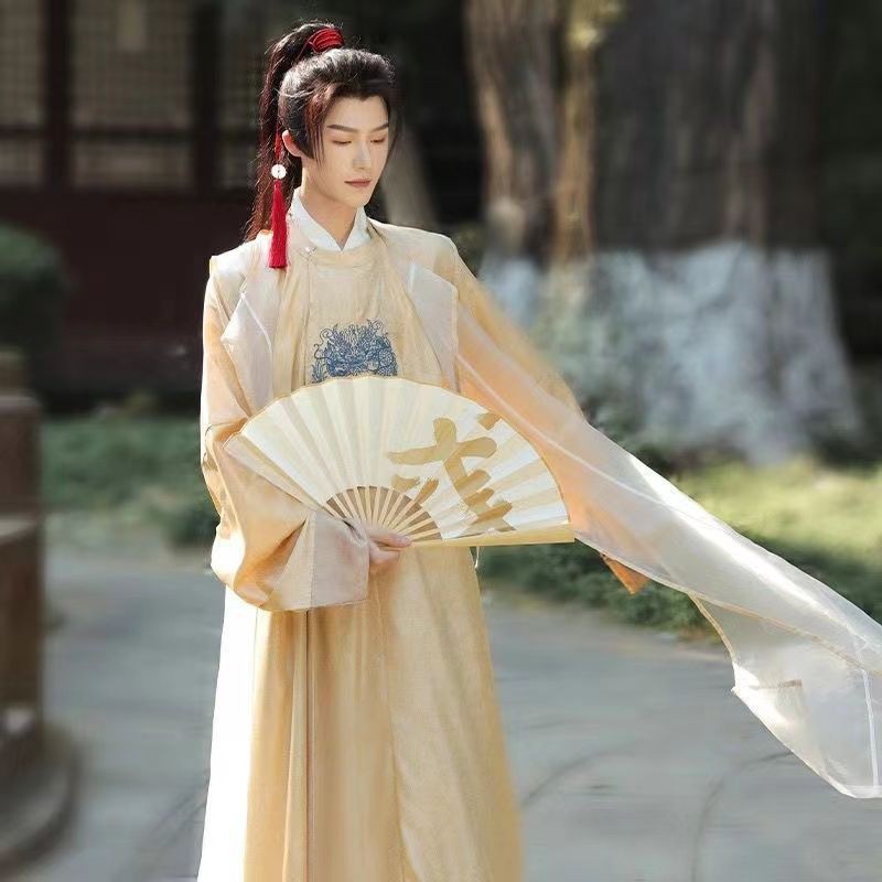 Внешний чехол с вышивкой + желтый халат с круглым вырезом + складной веер с кожаным ремнем; Внешний чехол с вышивкой + синий халат с круглым вырезом + складной веер с кожаным ремнем; Синий халат с круглым вырезом и вышивкой; Желтый халат с круглым вырезом и вышивкой