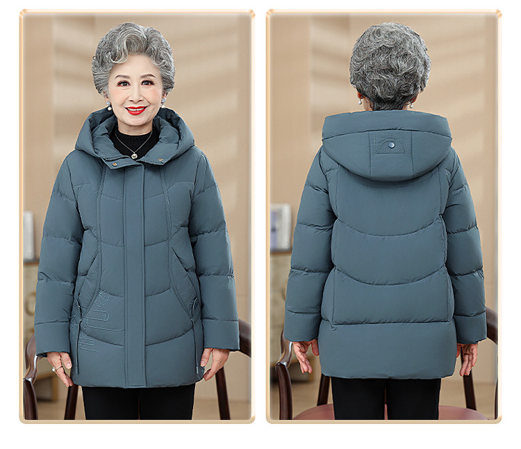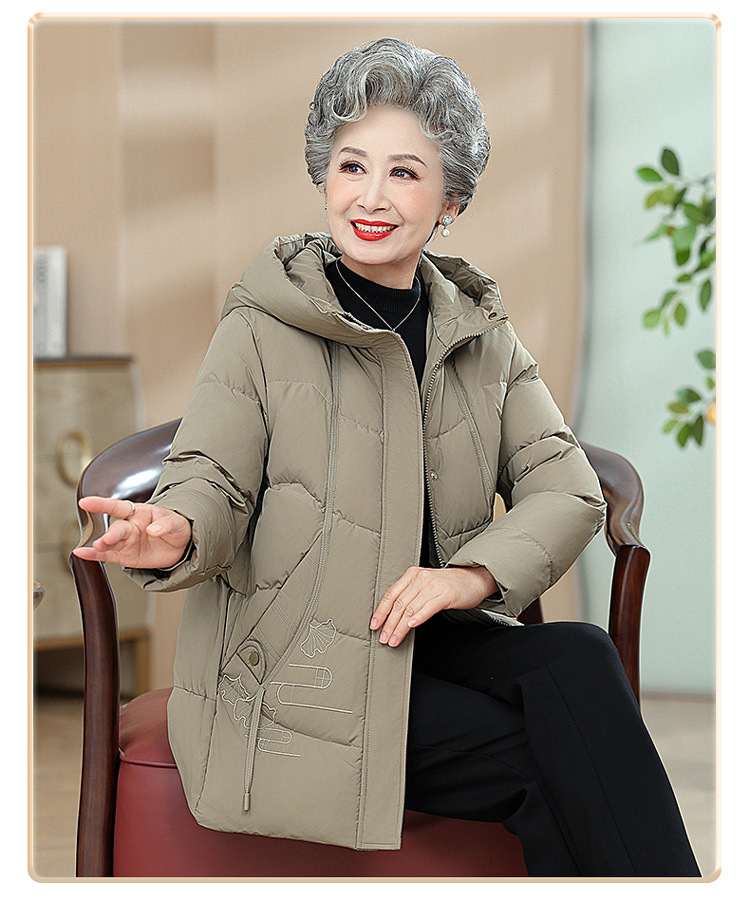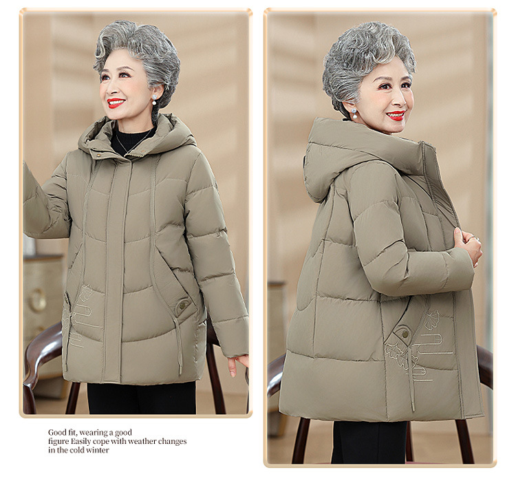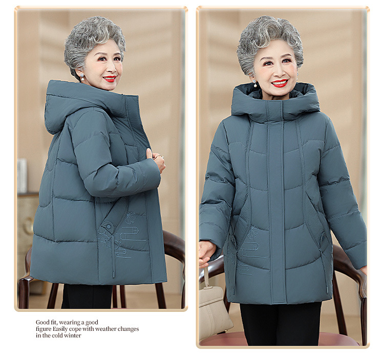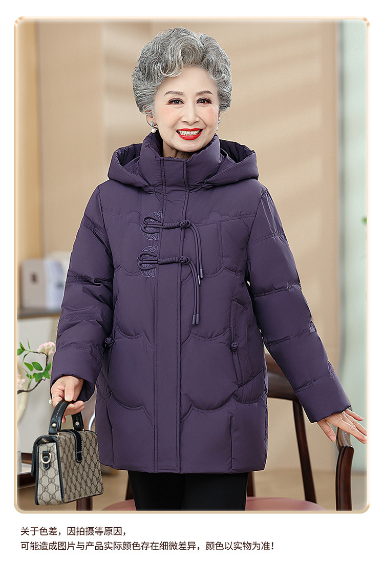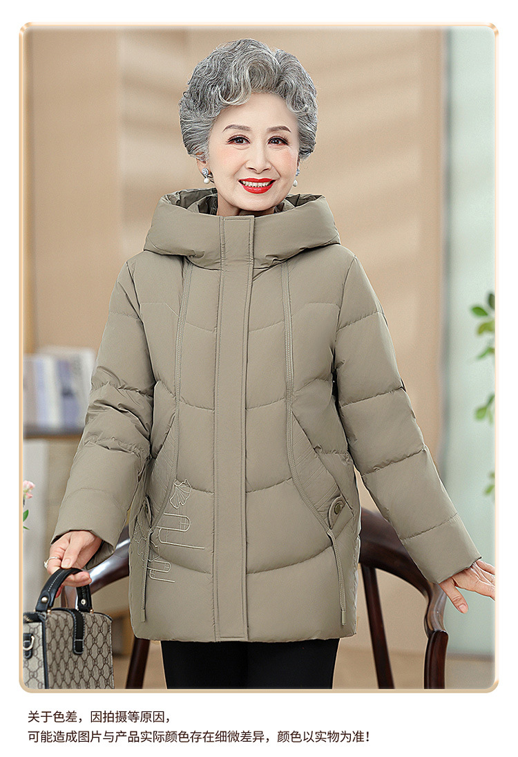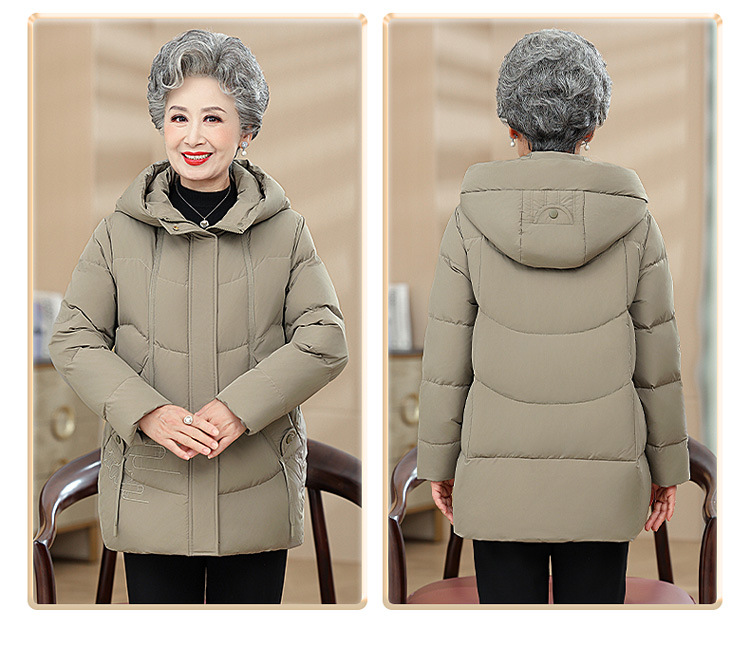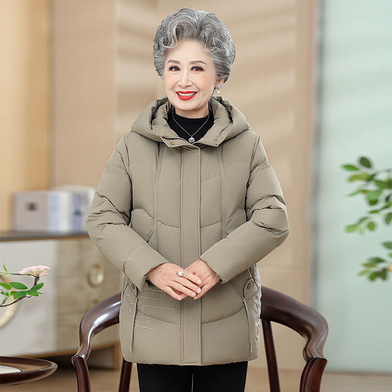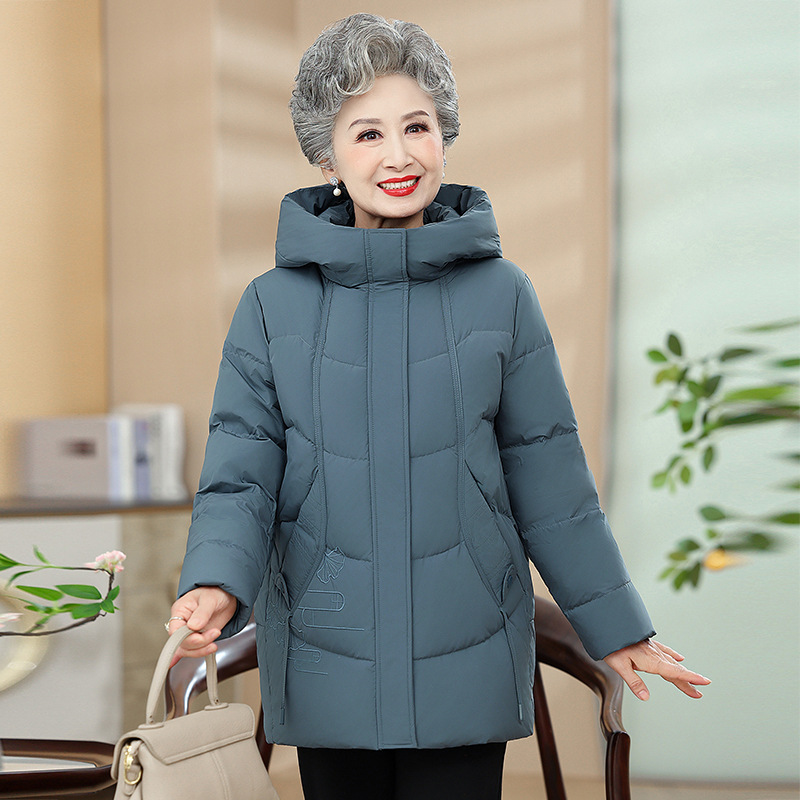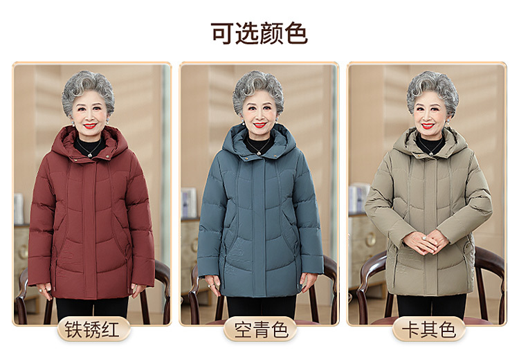 Женщины среднего и пожилого возраста белая утка пуховик топ мама зима новый свободный толстый с капюшоном теплое пальто