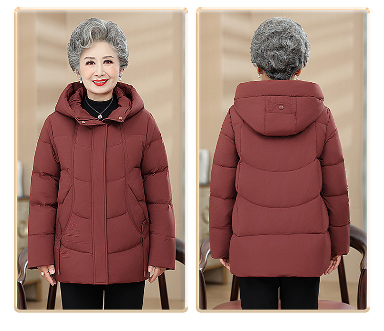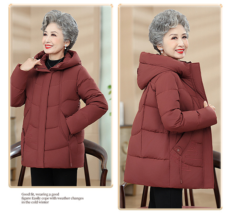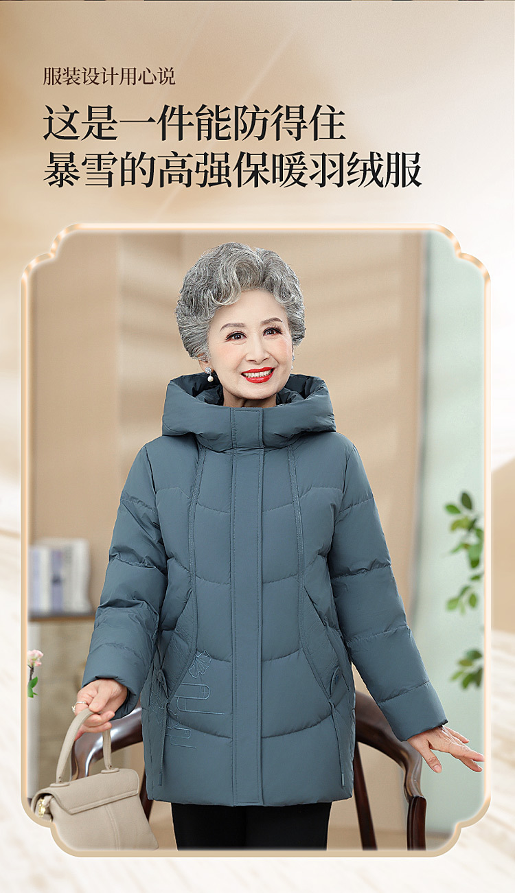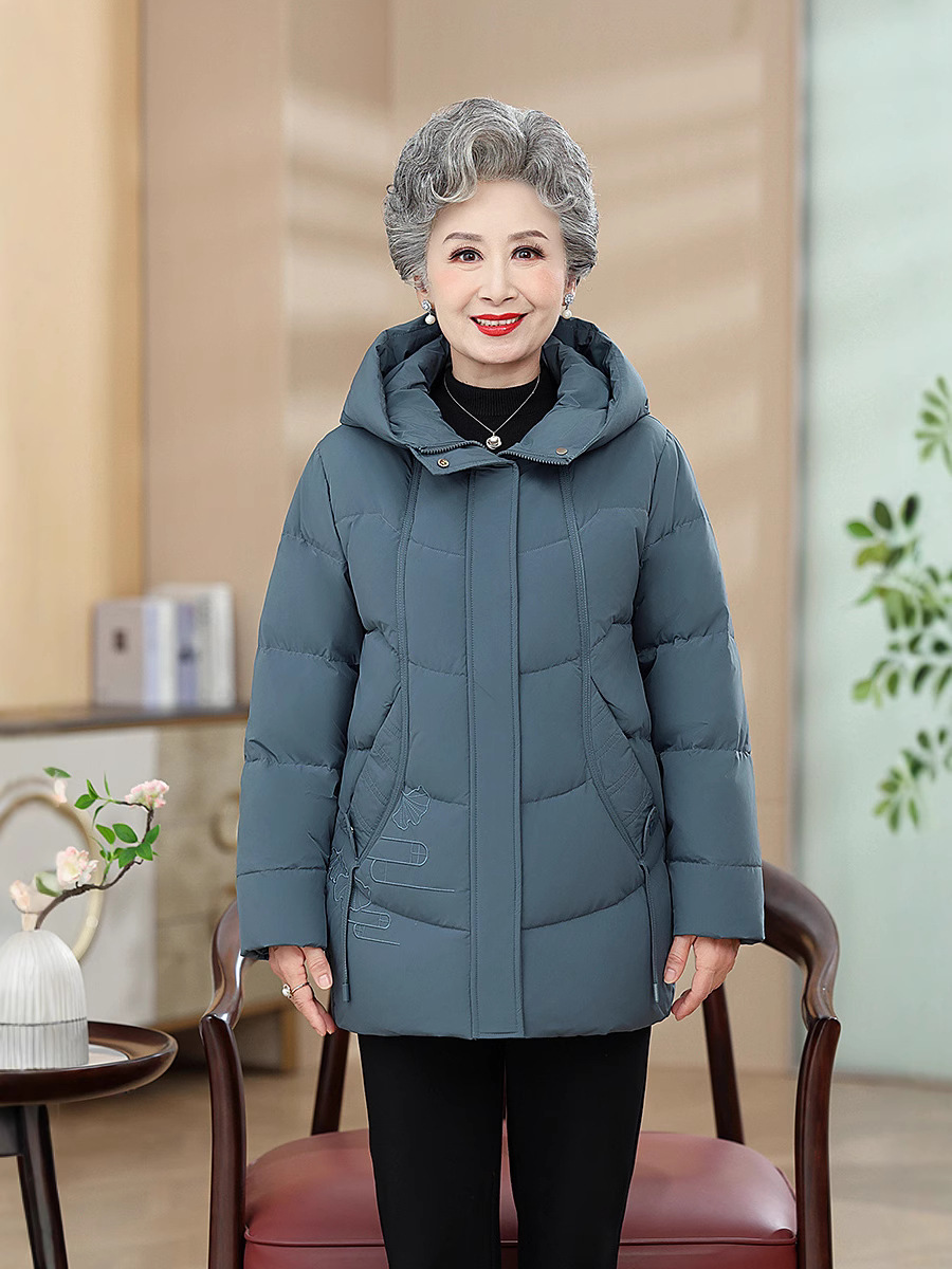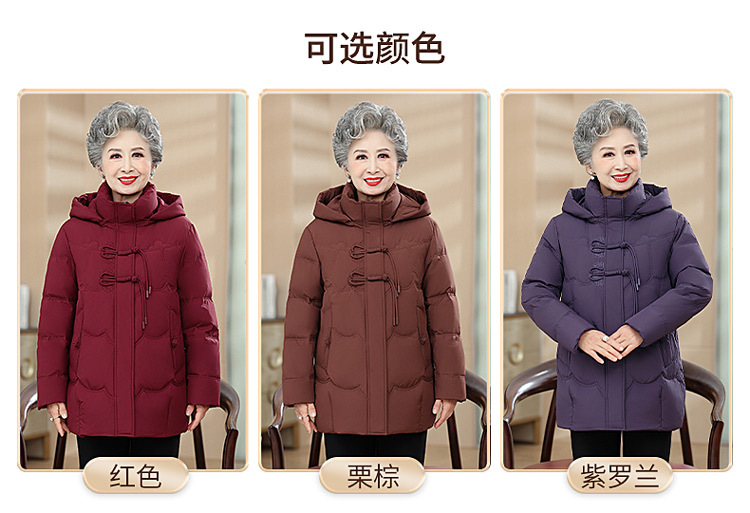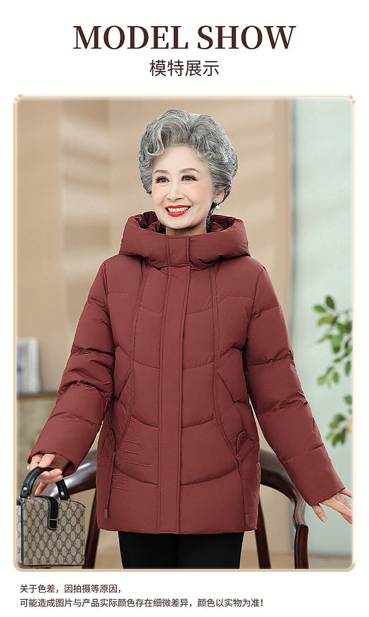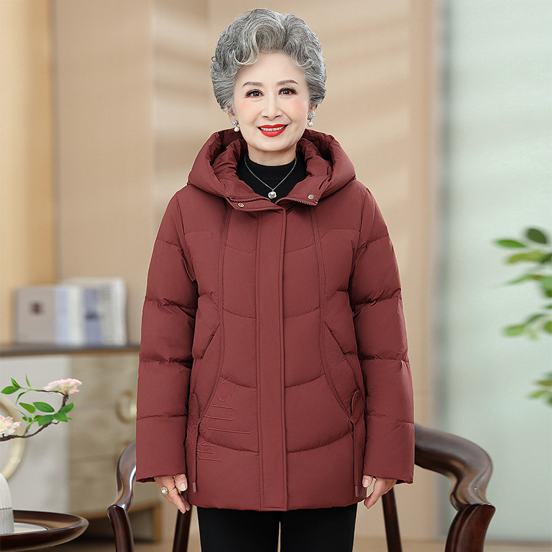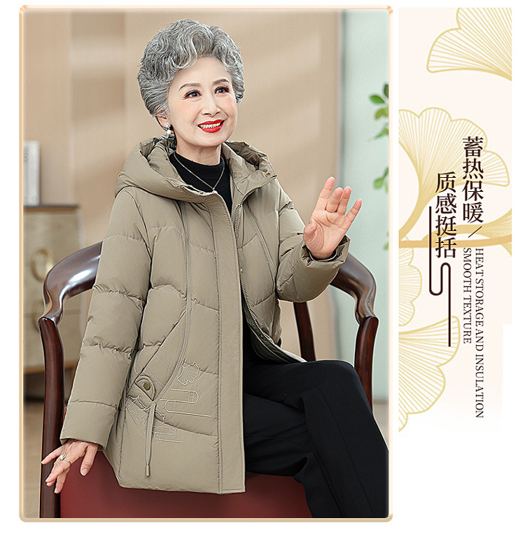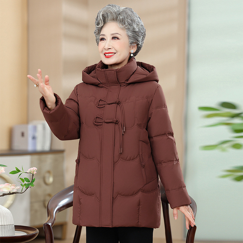 Женщины среднего и пожилого возраста белая утка пуховик топ мама зима новый свободный толстый с капюшоном теплое пальто