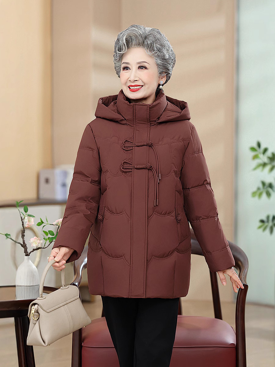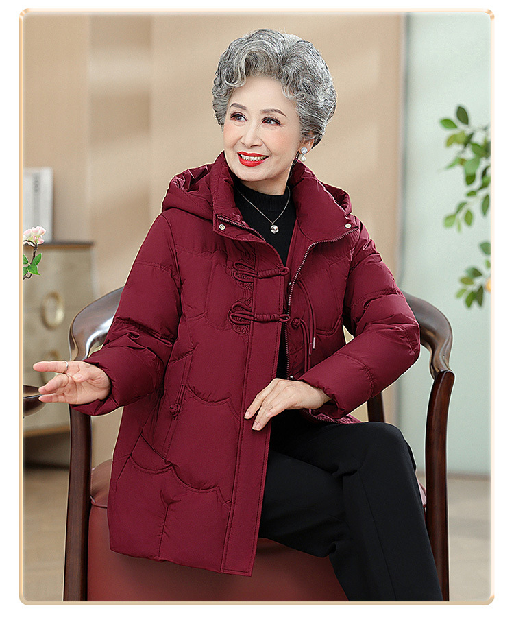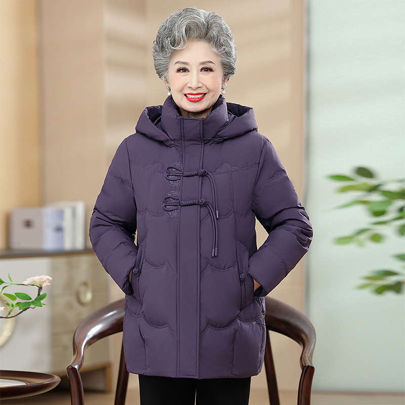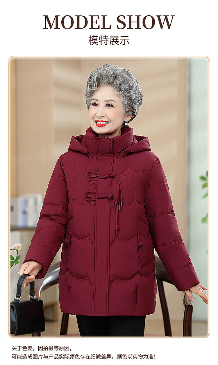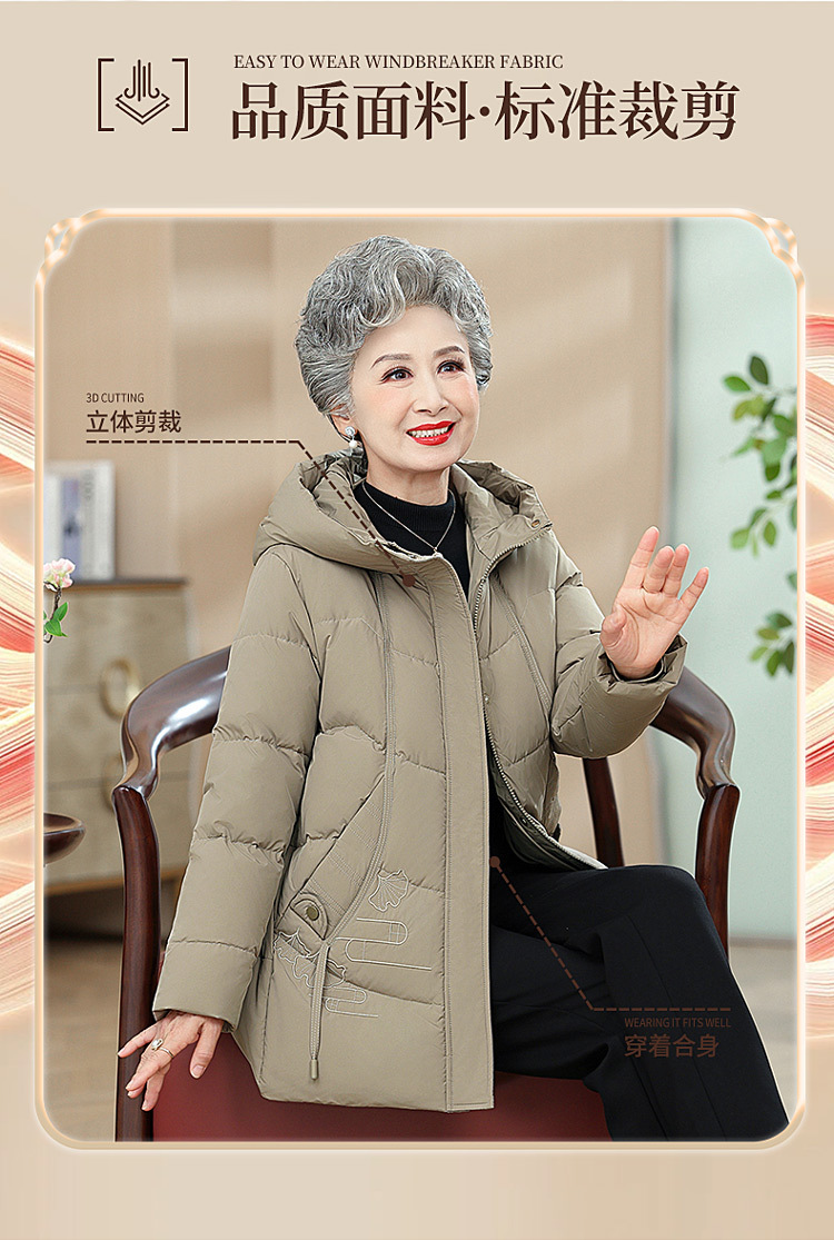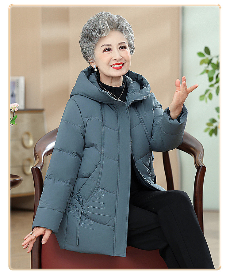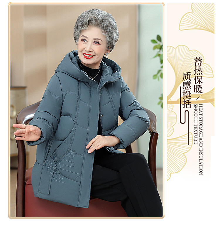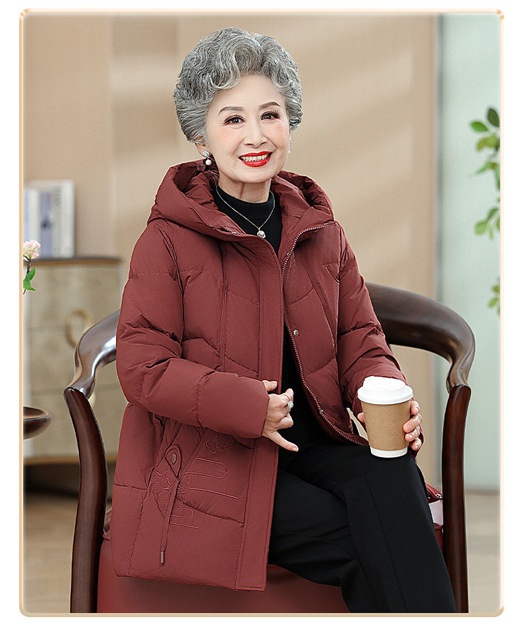 Женщины среднего и пожилого возраста белая утка пуховик топ мама зима новый свободный толстый с капюшоном теплое пальто