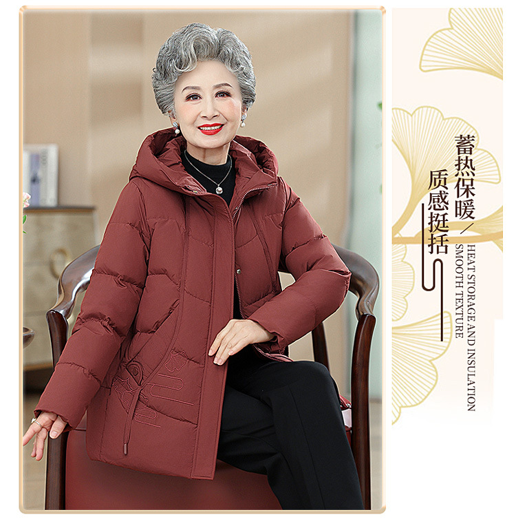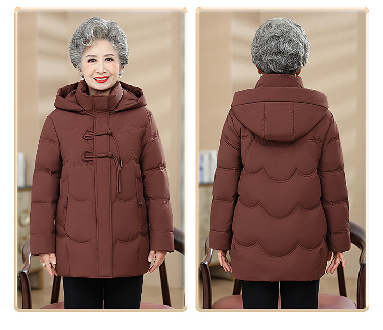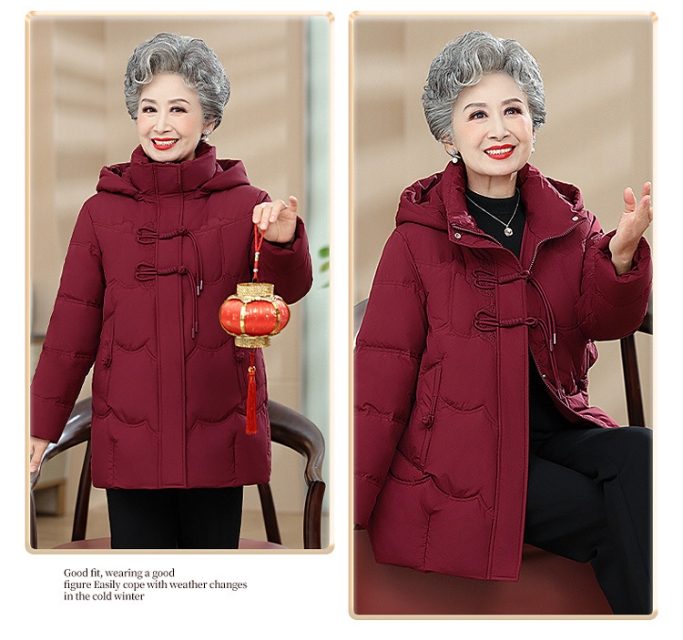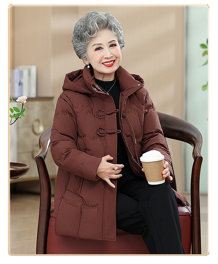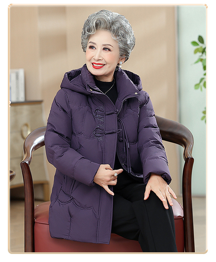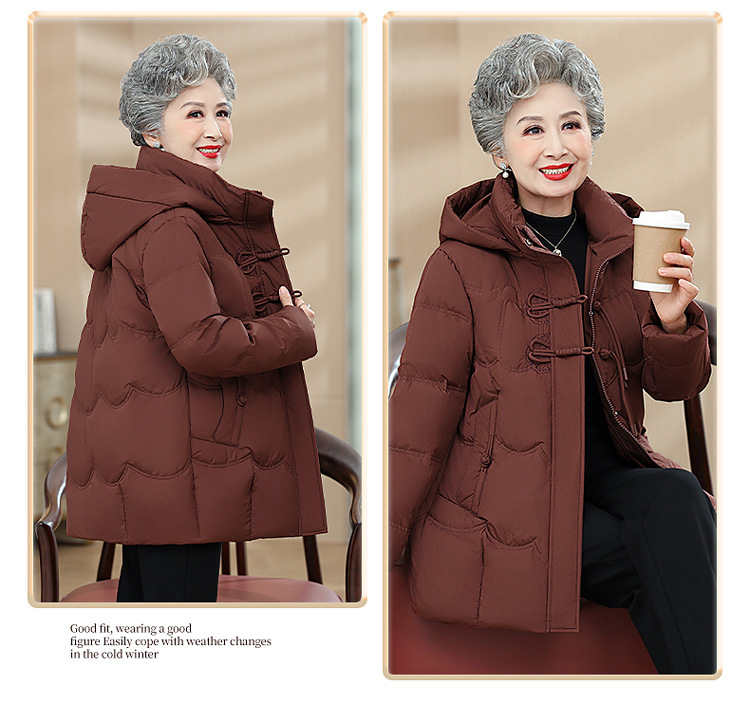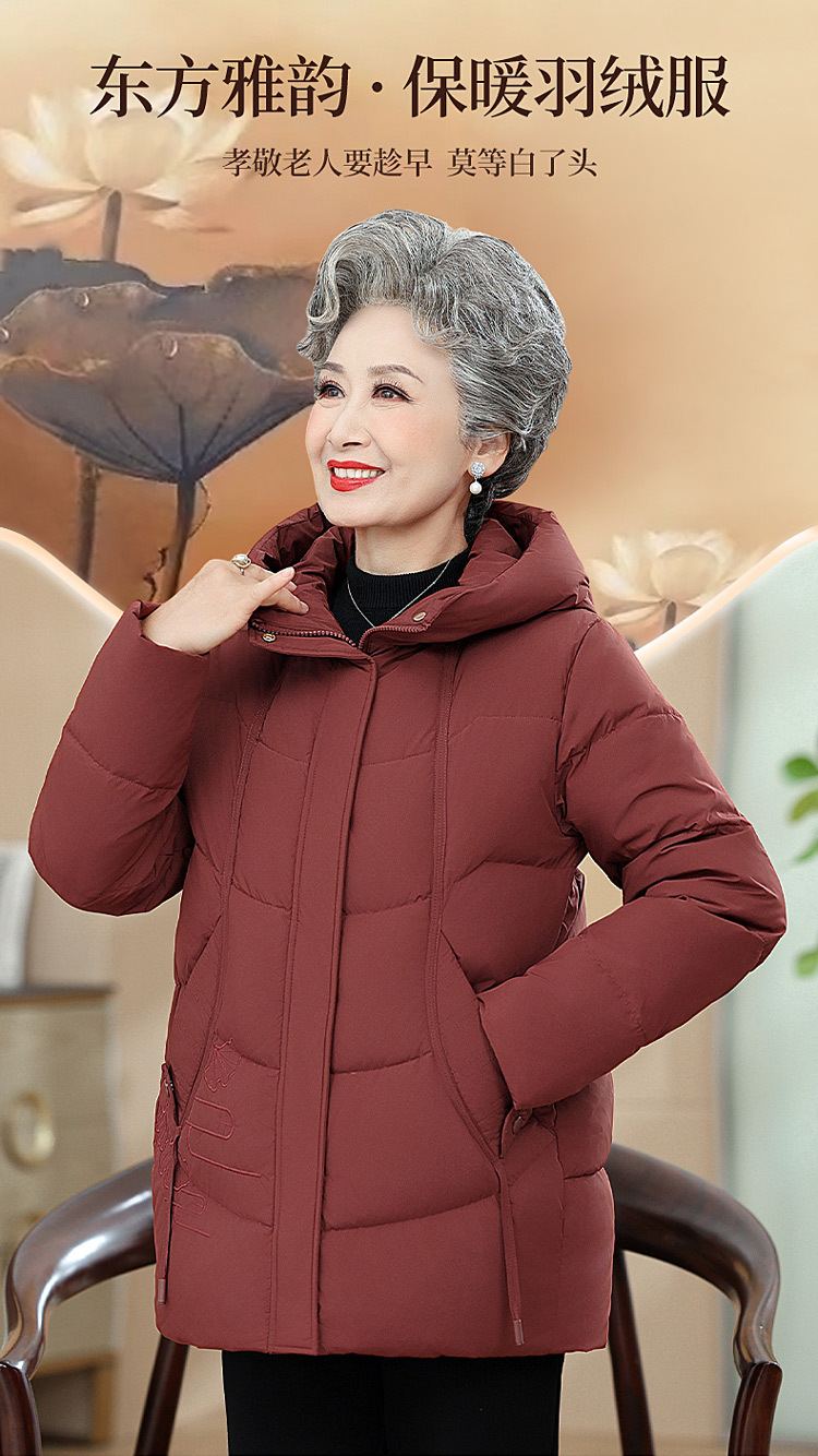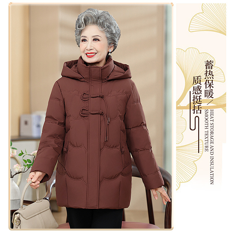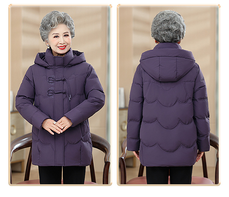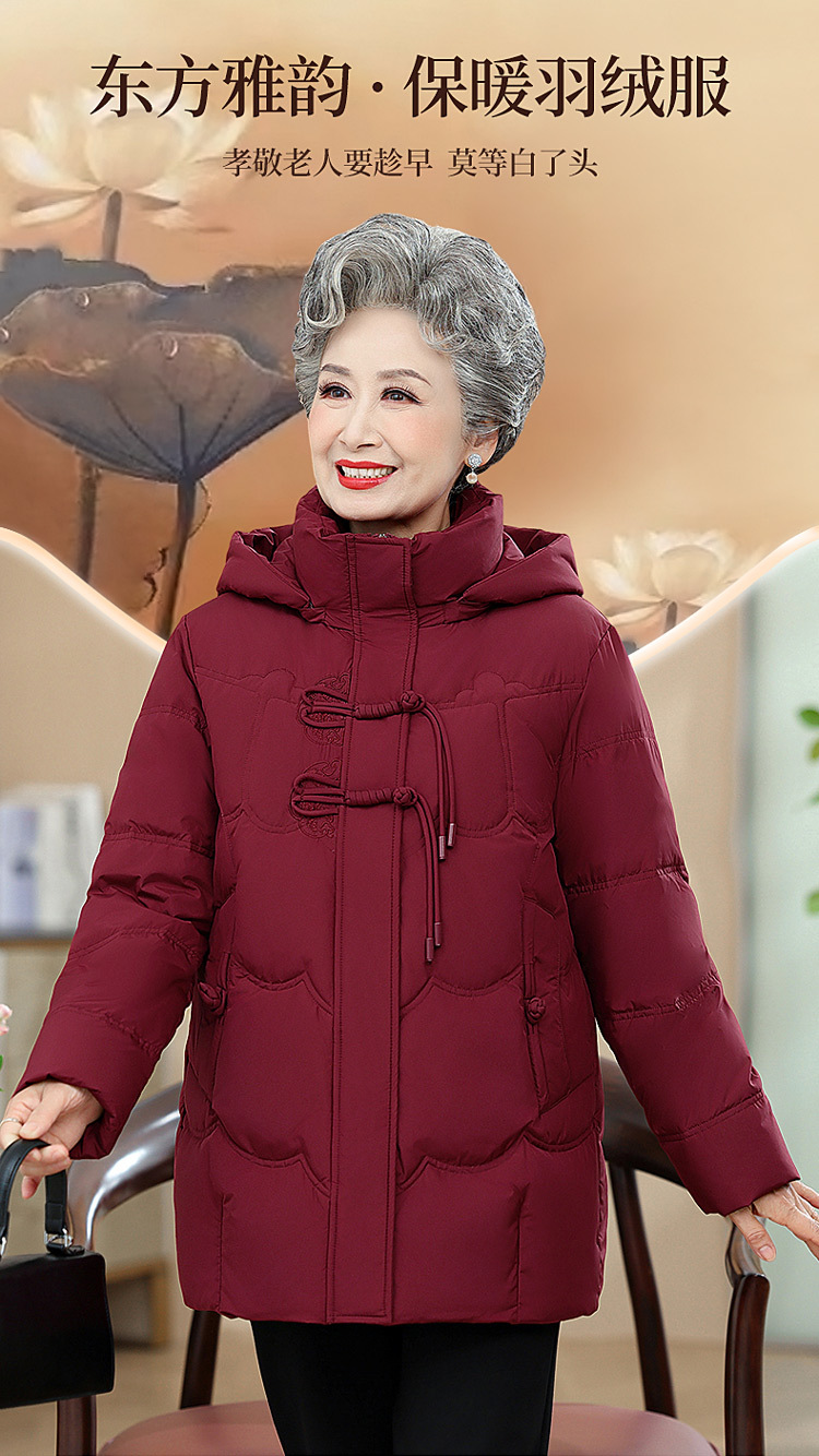 Женщины среднего и пожилого возраста белая утка пуховик топ мама зима новый свободный толстый с капюшоном теплое пальто