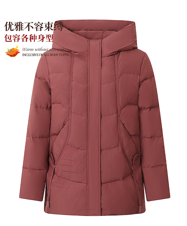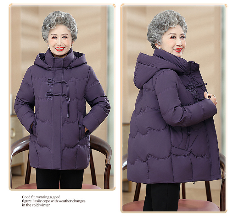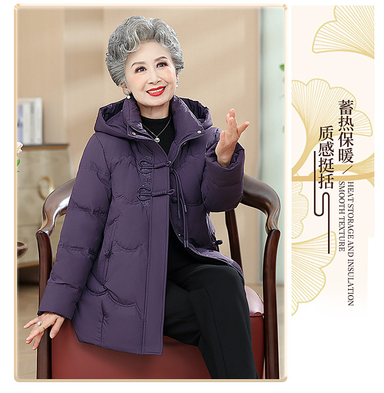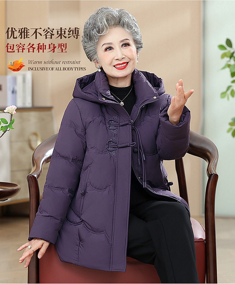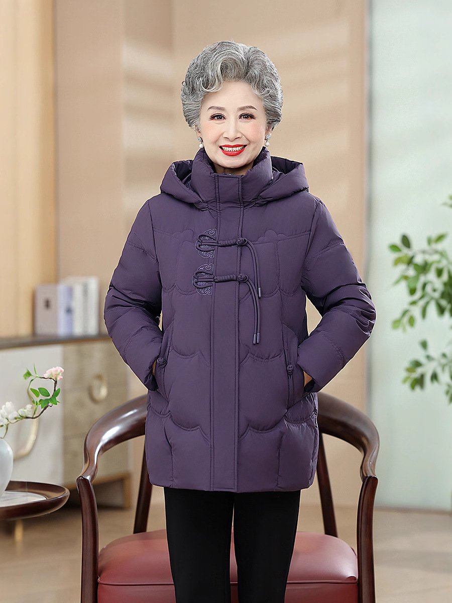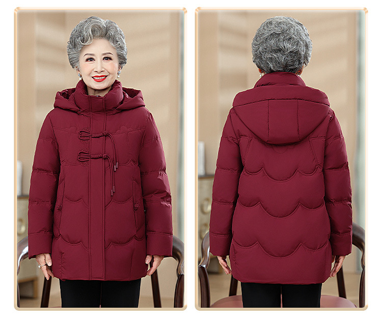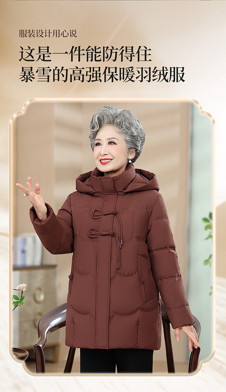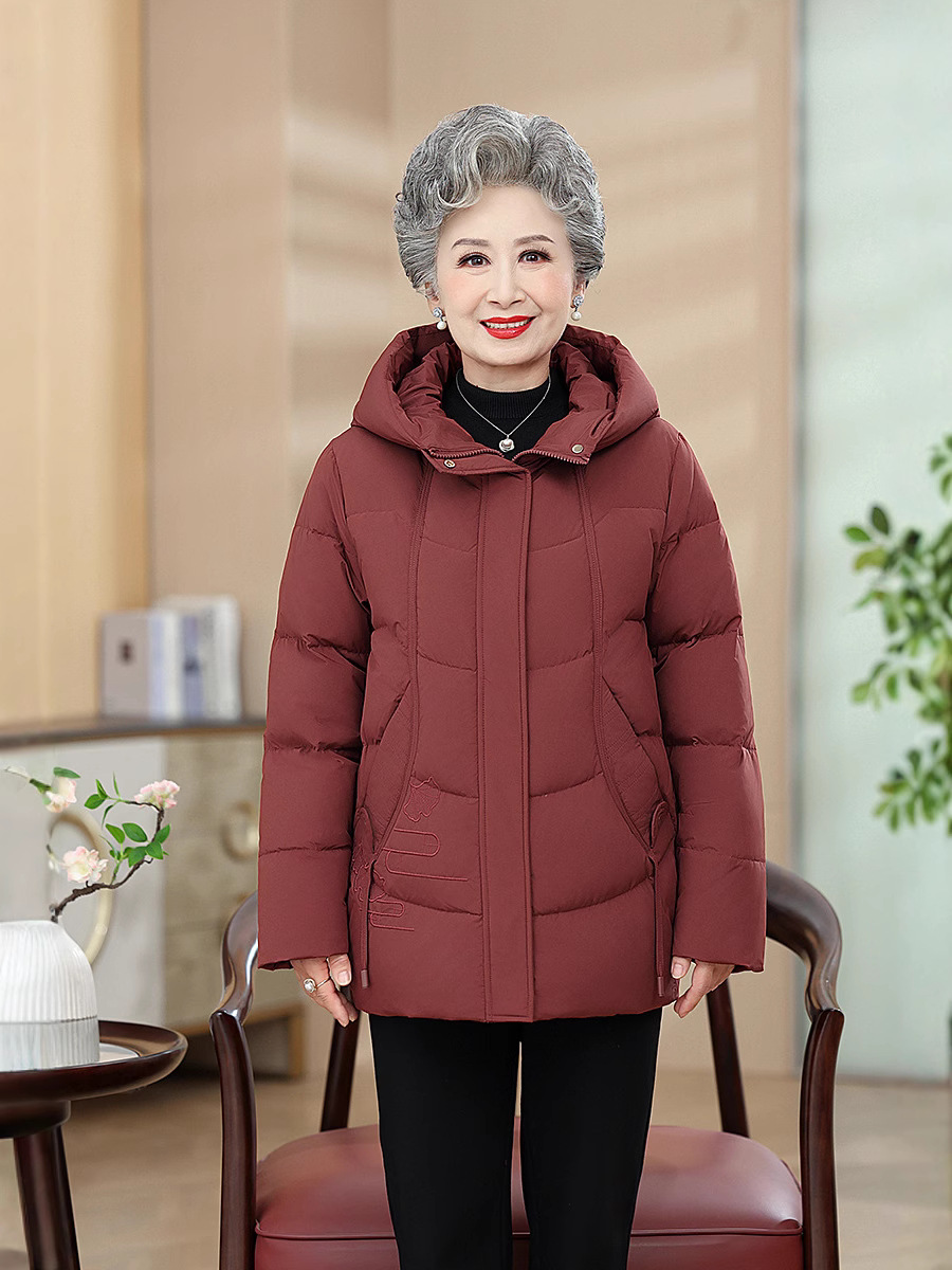 Женщины среднего и пожилого возраста белая утка пуховик топ мама зима новый свободный толстый с капюшоном теплое пальто