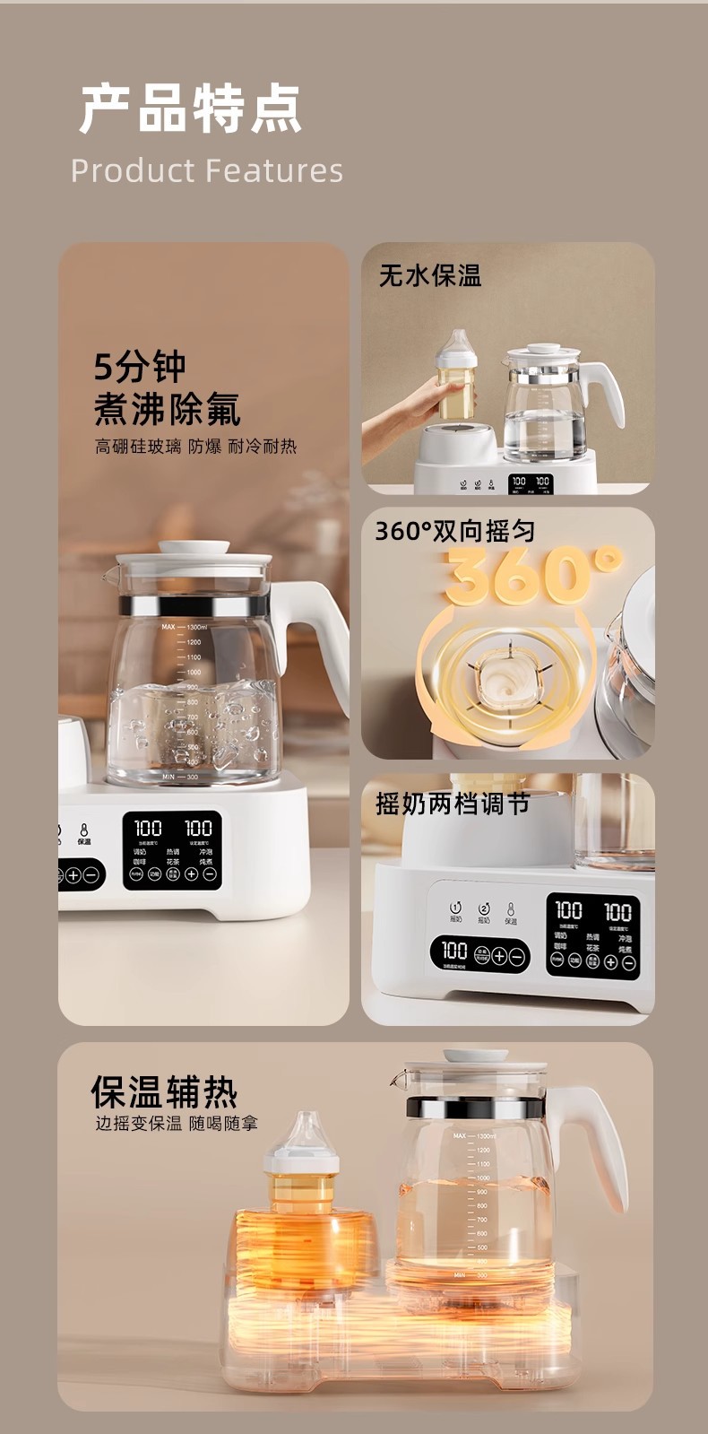Шейкер для груди «два в одном» — [Snow Mountain White]; Цельностеклянный молочный шейкер 2-в-1.