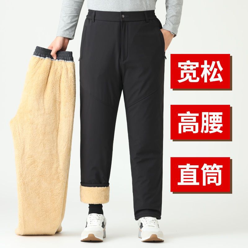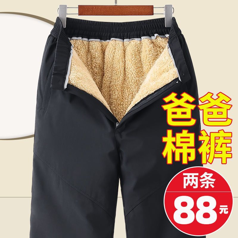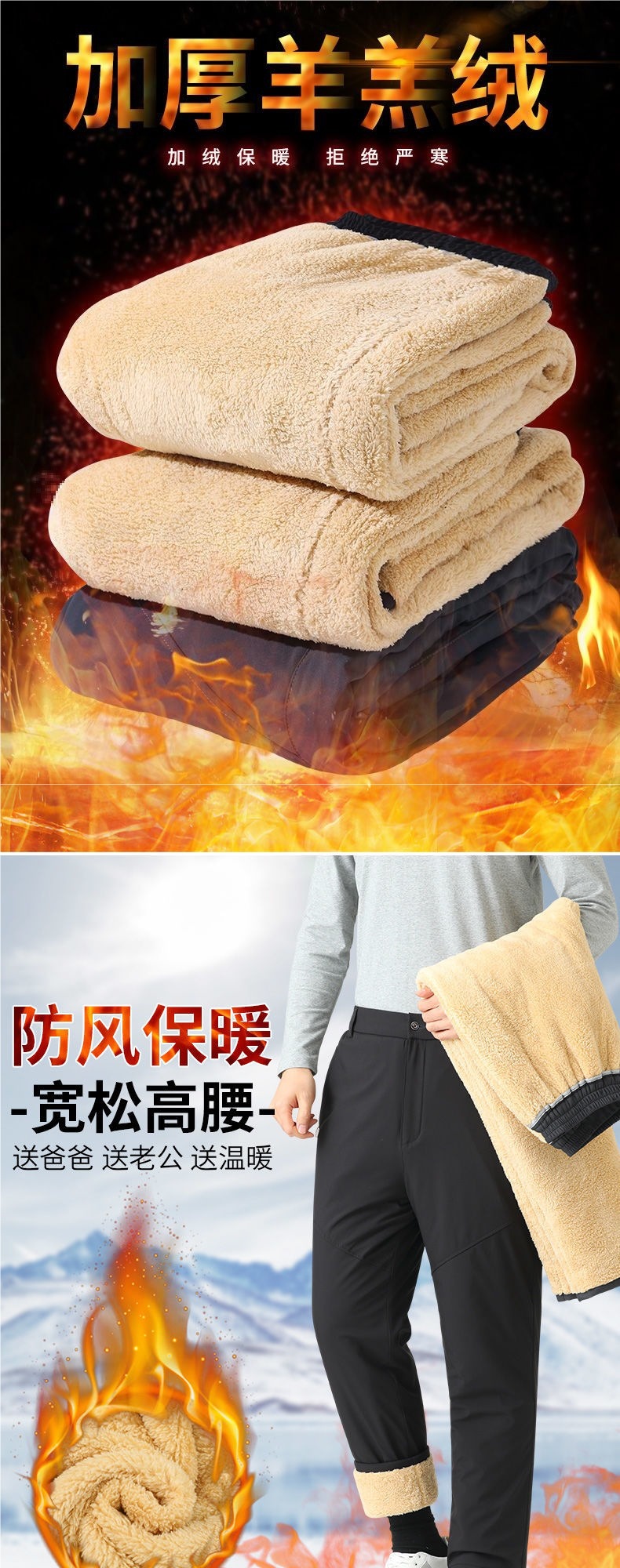 Зимние хлопчатобумажные брюки толстые мужчины среднего и пожилого возраста носят овечий кашемир