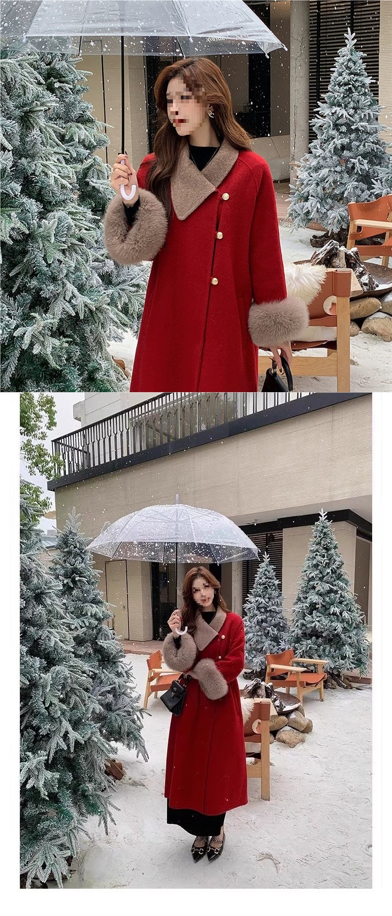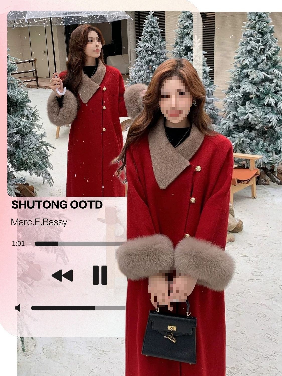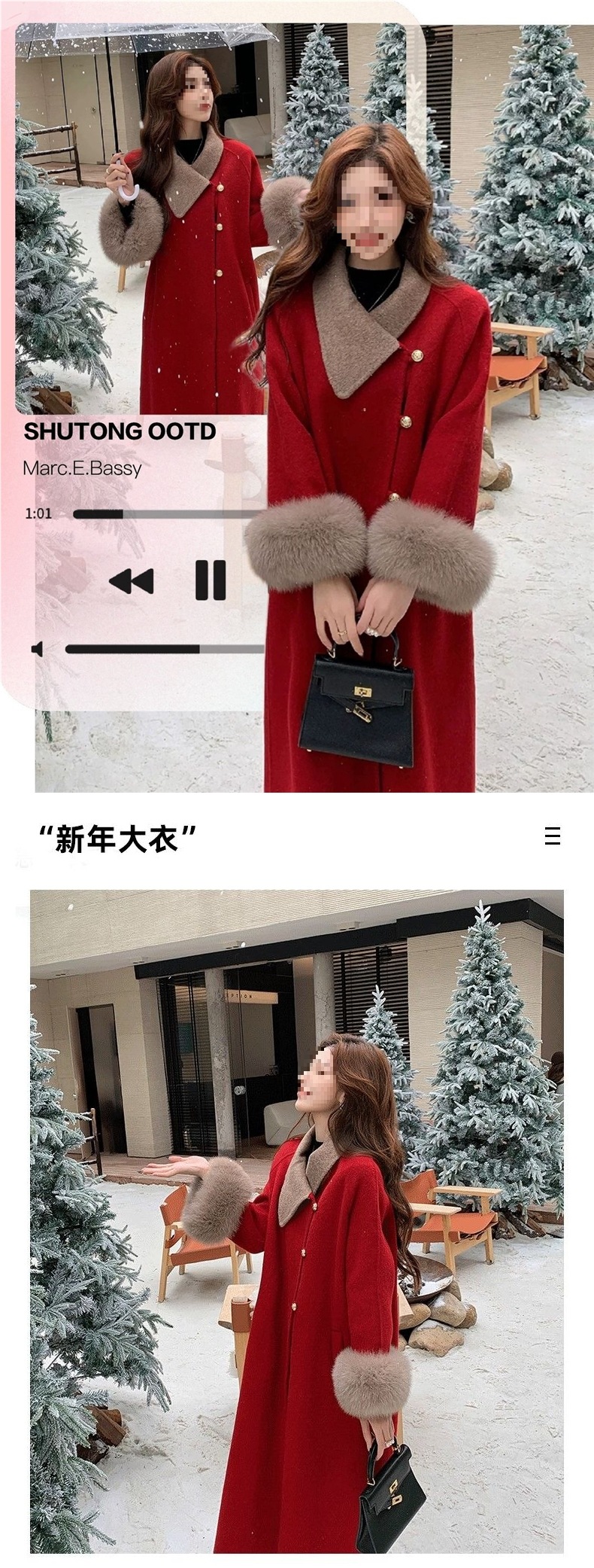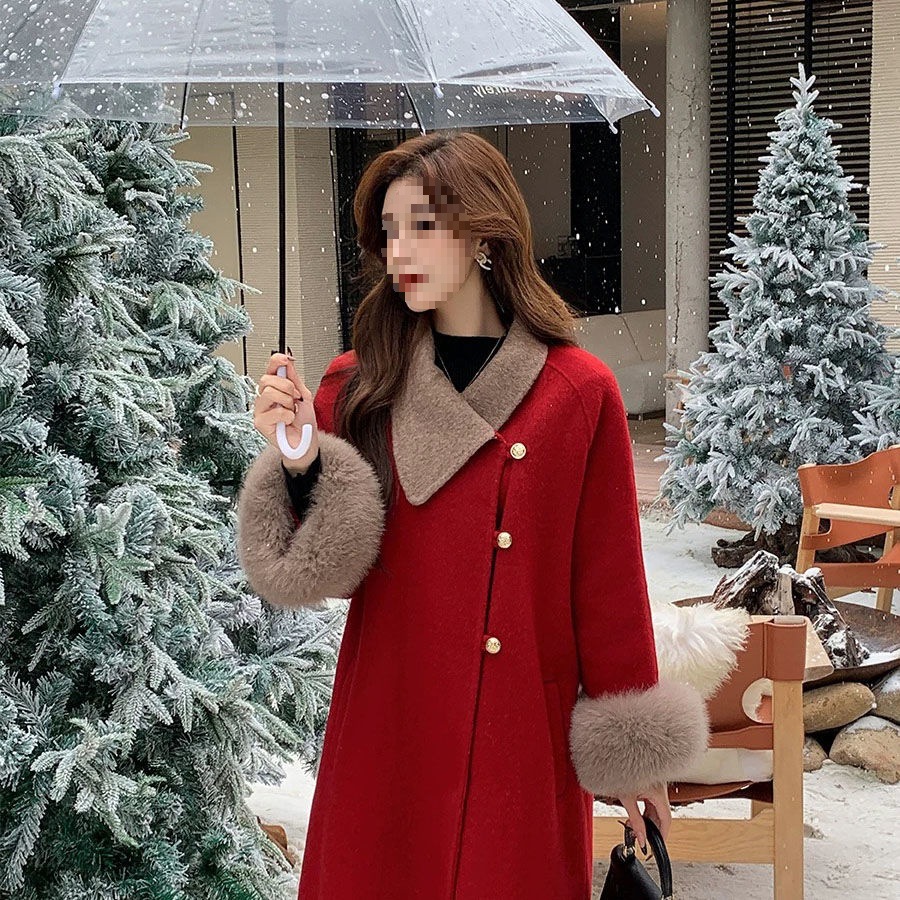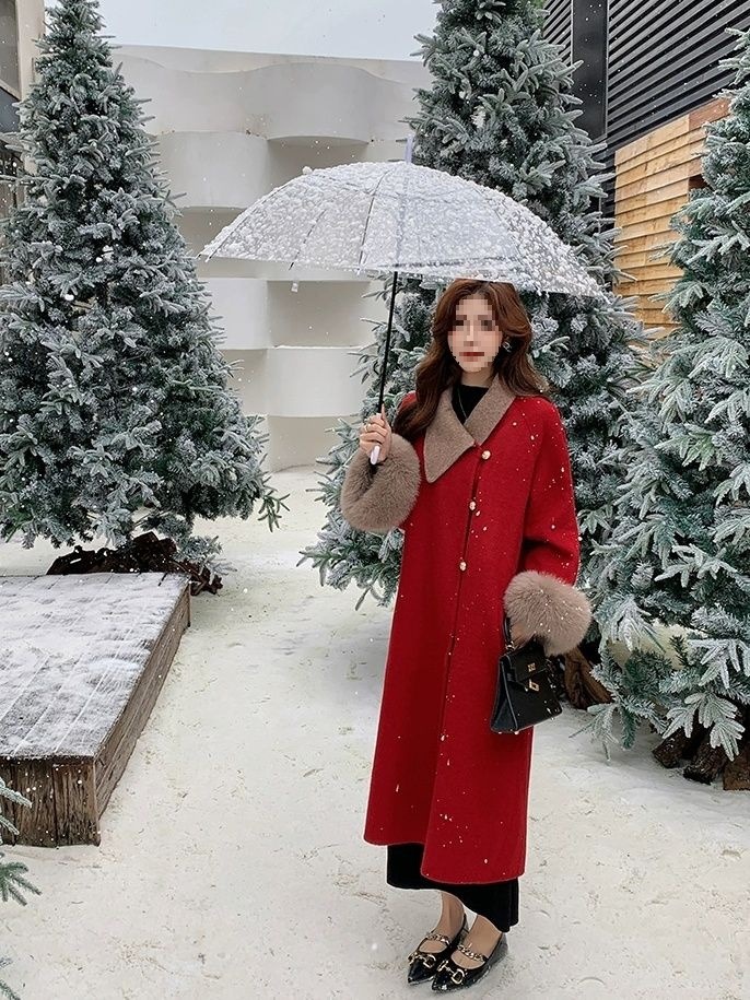 Рождественский красный [Зимнее рождественское атмосферное пальто]