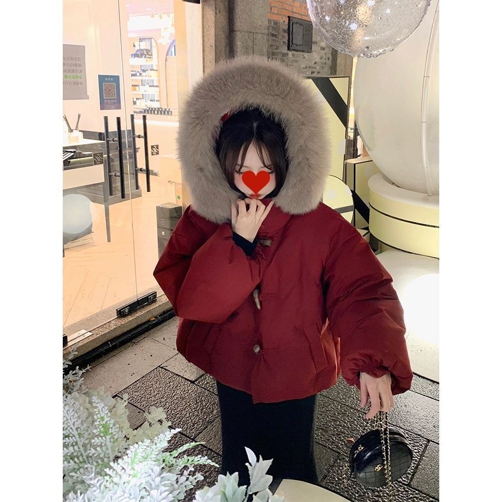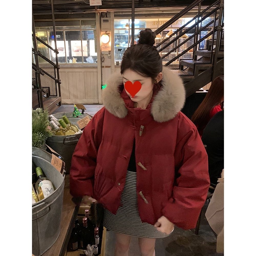 Чувство новогодней рубашки маленький ароматный ветер рождественское красное пальто женская зима 2023 новая толстая шерстяная ватная одежда