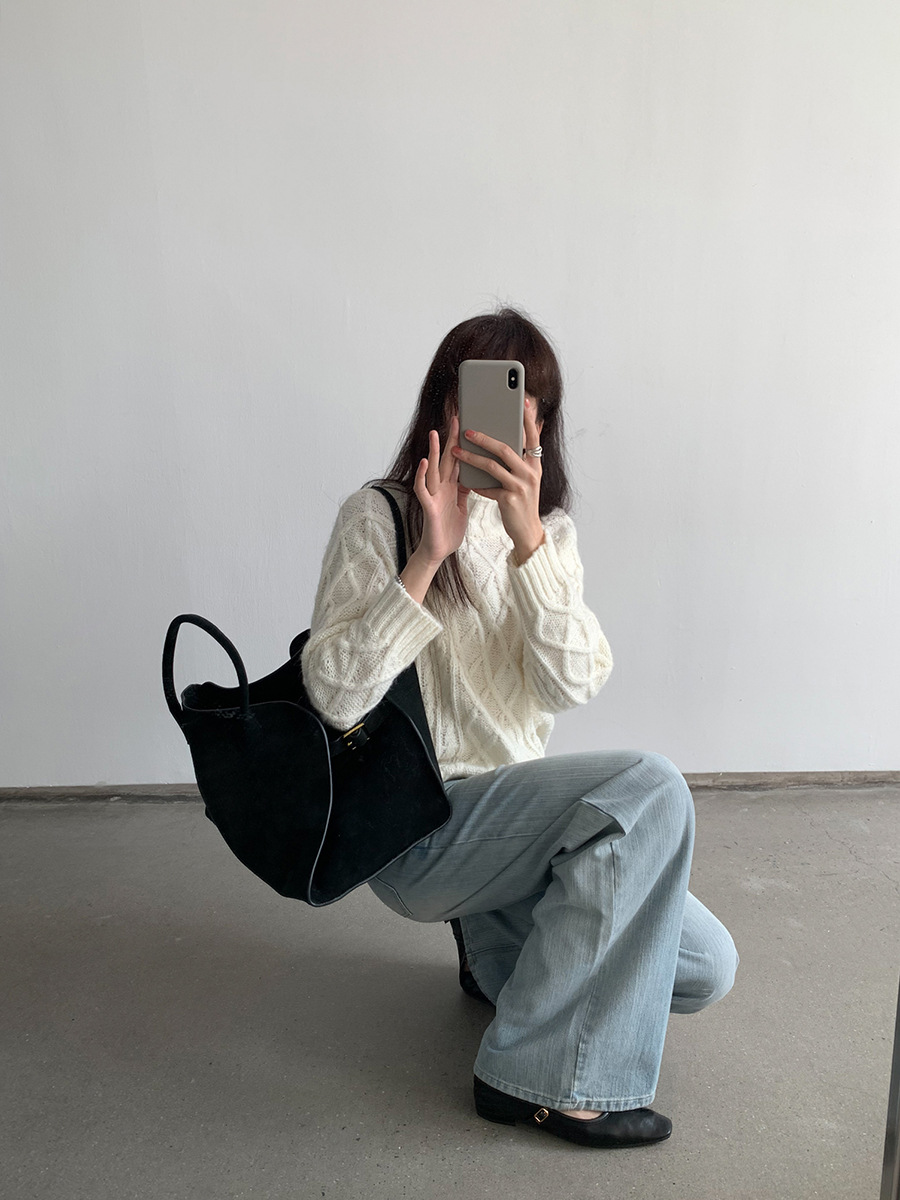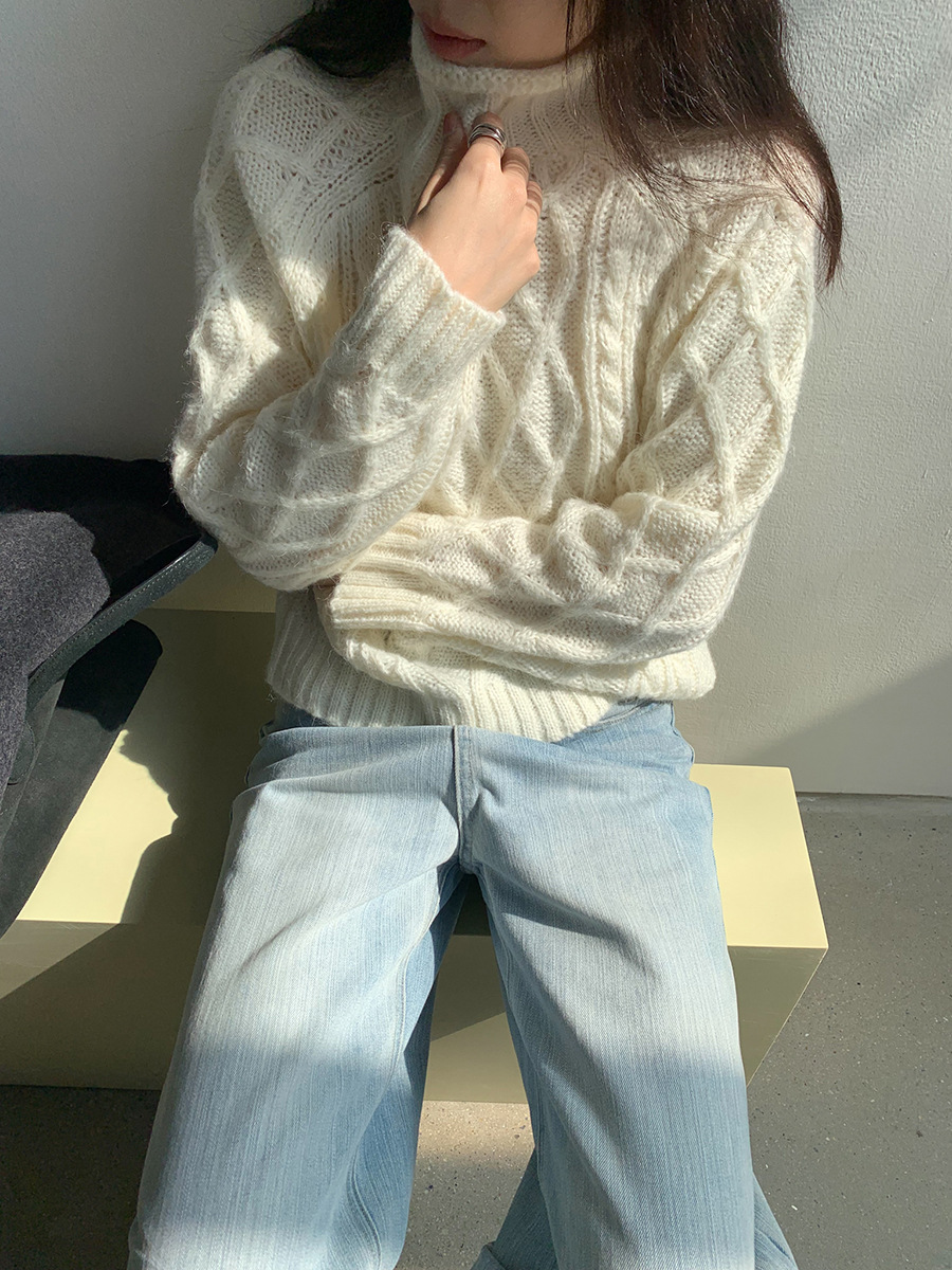 Yi En Oinbyin Полужорчатый свитер с вьющимися цветами, свободный ленивый женский 2024 новый пуловер свитер