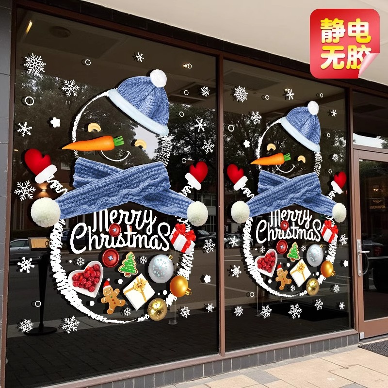 Рождественские украшения электростатическая наклейка на стеклянную дверь наклейка белый рождественский снеговик