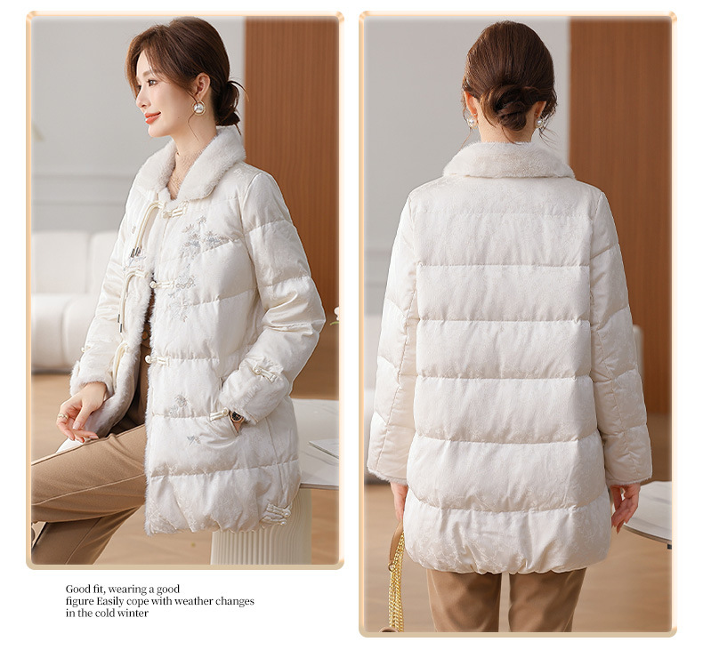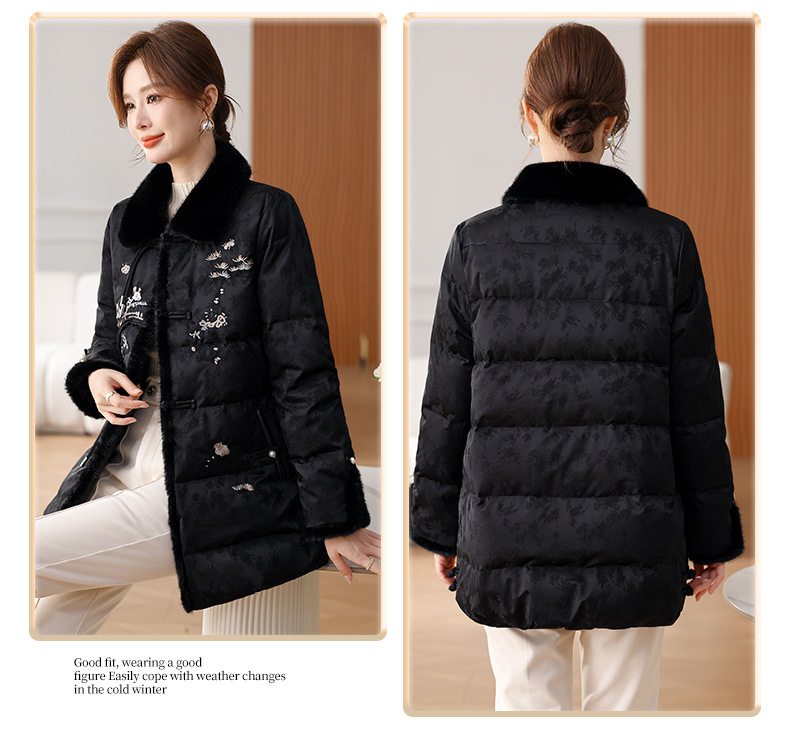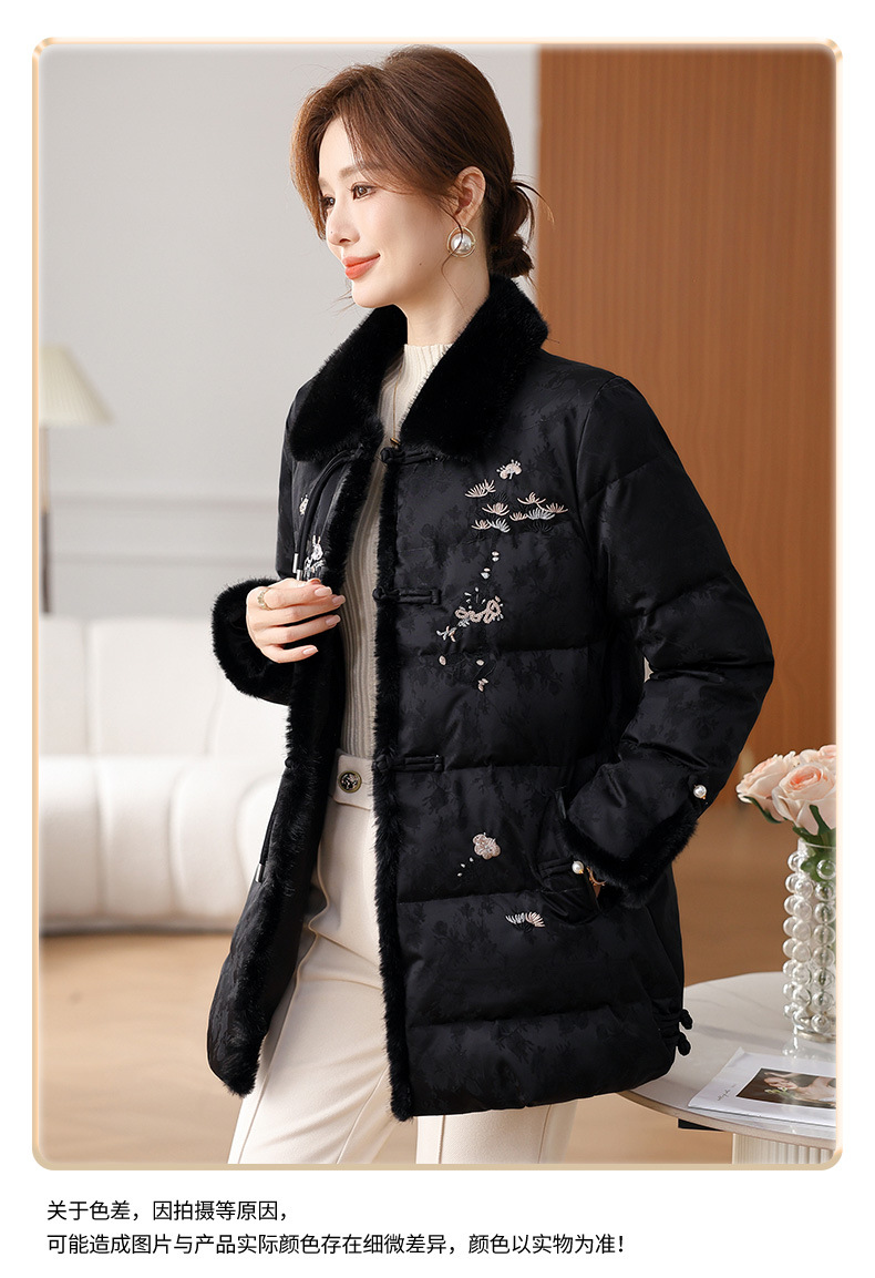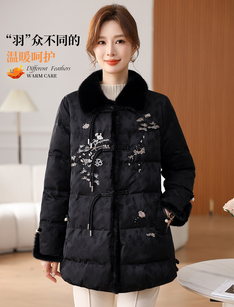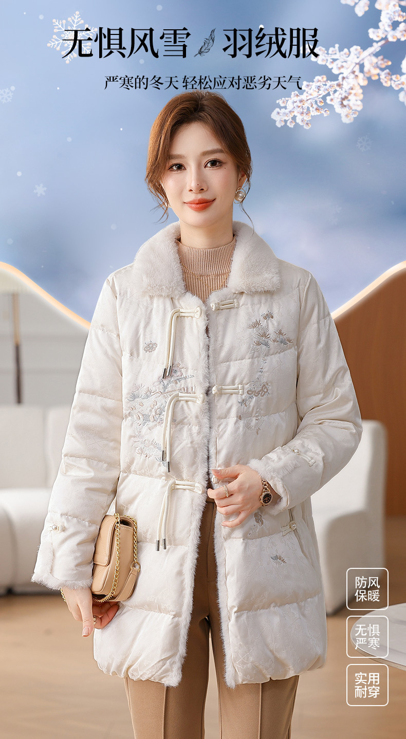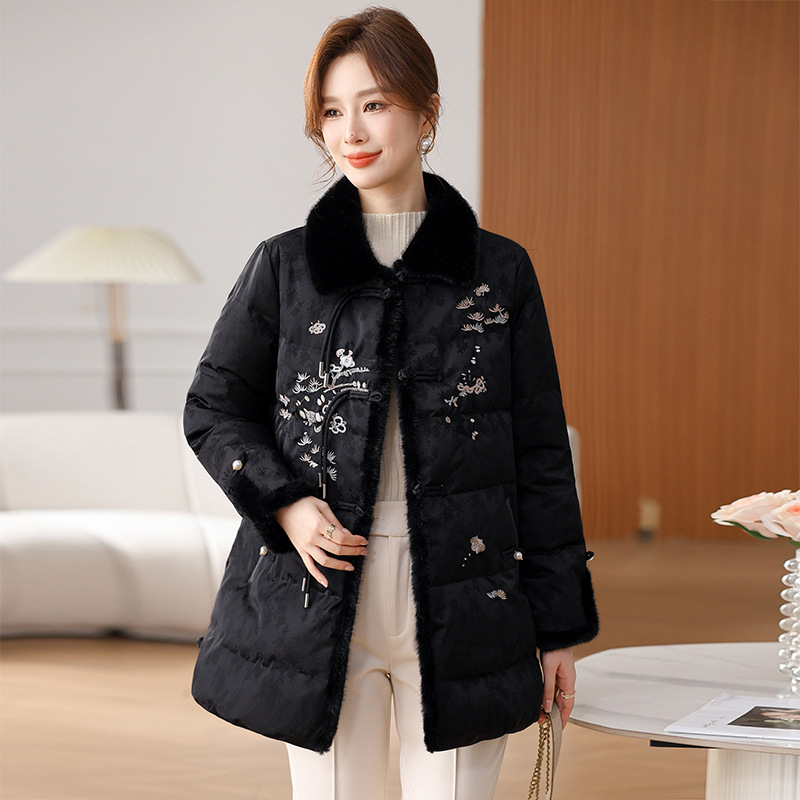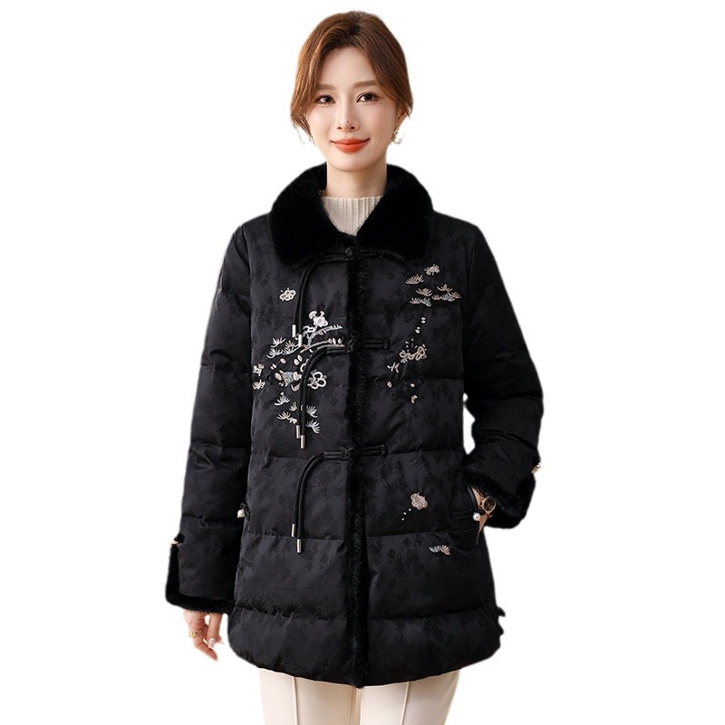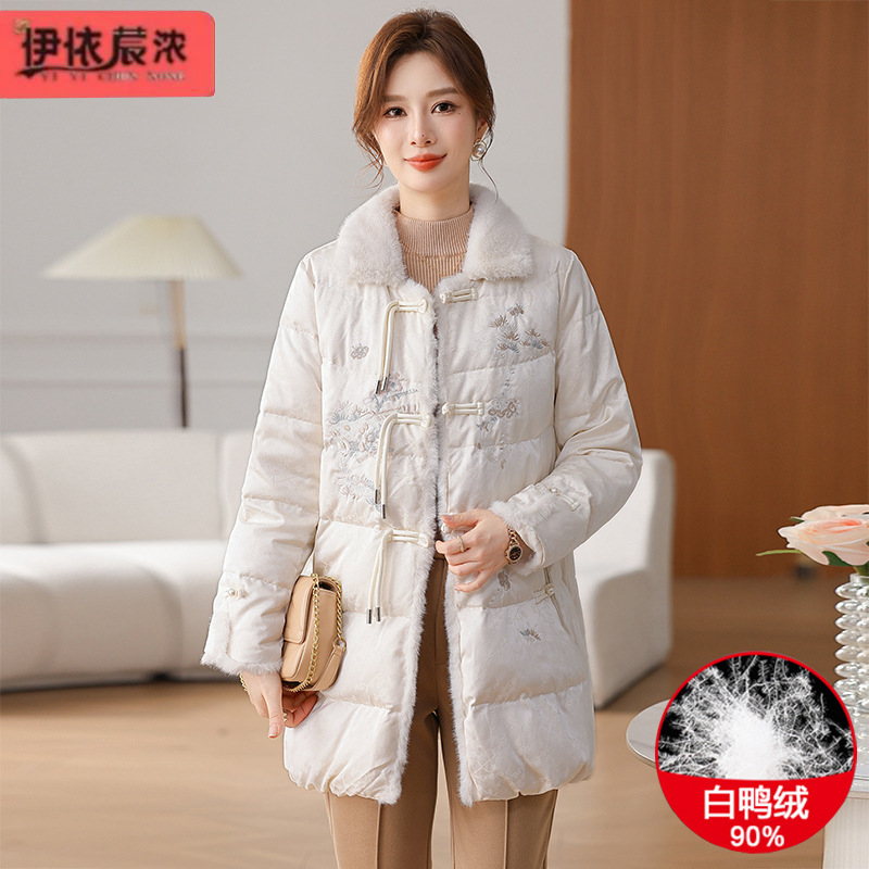 Мама зимой 90 утка пуховик с вышитым пуховиком