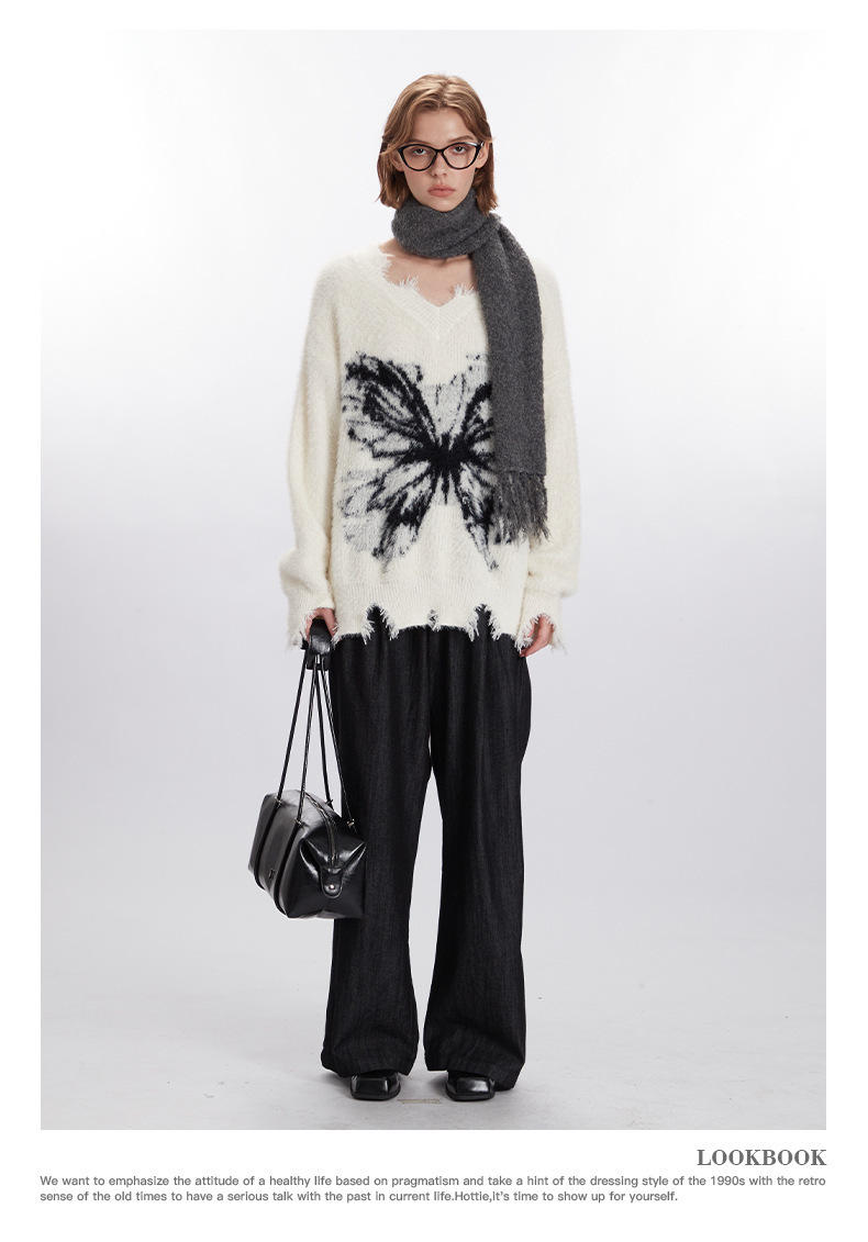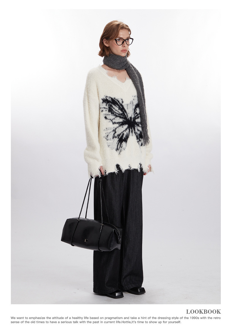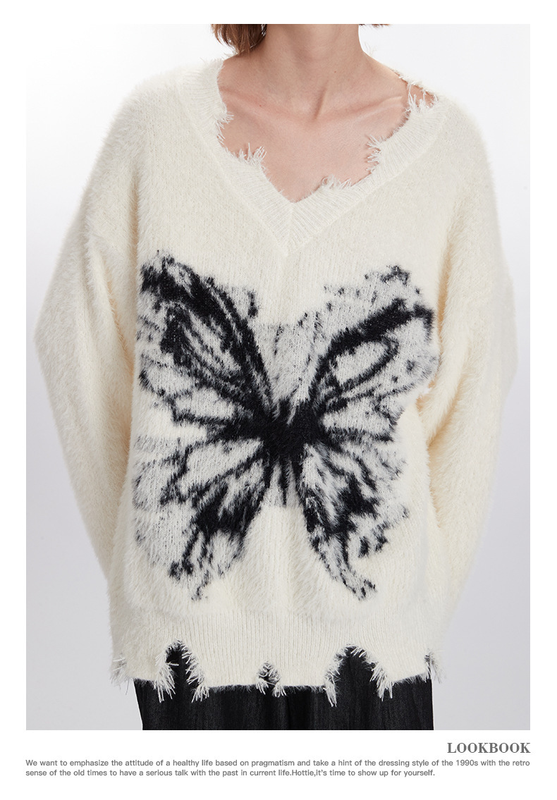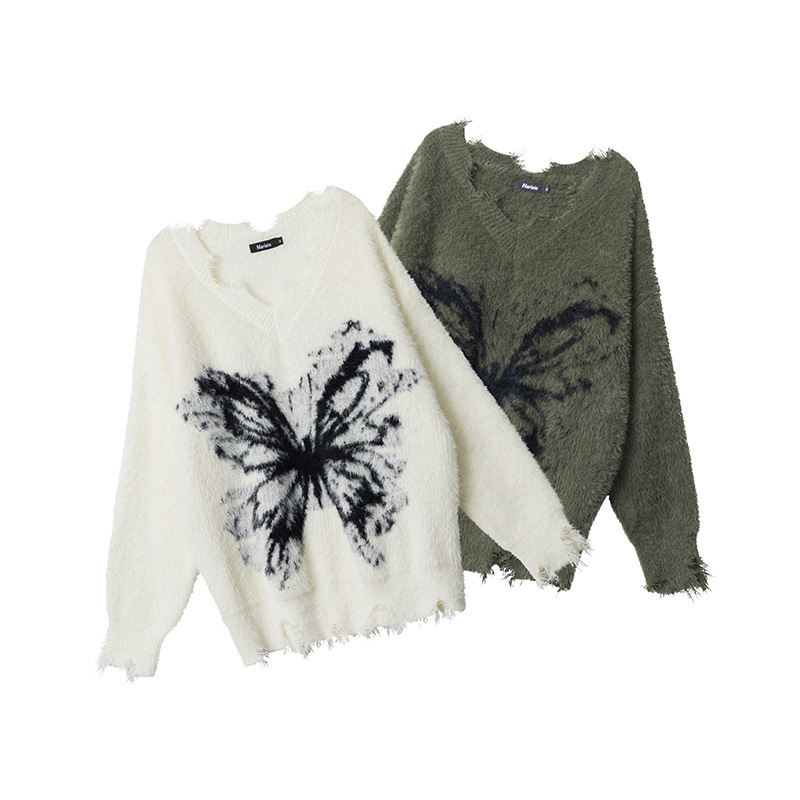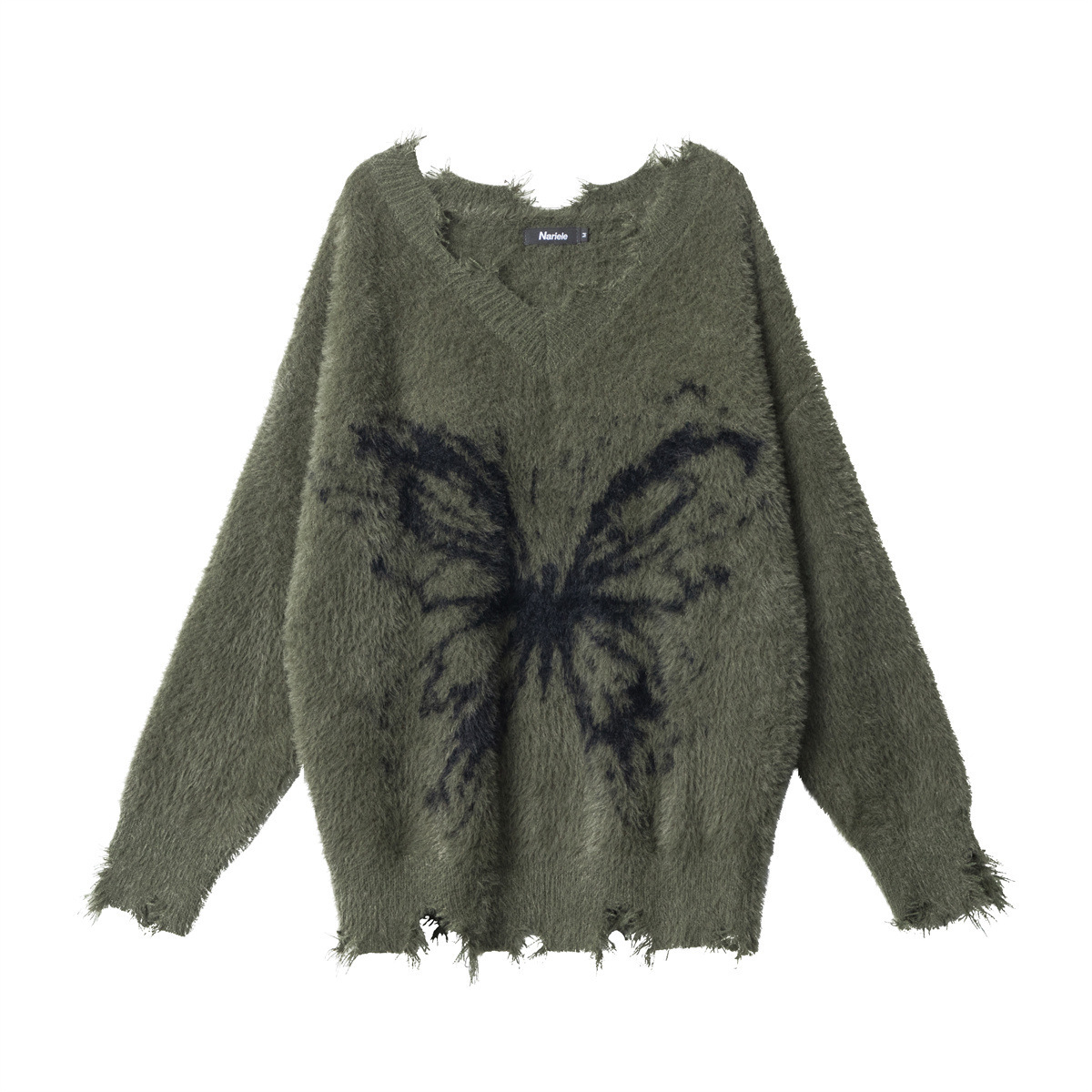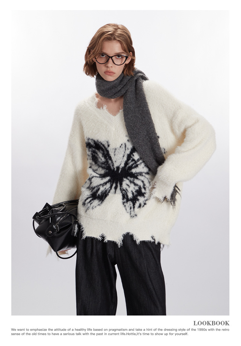 HeyHenry Butterfly Lazy Style пуловер с круглым вырезом, женский свитер в американском стиле 2025 года, новый осенне-зимний свободный свитер