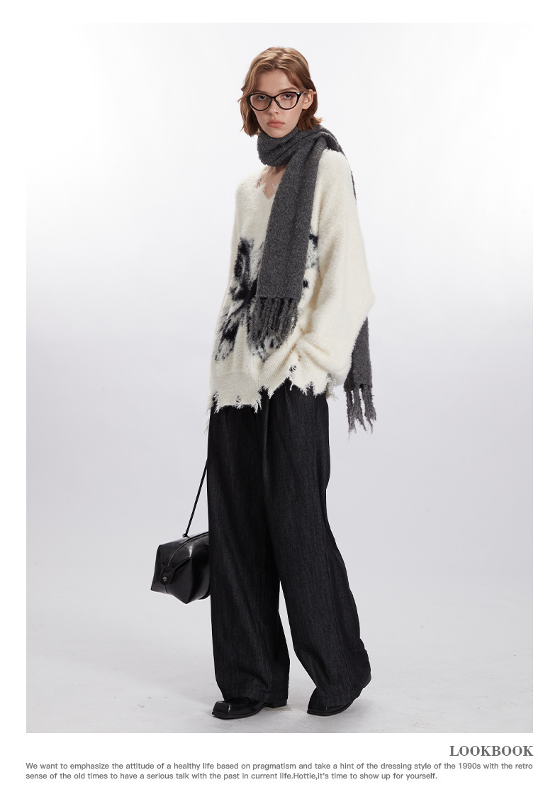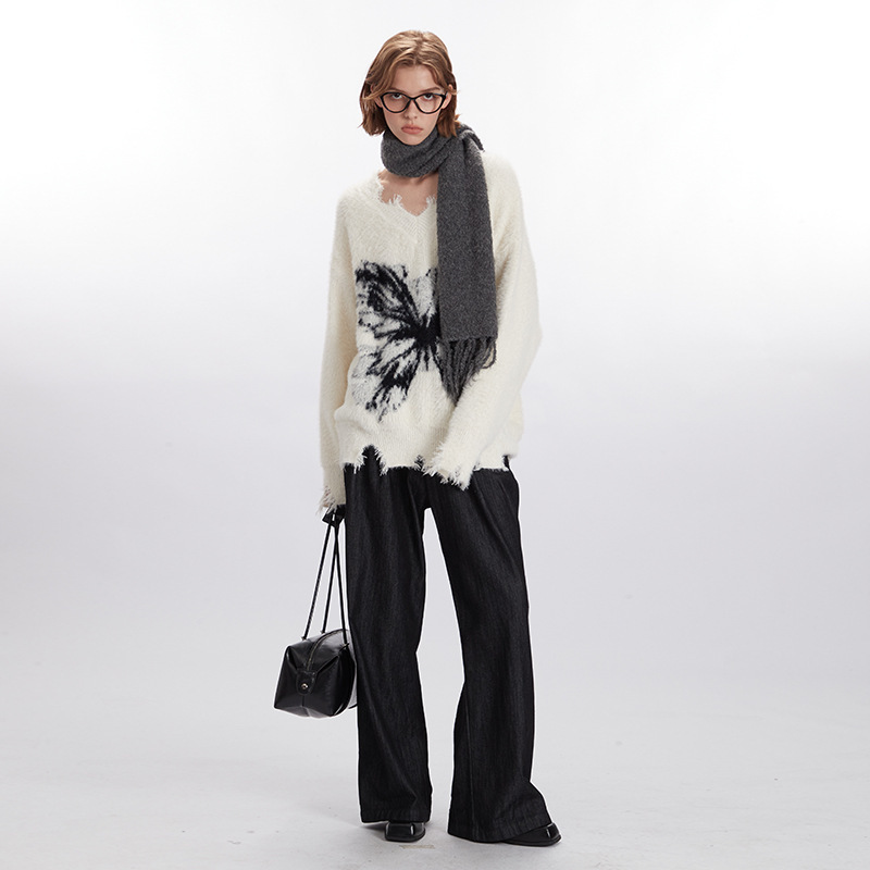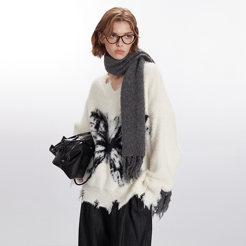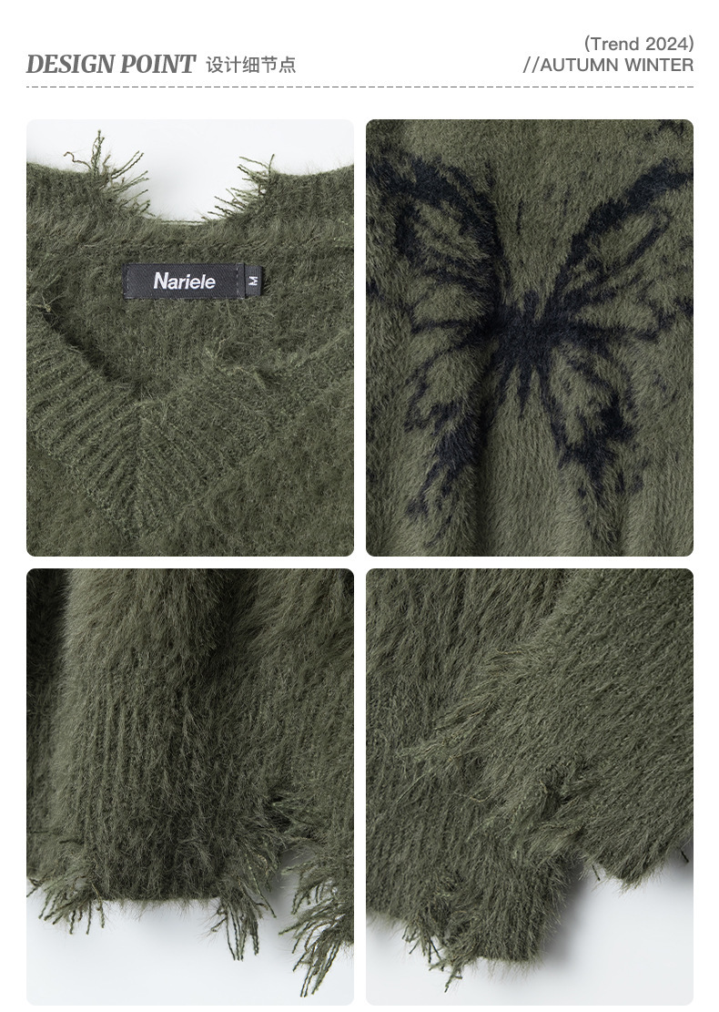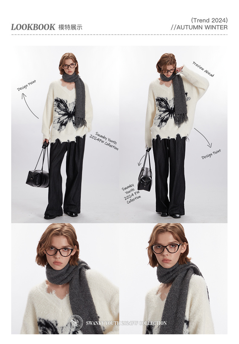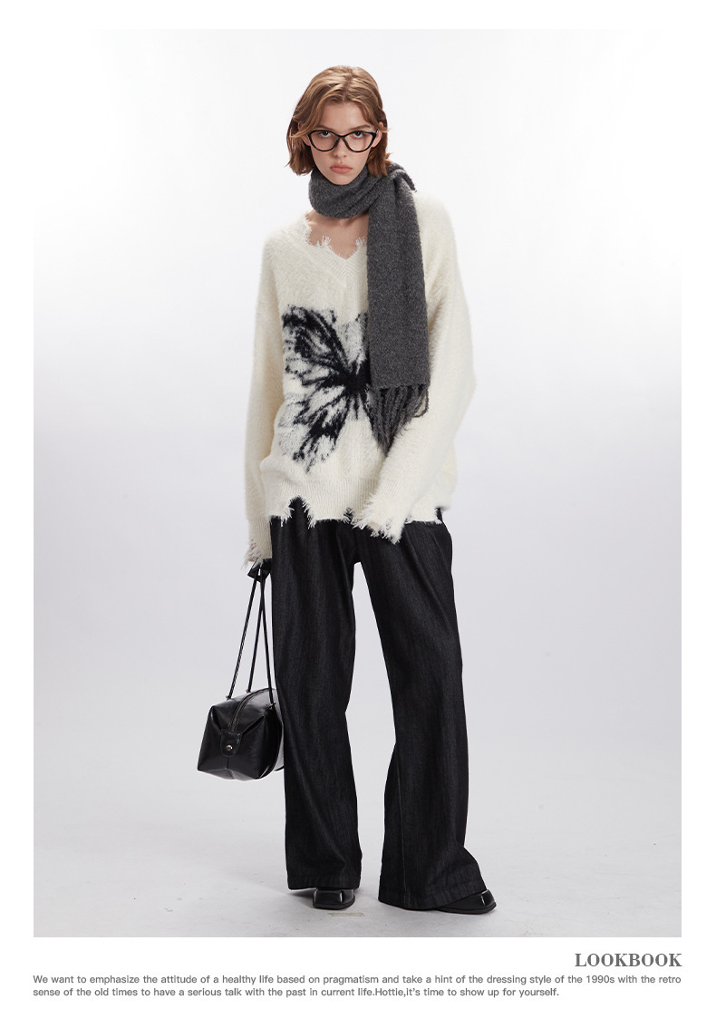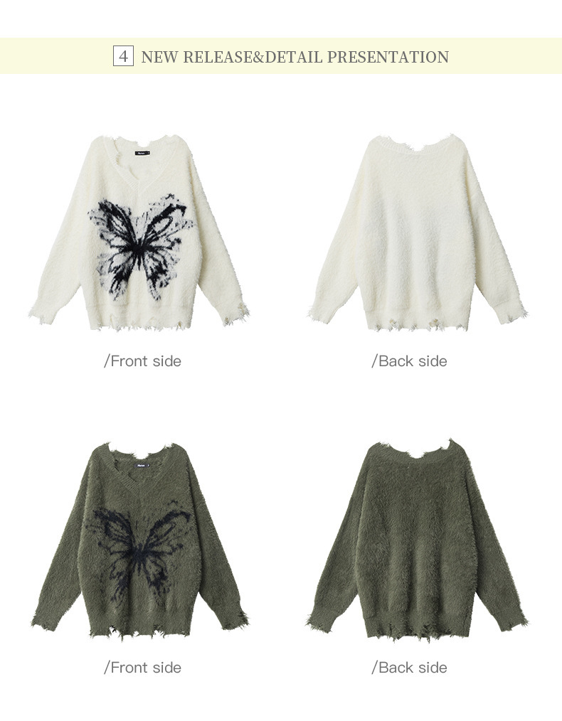 HeyHenry Butterfly Lazy Style пуловер с круглым вырезом, женский свитер в американском стиле 2025 года, новый осенне-зимний свободный свитер