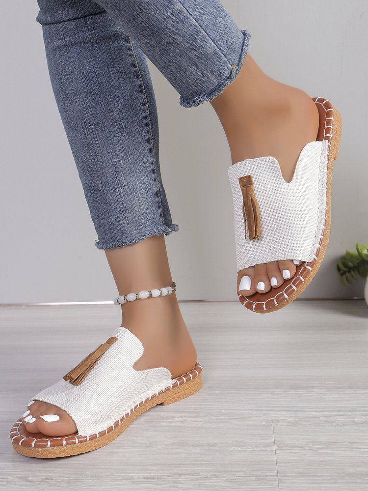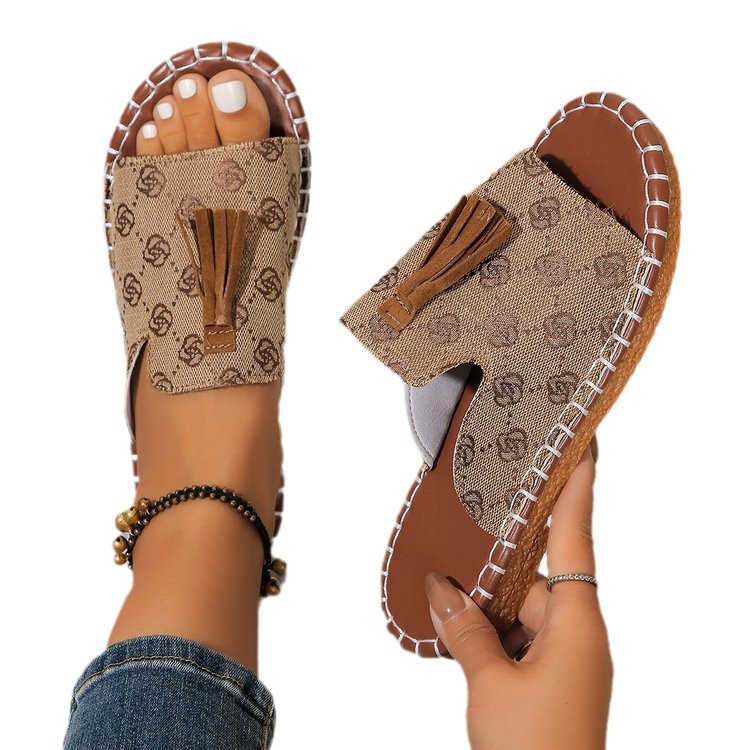 Внешняя торговля большой размер кисточки европейский и американский стиль плоский фон с тапочками на летнем пляже 2025 женская обувь Temu спот