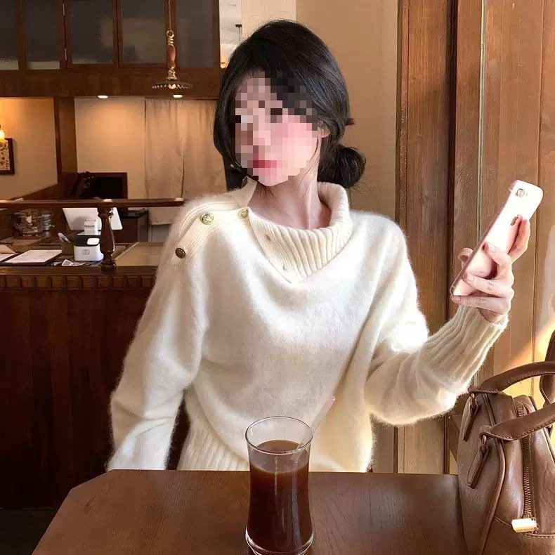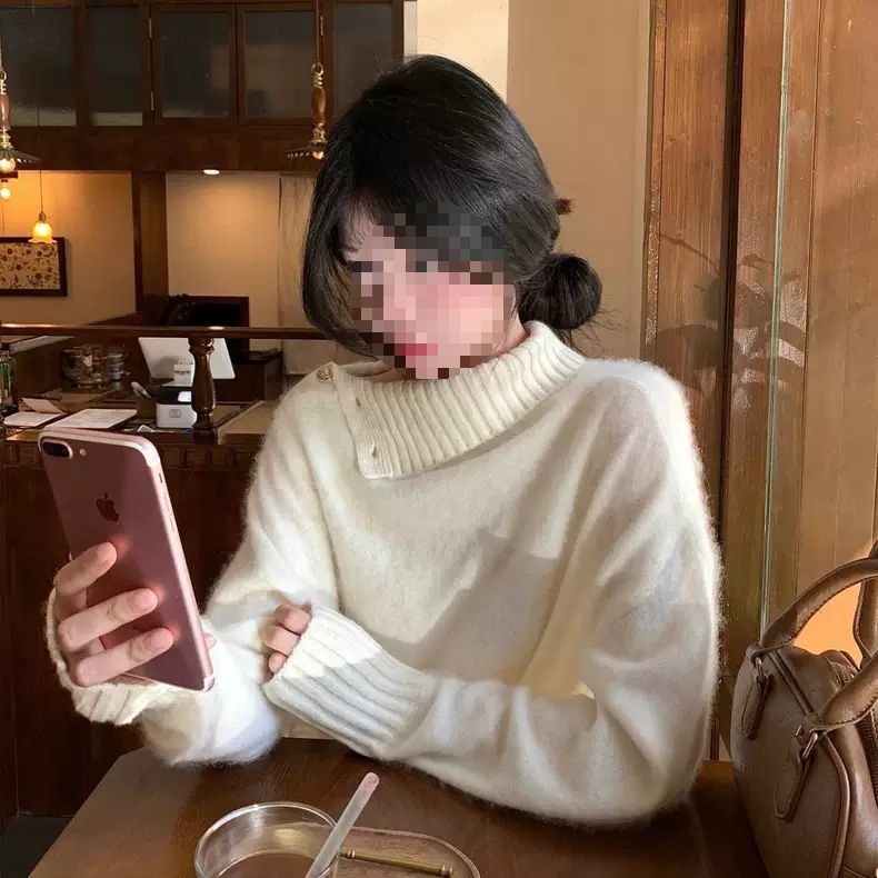 Ленивый стиль дизайн с высоким воротником свитер женский свободный осенью и зимой