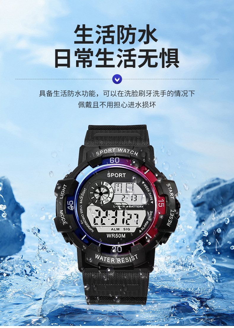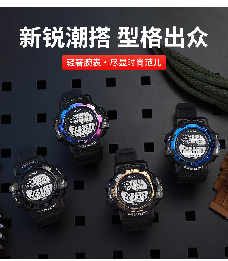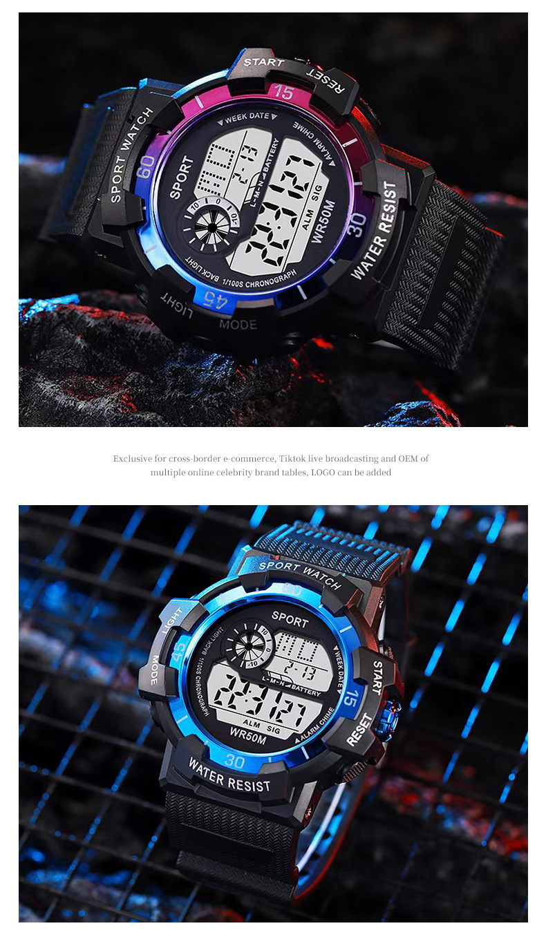 Трансграничные красочные электронные часы Многофункциональные водонепроницаемые и устойчивые спортивные часы подросток цифровая светящийся электронный наручные часы