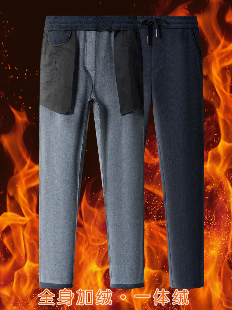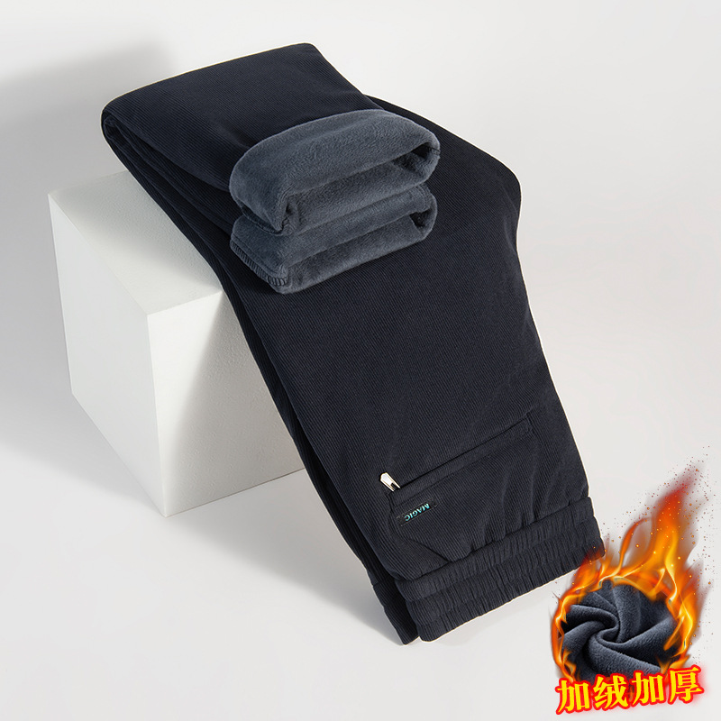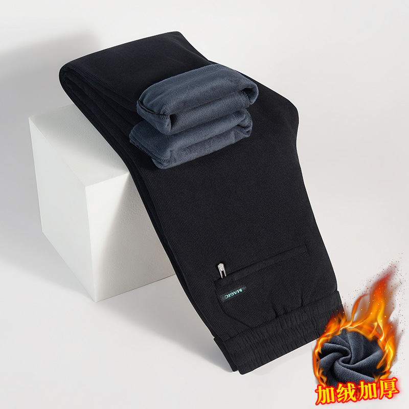 Осенние и зимние мужские бархатные теплые повседневные брюки для пожилых людей