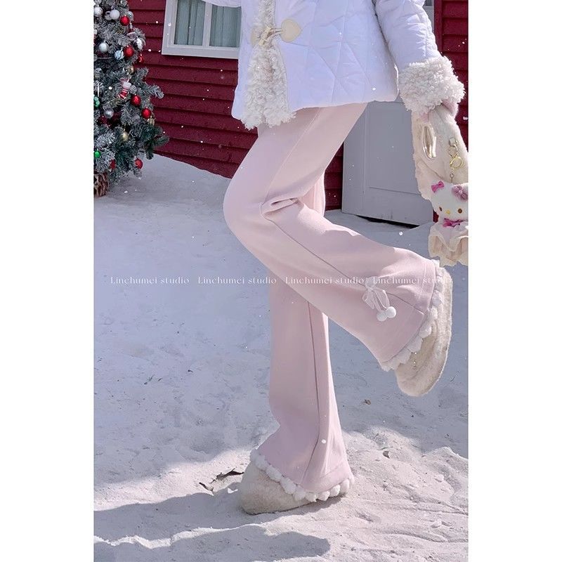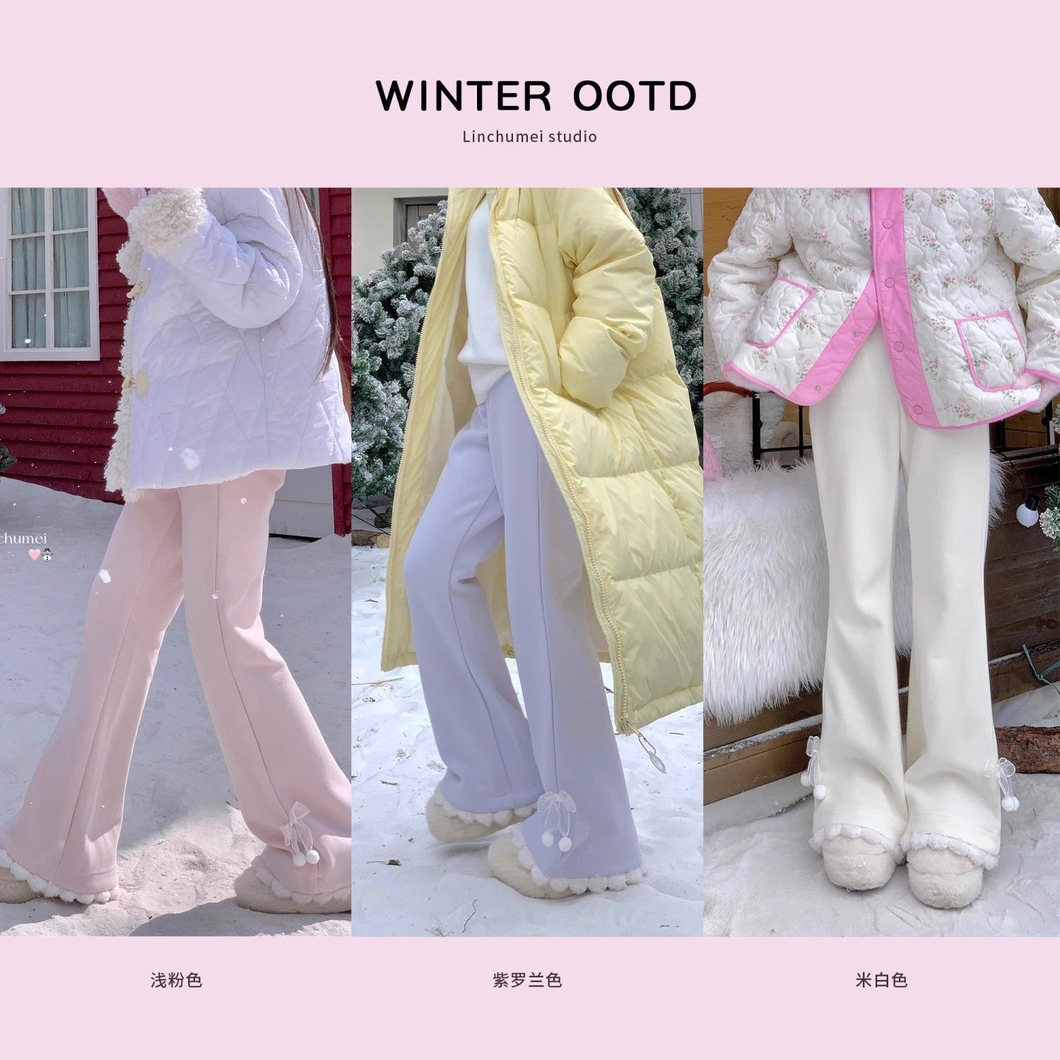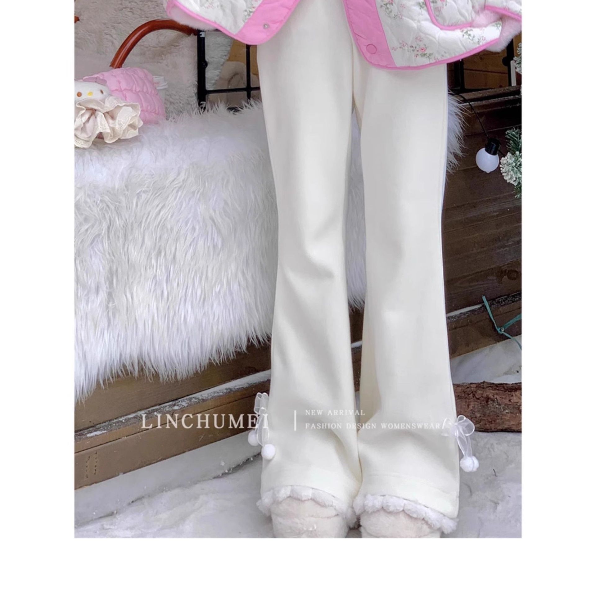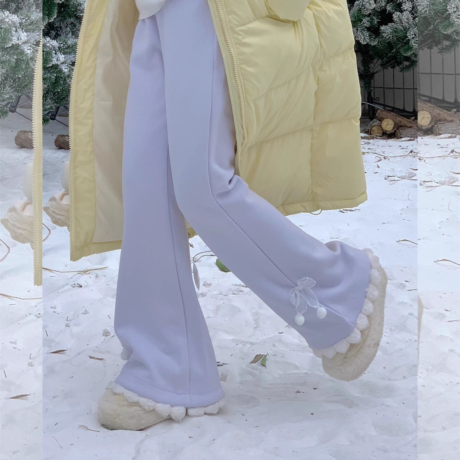 Мягкая девушка бант микро-вельветовые широкие брюки школьницы осенью и зимой сладкие толстые, бархатные повседневные длинные брюки