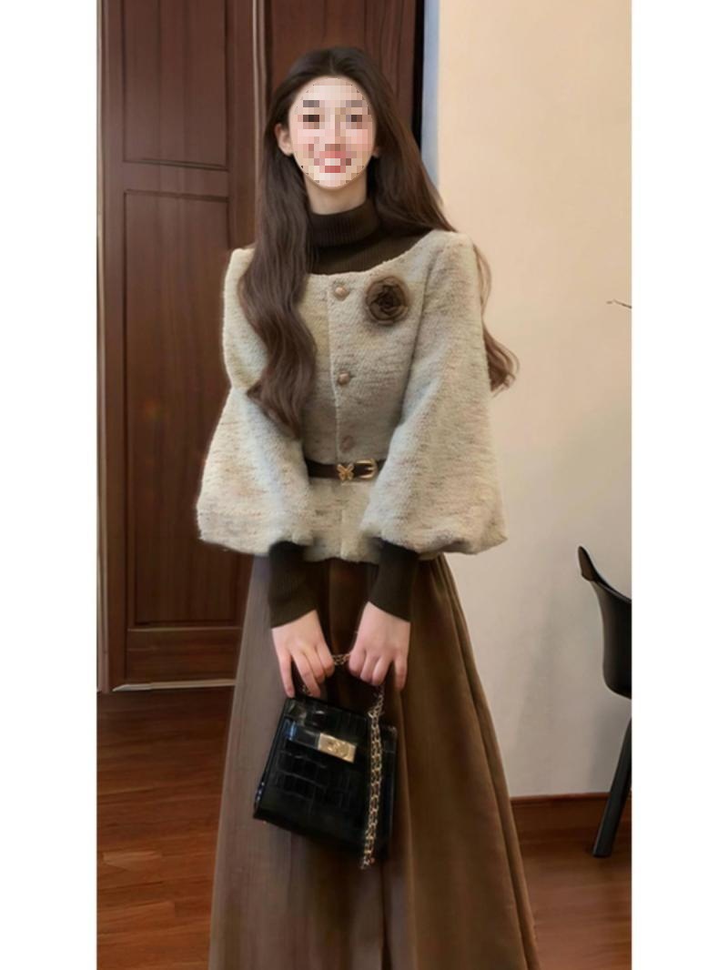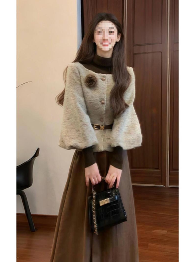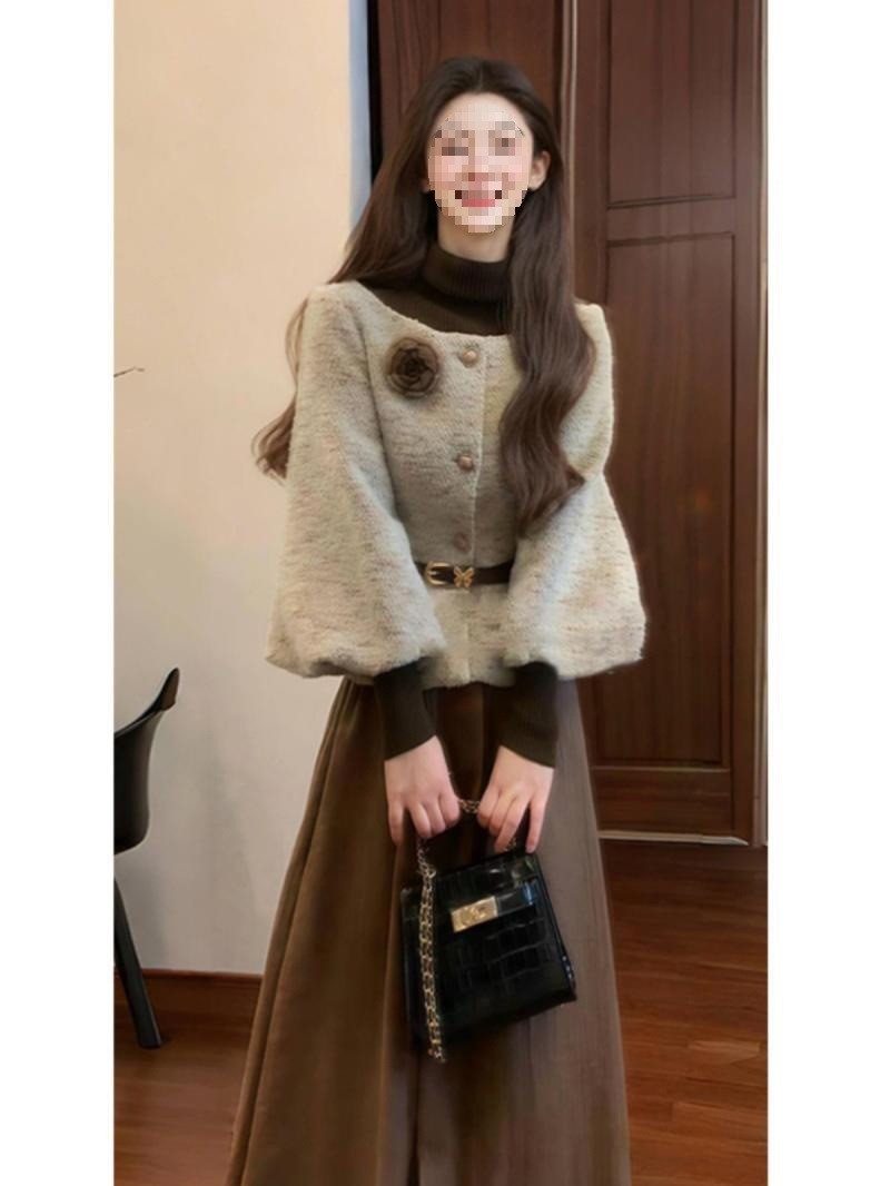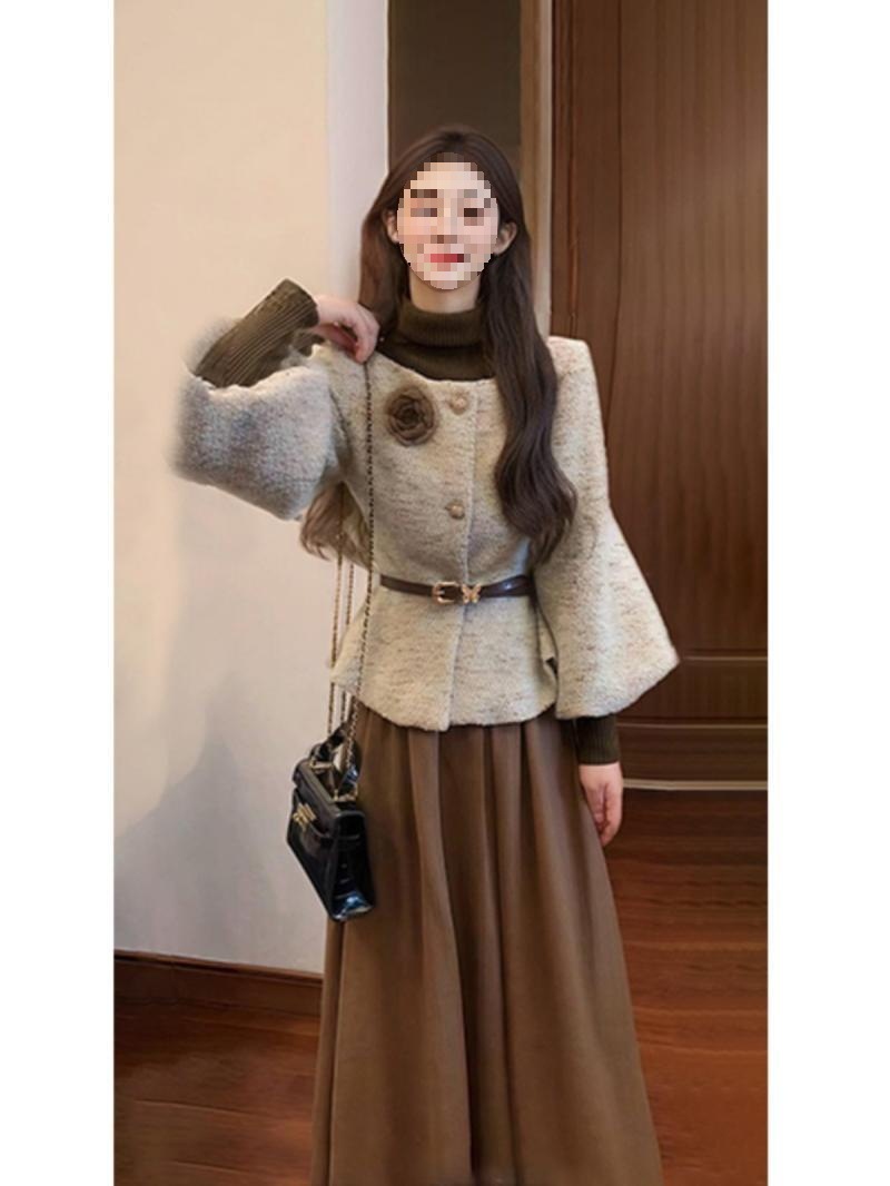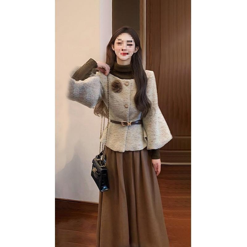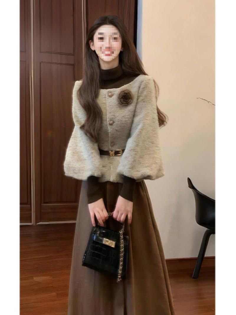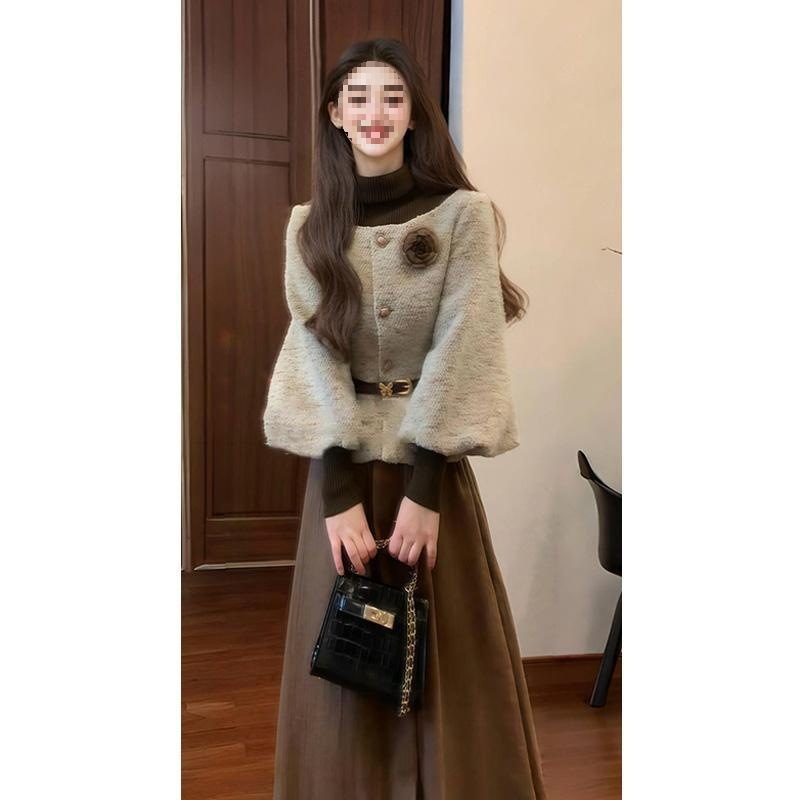 Большой размер толстый мм темперамент леди Xiao Xiangfeng с длинными рукавами кардиган куртка топ женская осенняя и зимняя талия юбка из двух частей