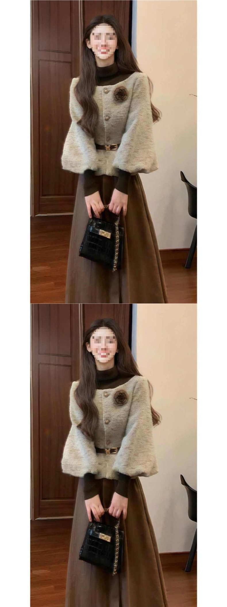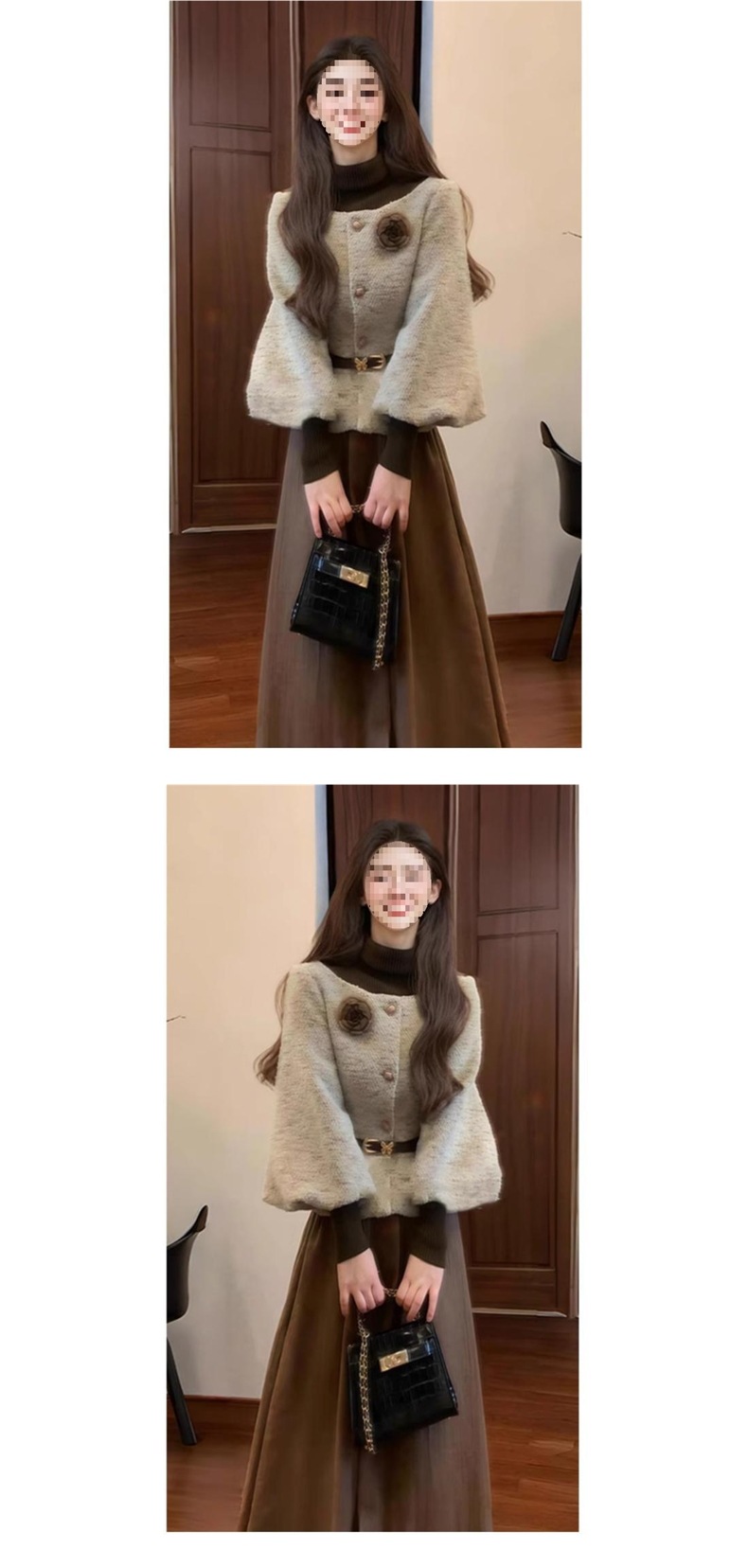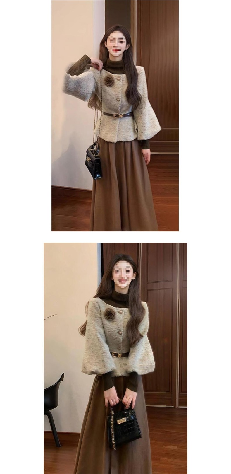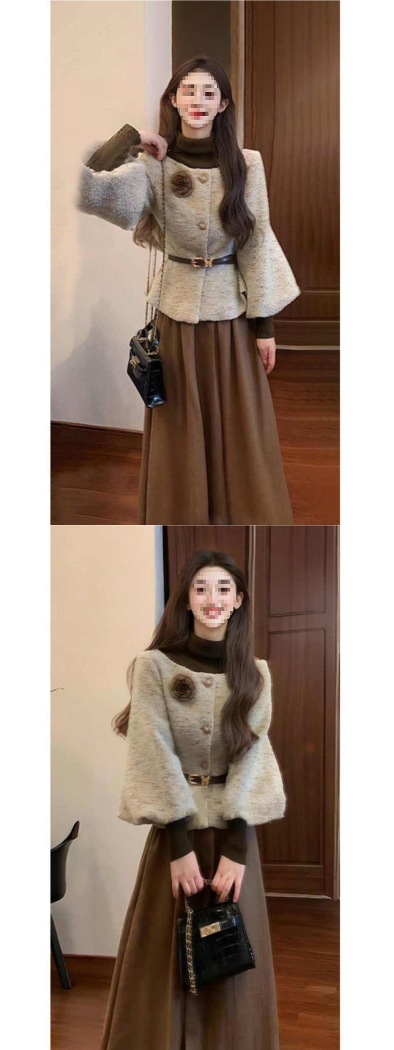 Большой размер толстый мм темперамент леди Xiao Xiangfeng с длинными рукавами кардиган куртка топ женская осенняя и зимняя талия юбка из двух частей