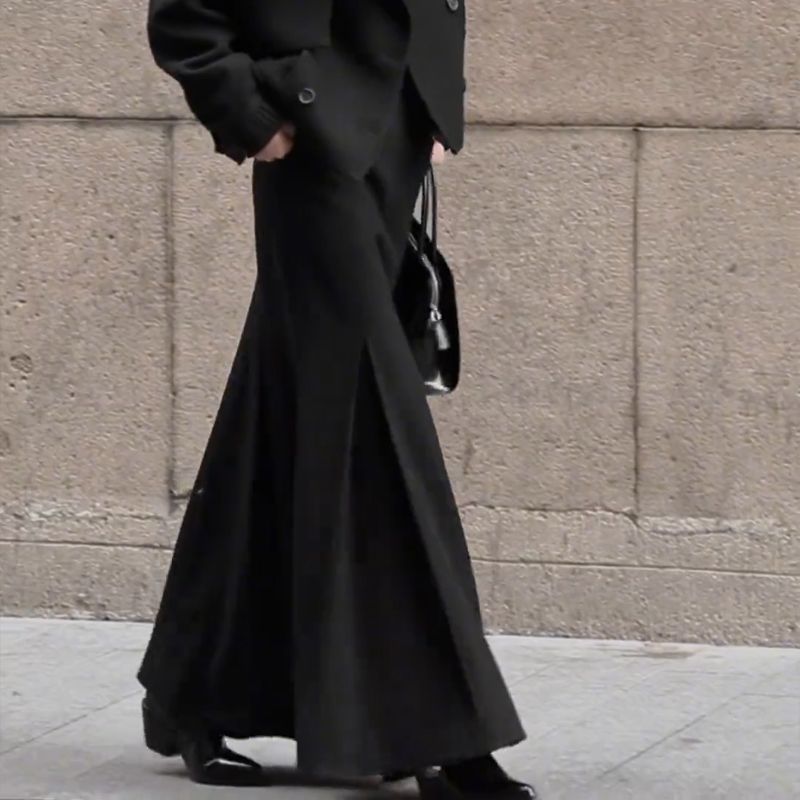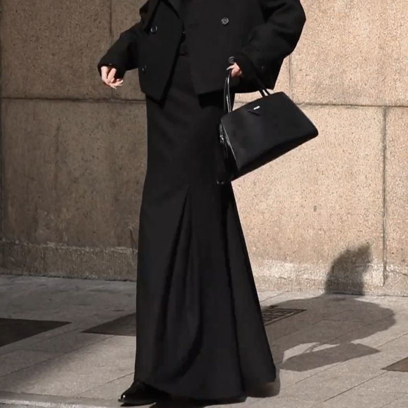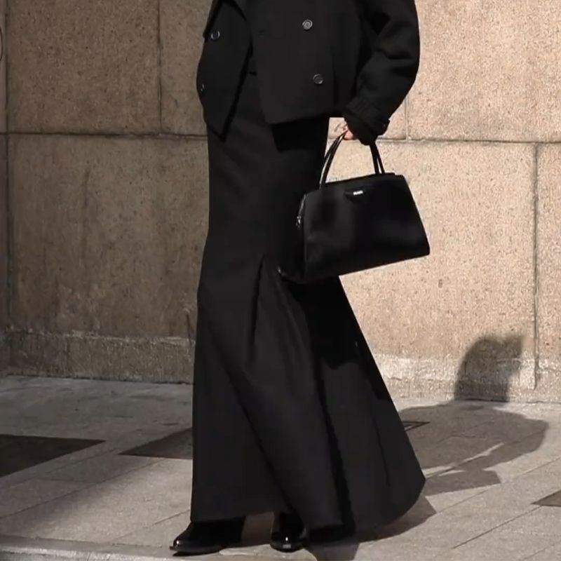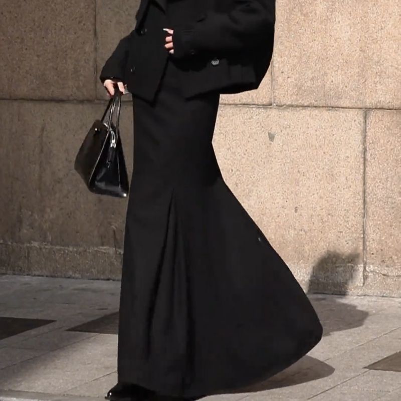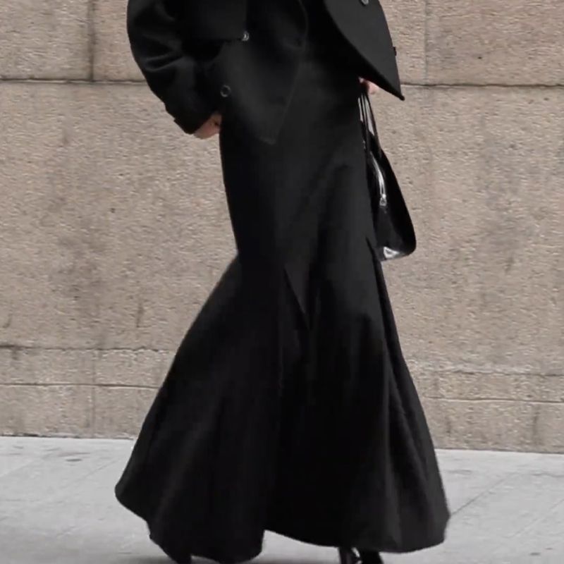 Французское ретро элегантная романтическая текстура нишевые черные юбки половинки женские 2024 осень и зима новые тонкие платья среднего и длинного