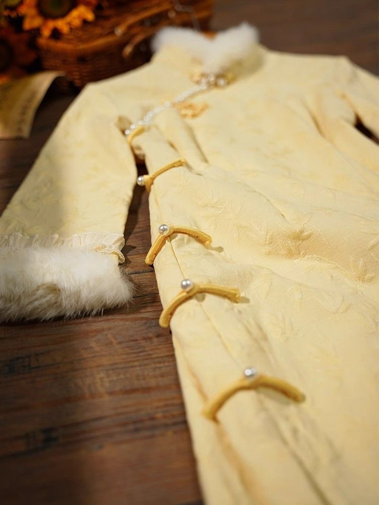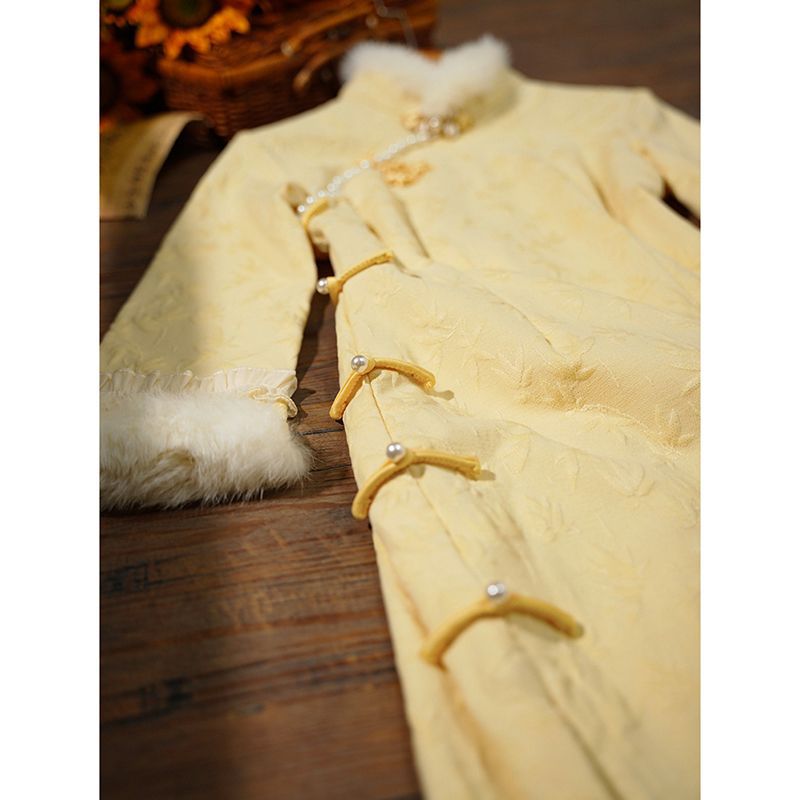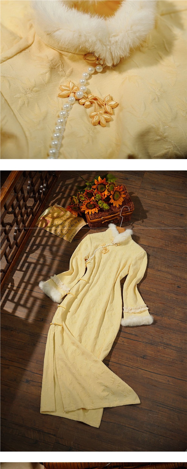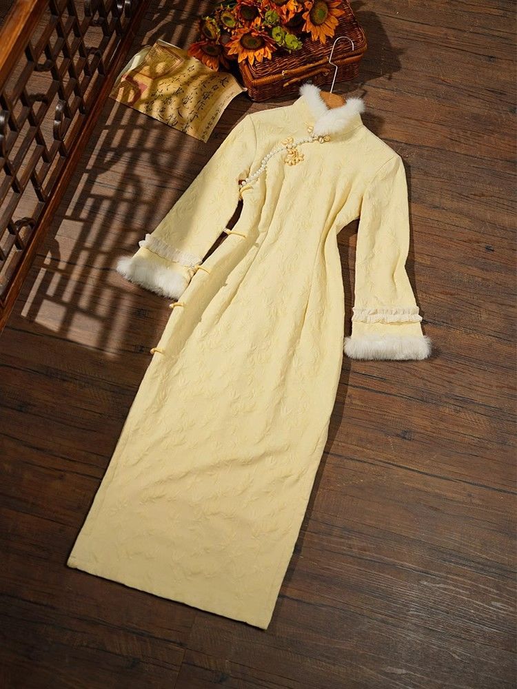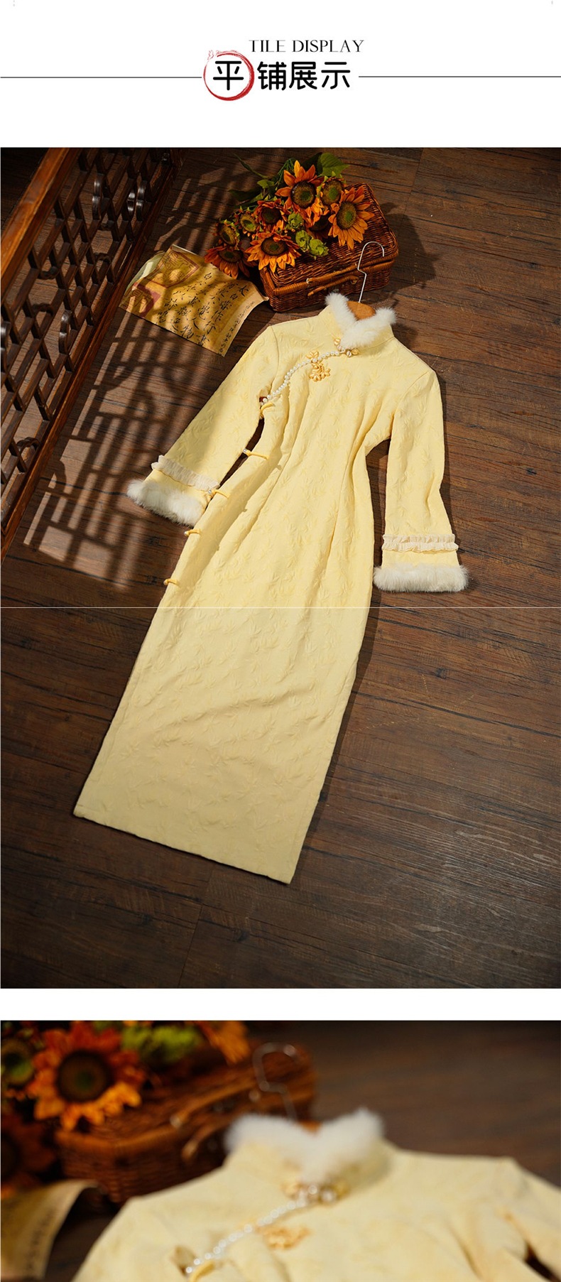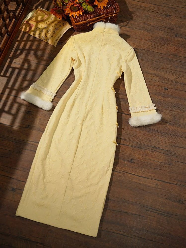 Новый китайский стиль в стиле ретро желтый улучшенный Cheongsam 2024 новый зимний молодой ультра темпераментное платье