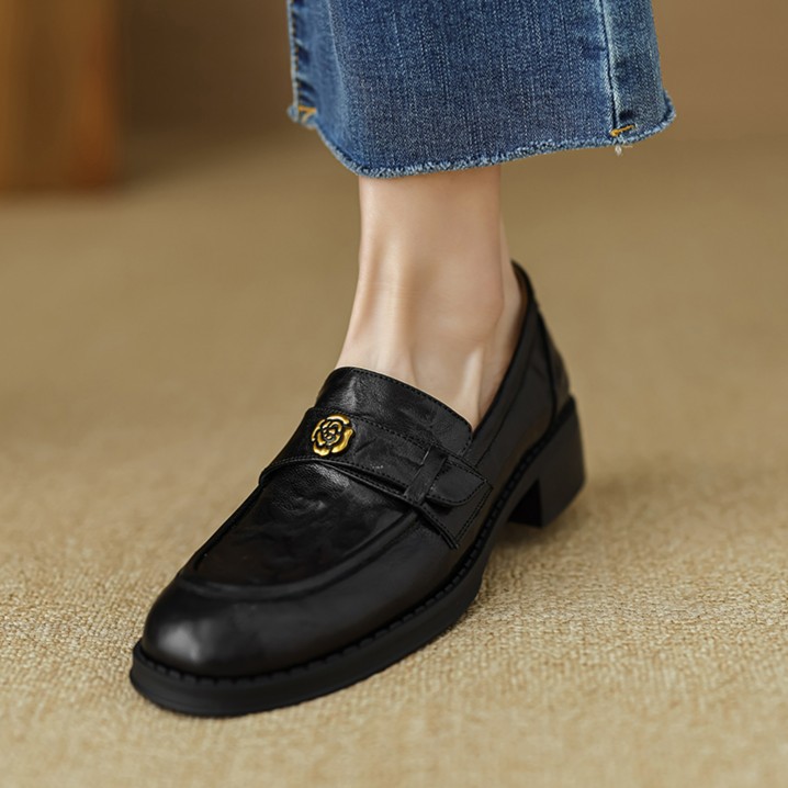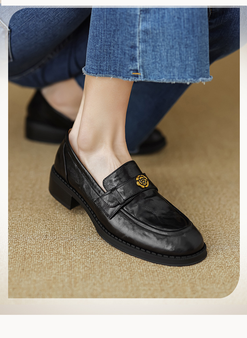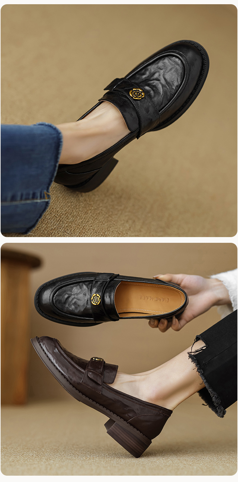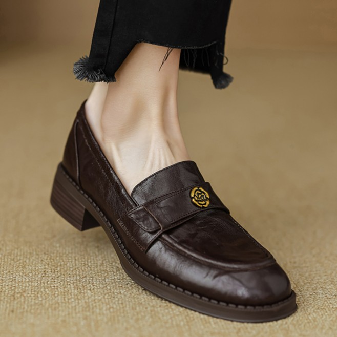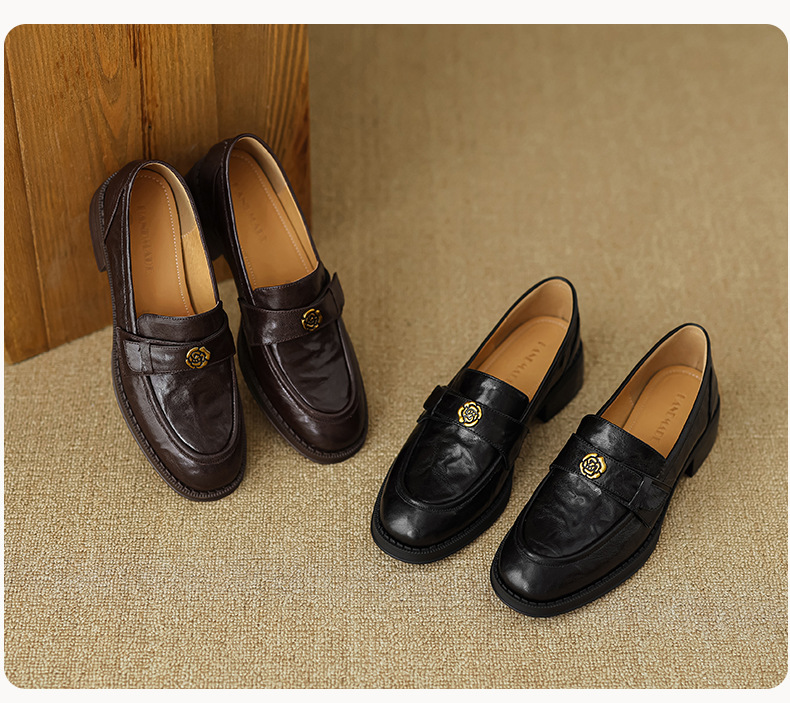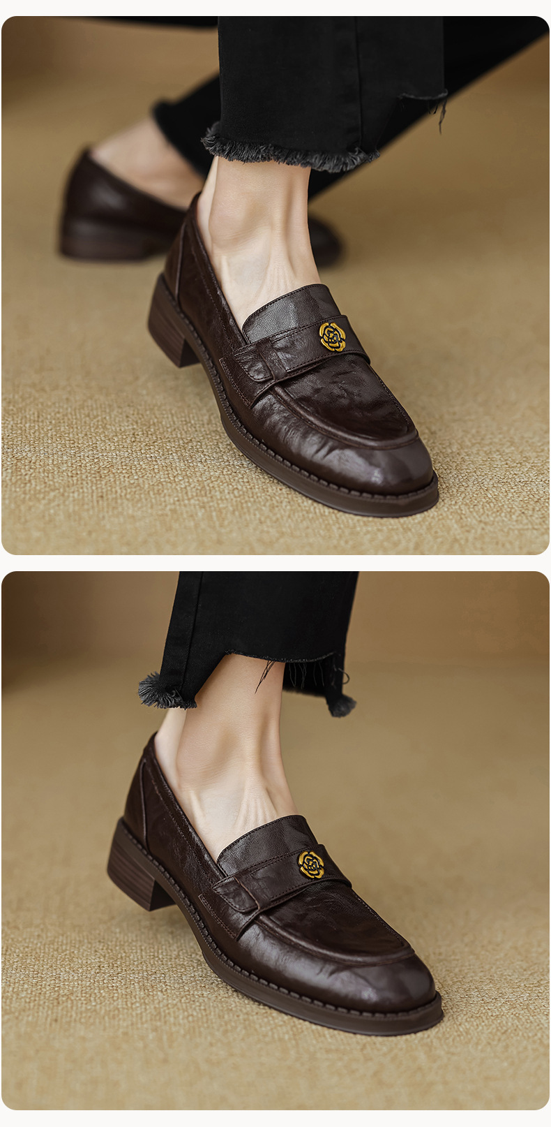 Универсальные лоферы из натуральной кожи с мягкой подошвой и толстым каблуком для женщин, новинка 2025 года, осенне-зимние туфли на плоской подошве в стиле ретро, маленькие кожаные туфли