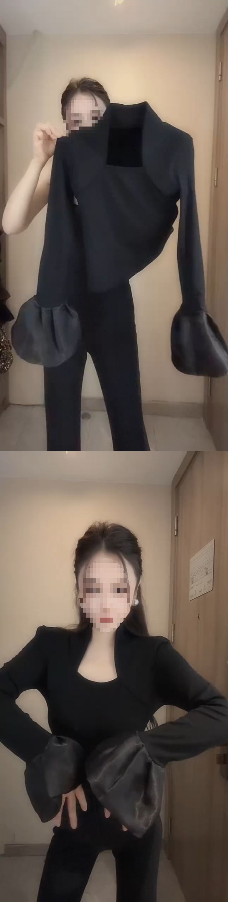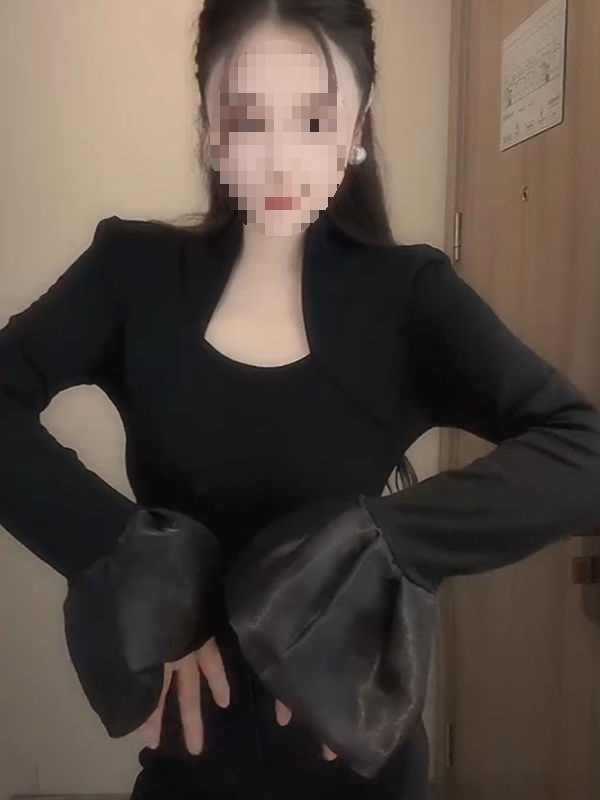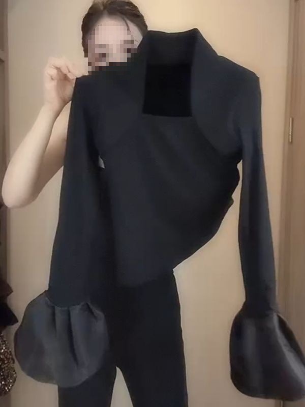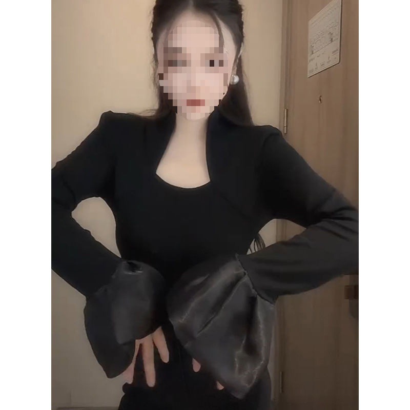 2024 осень и зима новый шифоновый клеммный рукав для сшивания тонкая девушка прямолинейный воротник с воротником с плюшевым утолщением футболка женская