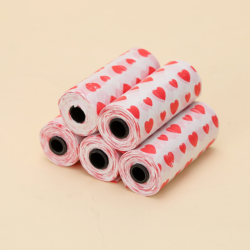 Поставки для домашних животных Любовь Печатный мешок для мусора для домашних животных на открытом воздухе Собака собирает мешок для кала Цветной мешок для мусора