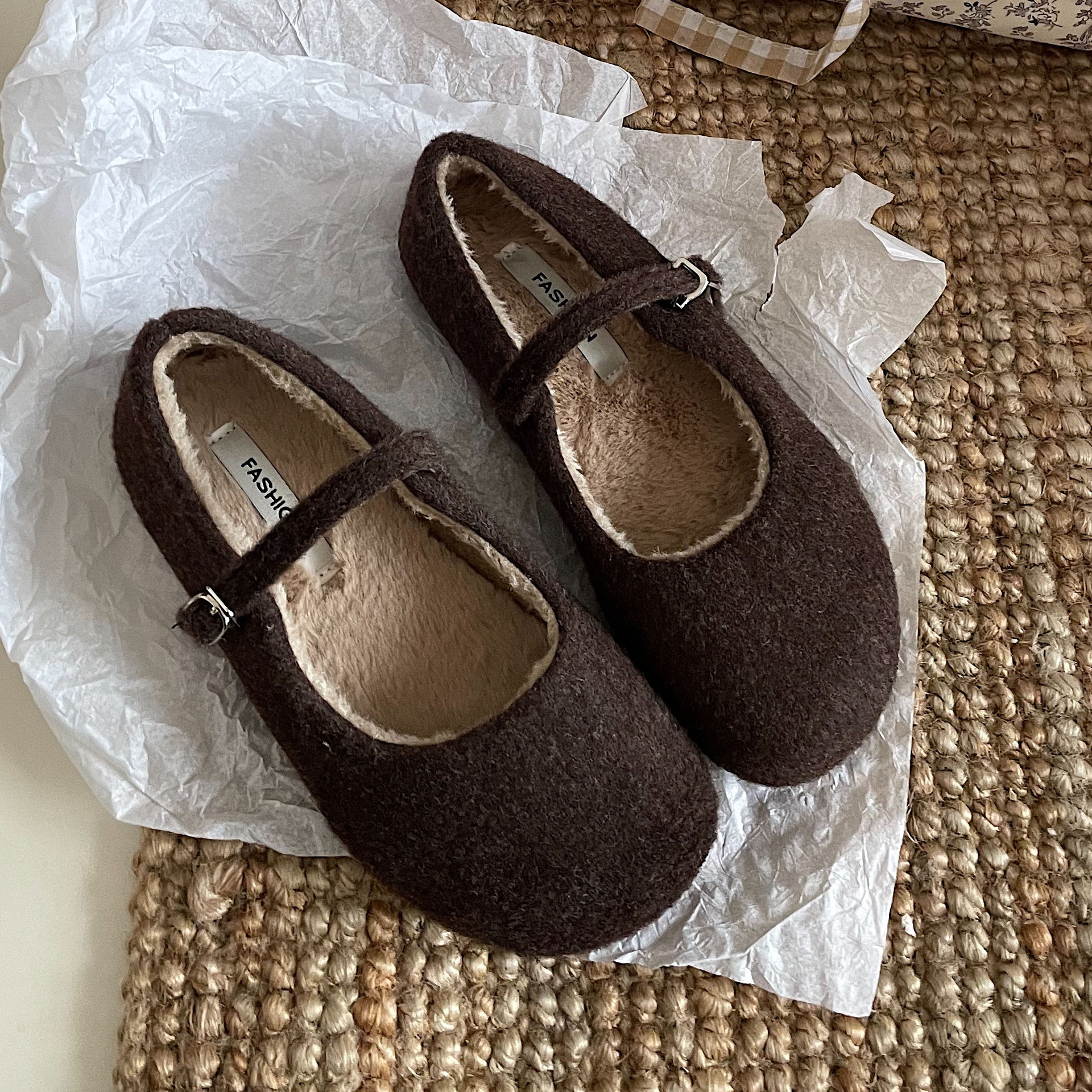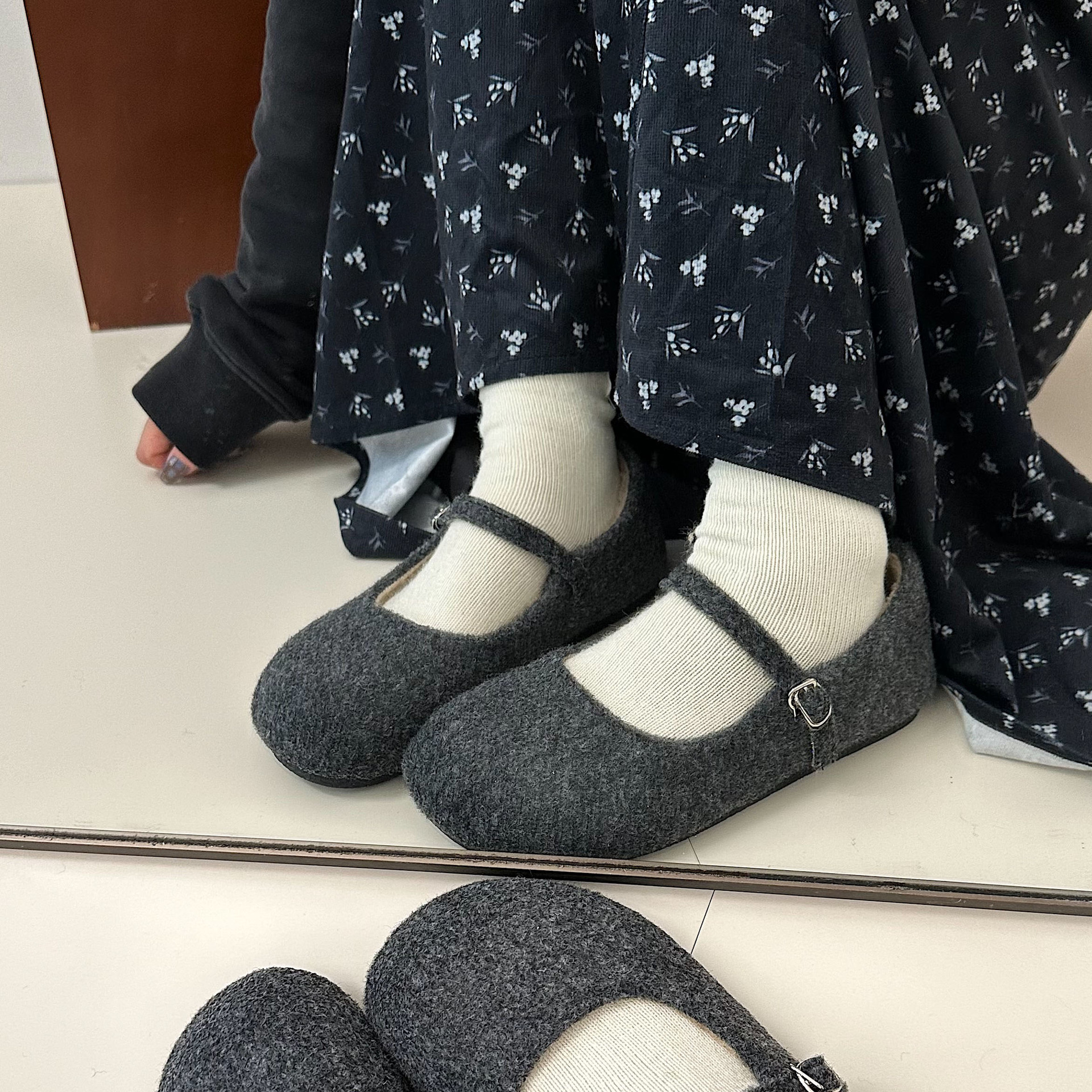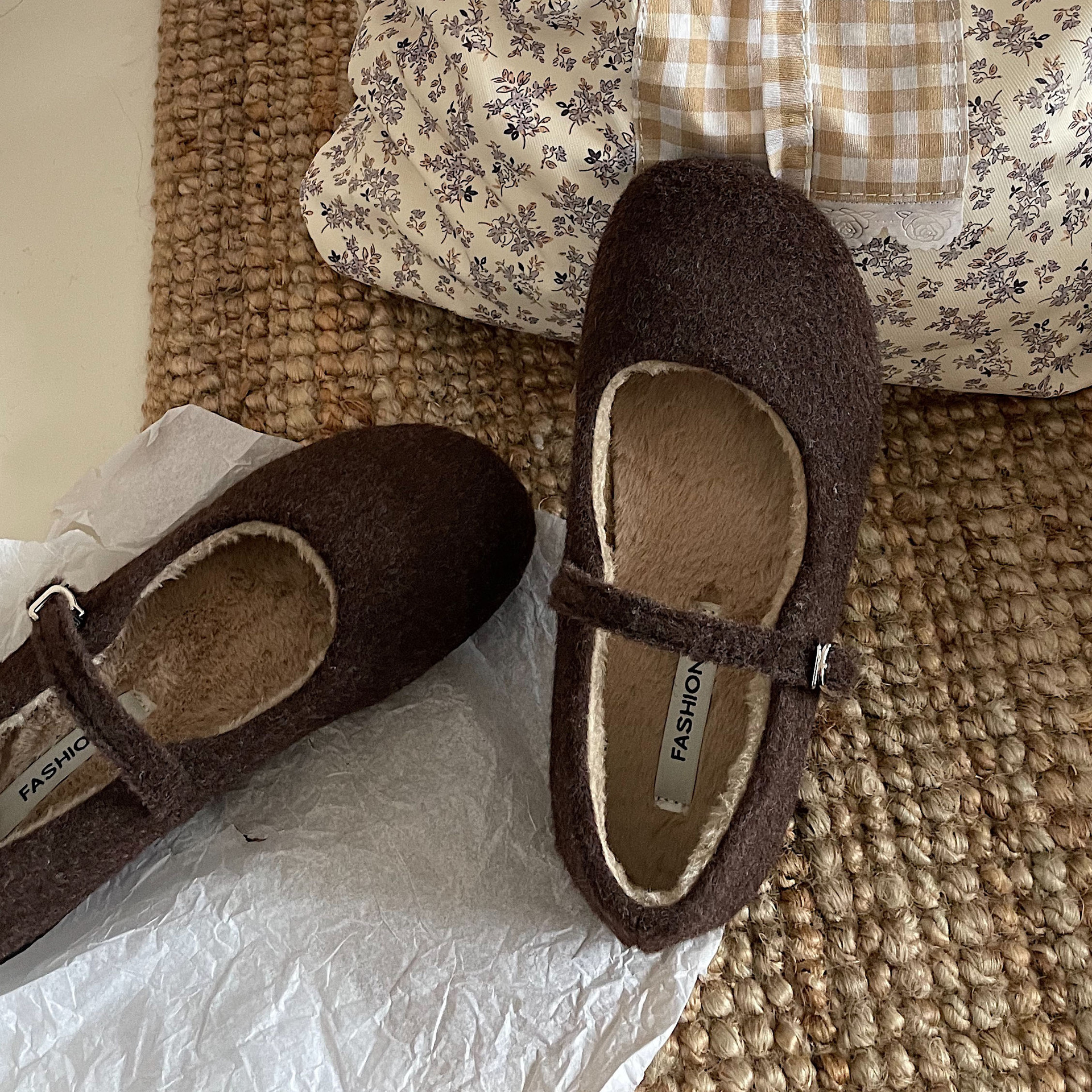 Фея иностранные меховые туфли женские зимние носить французский вечерний ветер темперамент дамы плюс бархат Мэри Джейн однотонные хлопковые туфли на плоской подошве