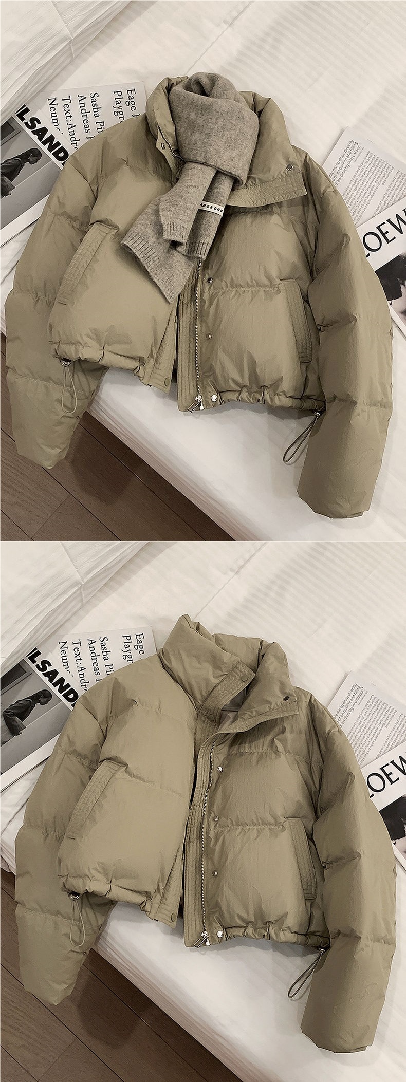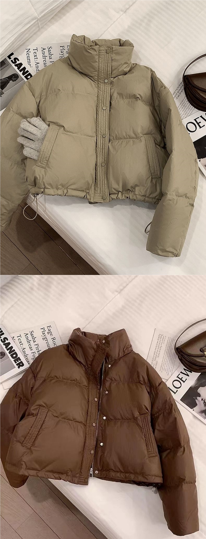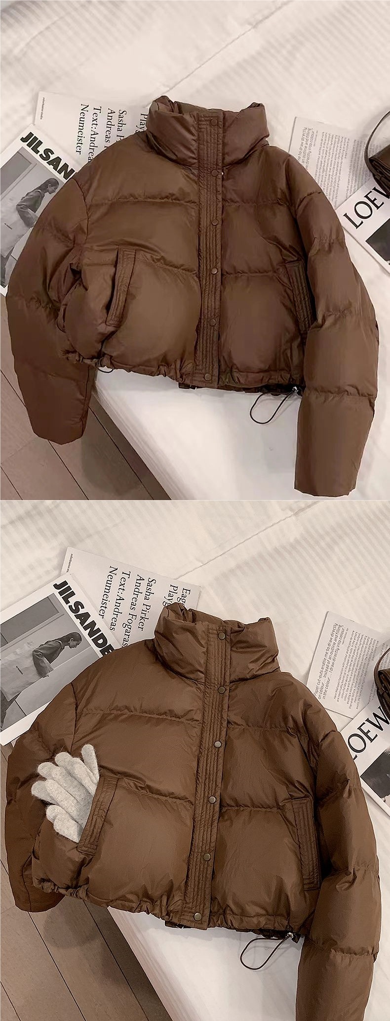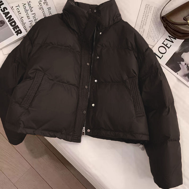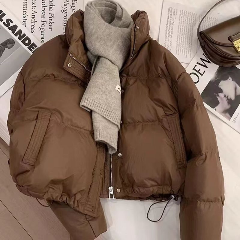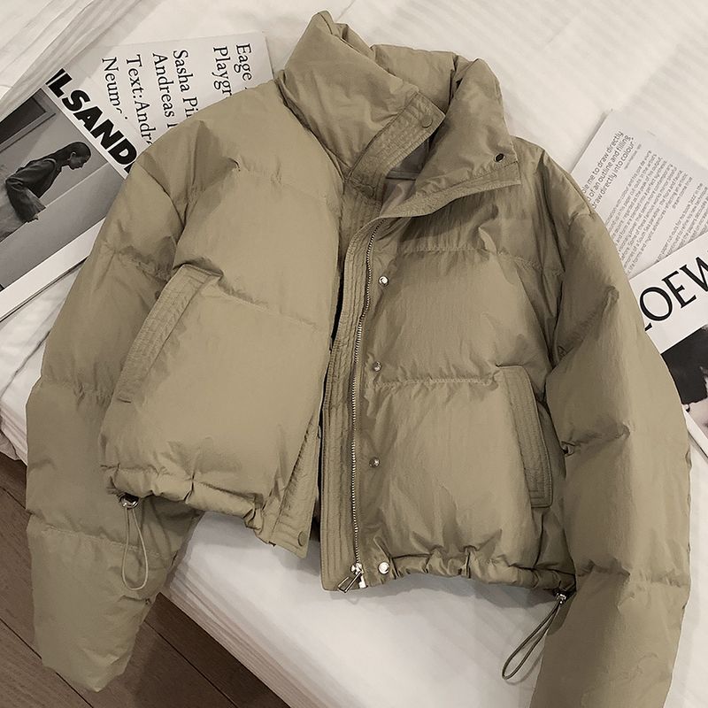 Пуховая хлопчатобумажная хлебная одежда PU кожура хлопчатобумажная одежда толстая теплая куртка зимняя короткая с высокой талией и тонкая хлопчатобумажная куртка