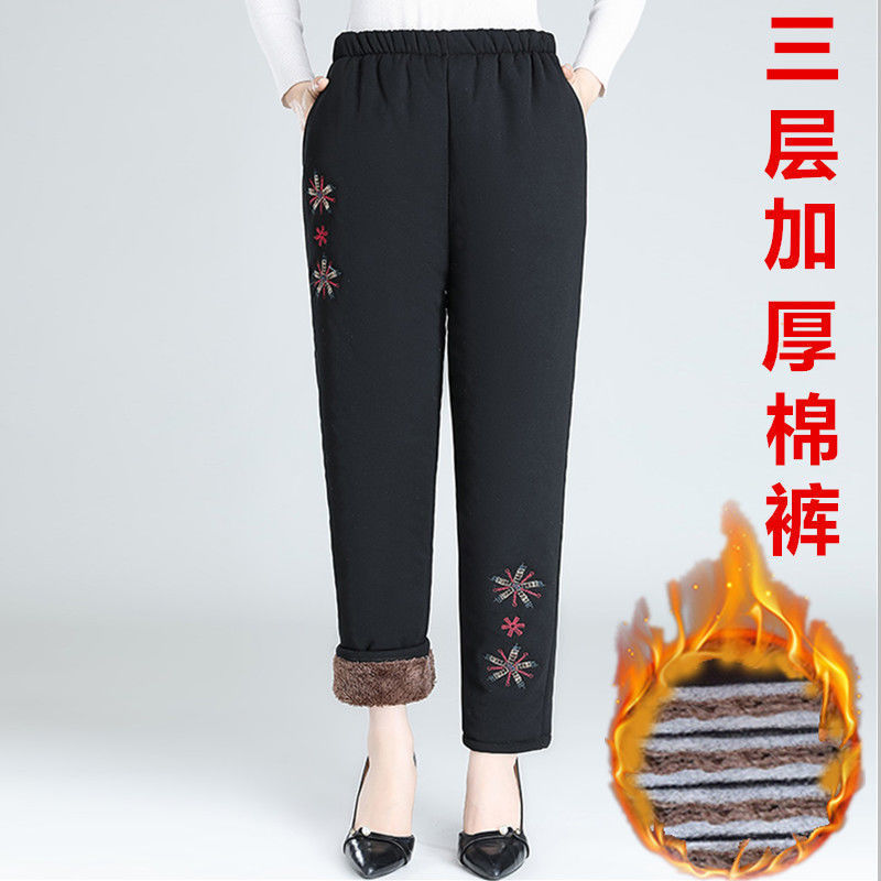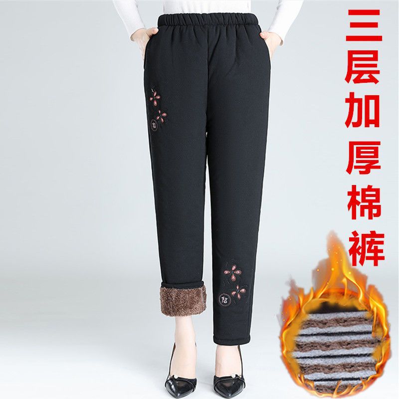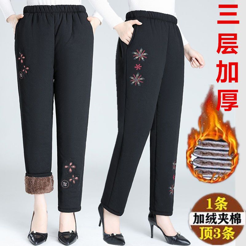 Мама брюки плюшевые толстые пожилые хлопчатобумажные брюки женские наружные зимние средние и старые женские брюки пожилые теплые брюки бабуля
