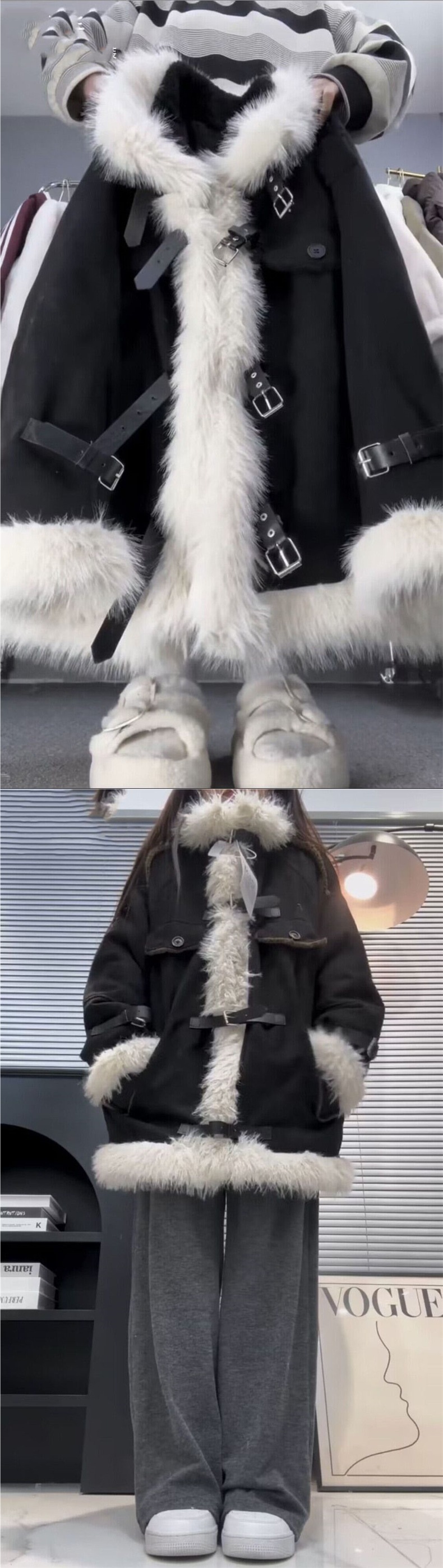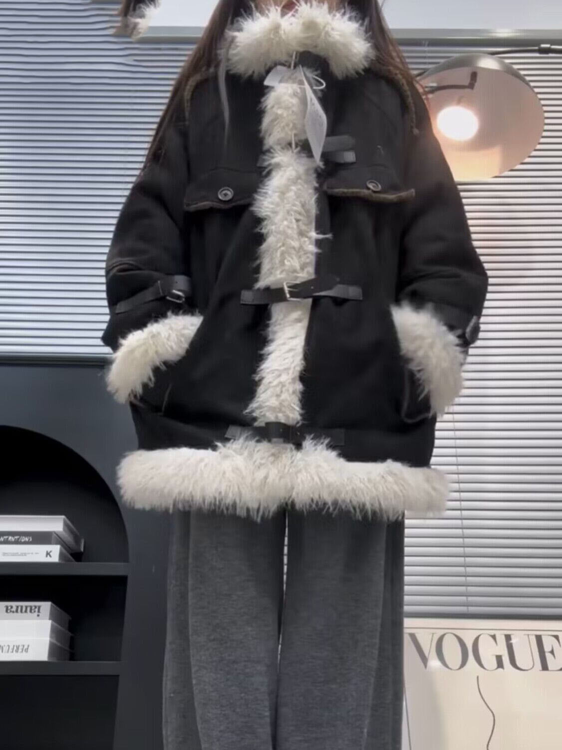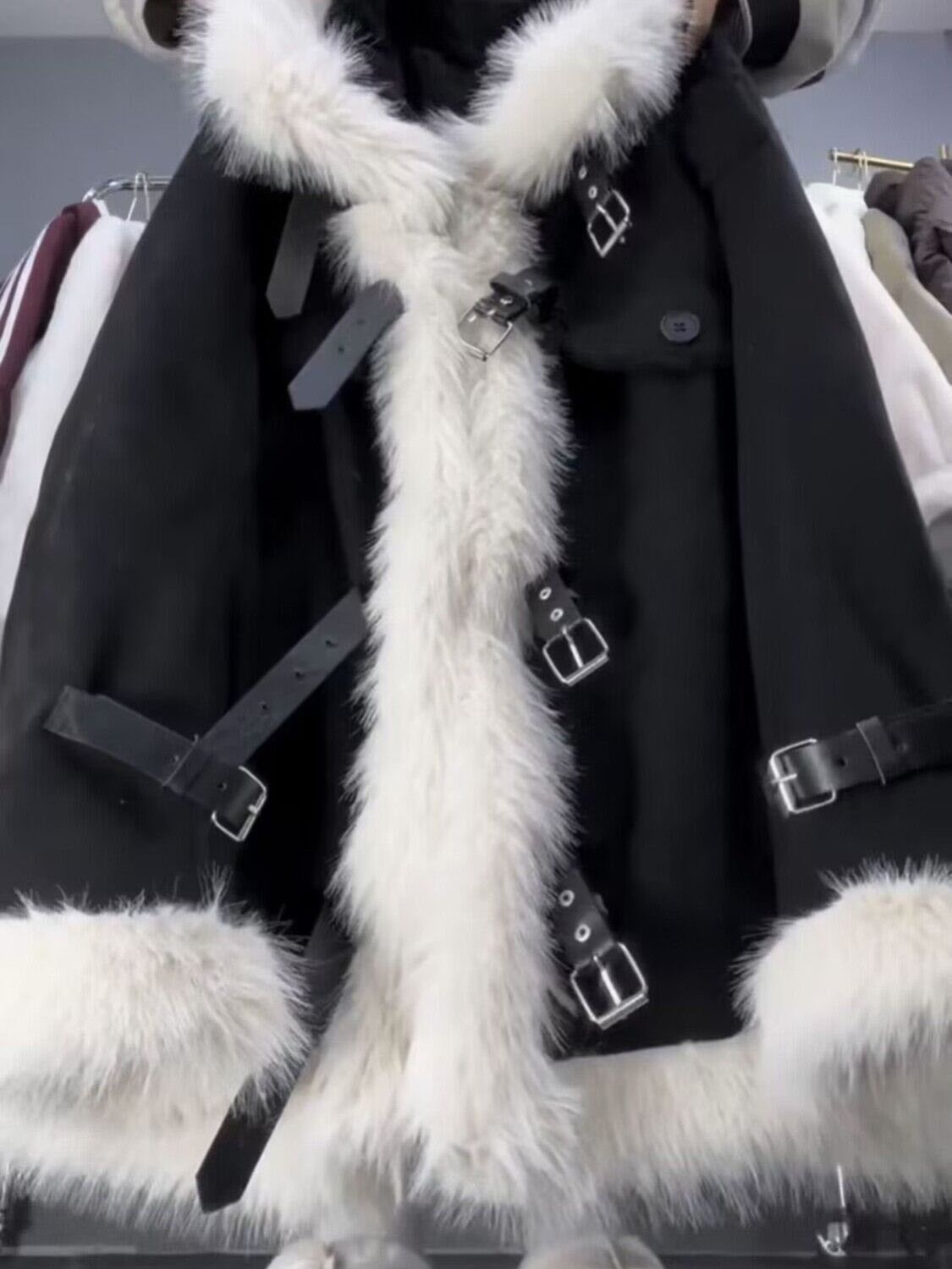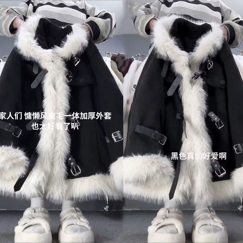 Флоат из оленьей кожи пара американский ретро теплая бархатная утолщение зимний интегрированный пушистый воротник шерстяная куртка кожаная пряжка дизайн