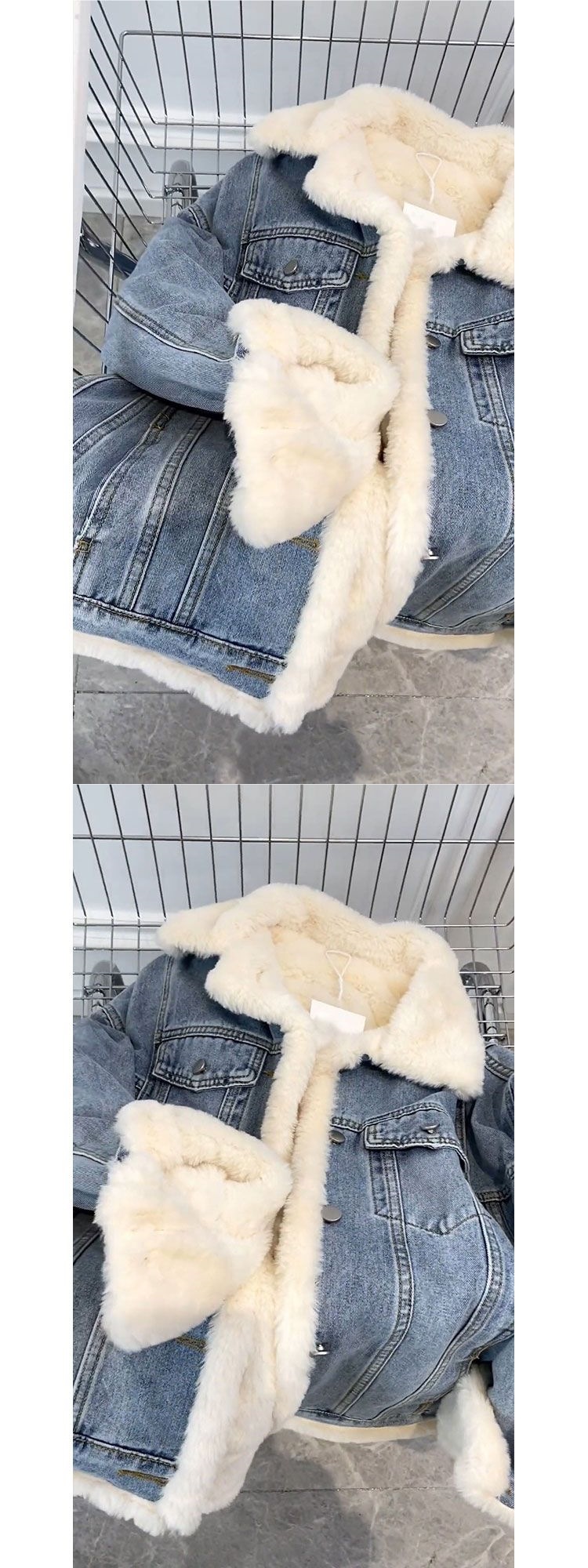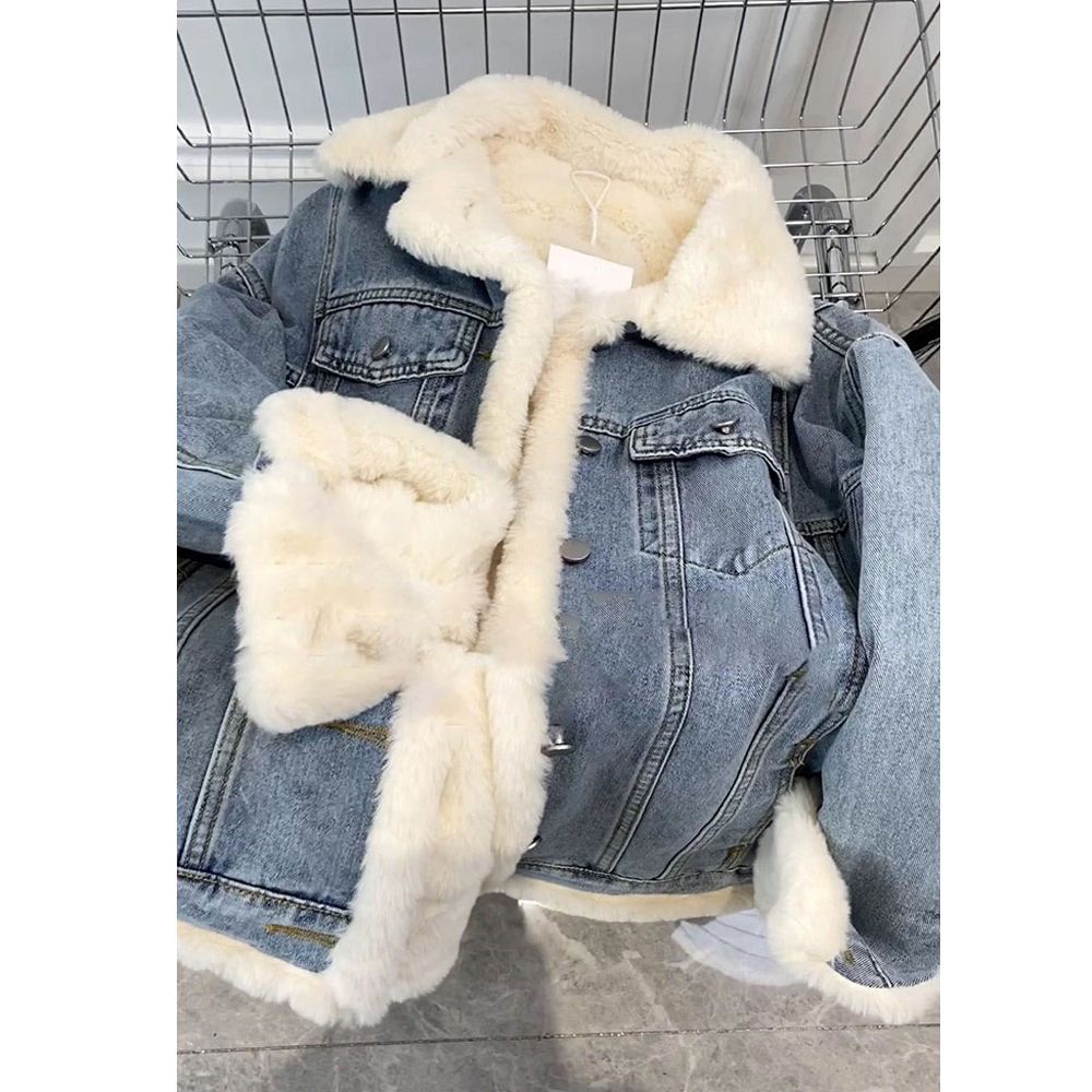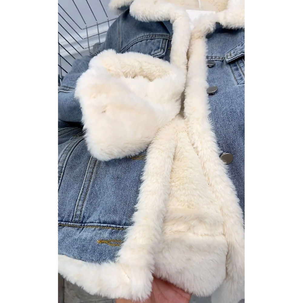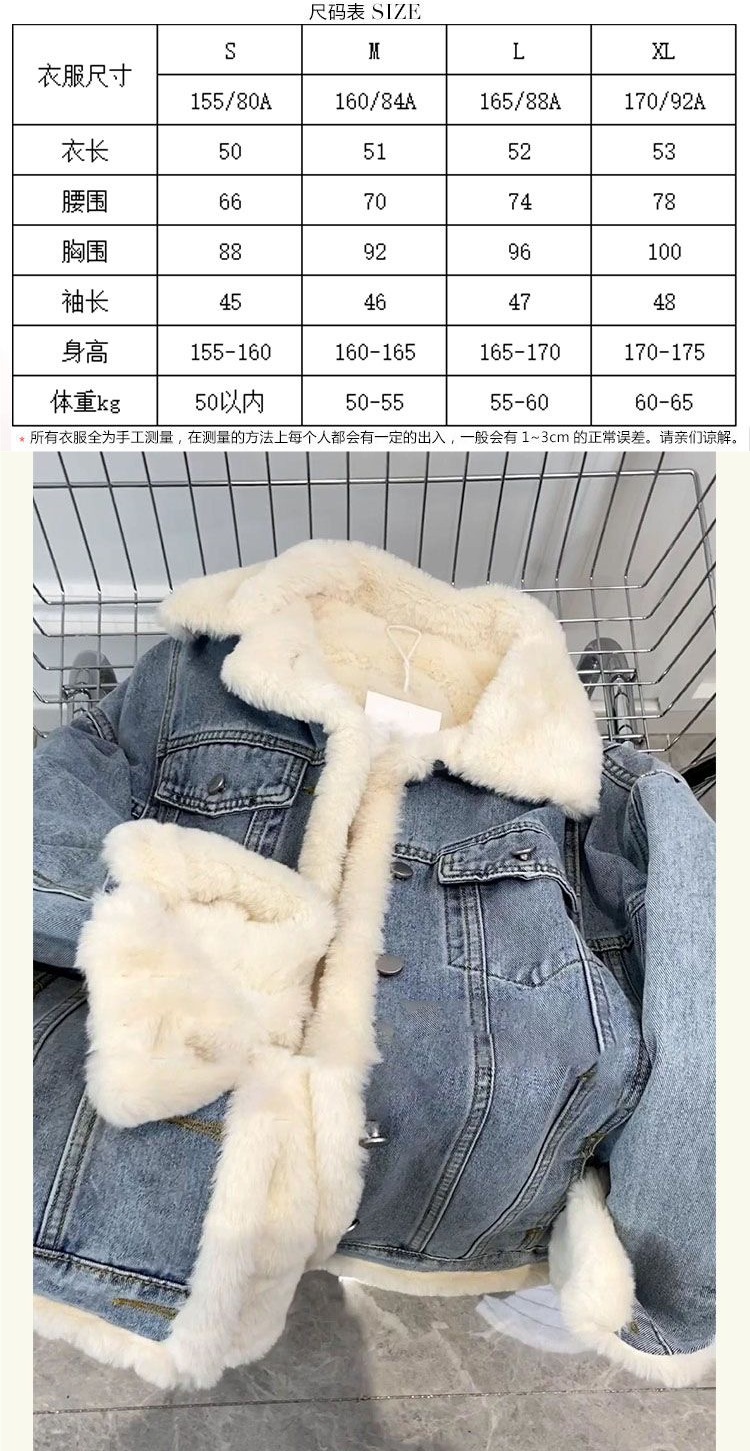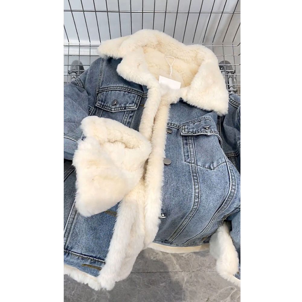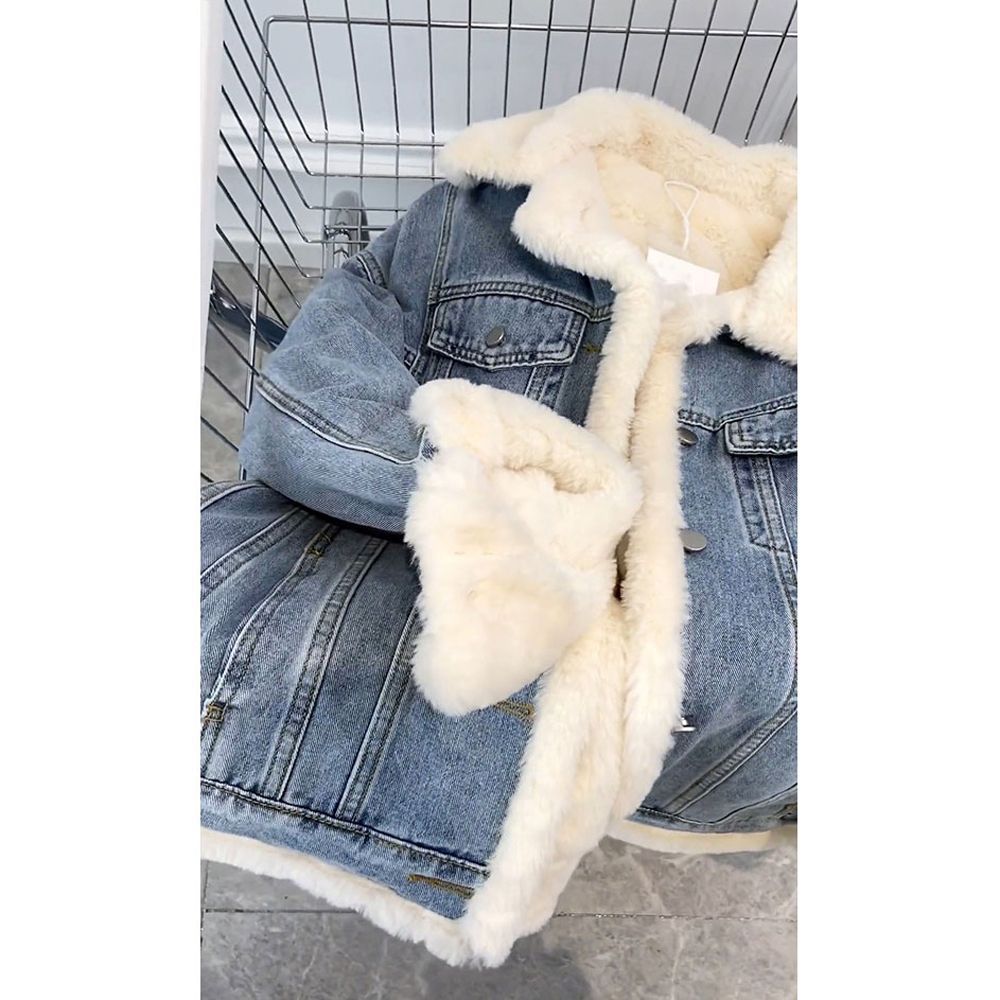 Little Xiangfeng овечья шерсть французская жареная улица джинсовая короткая куртка женская весна и осень с плюшевым толстым флисом щука