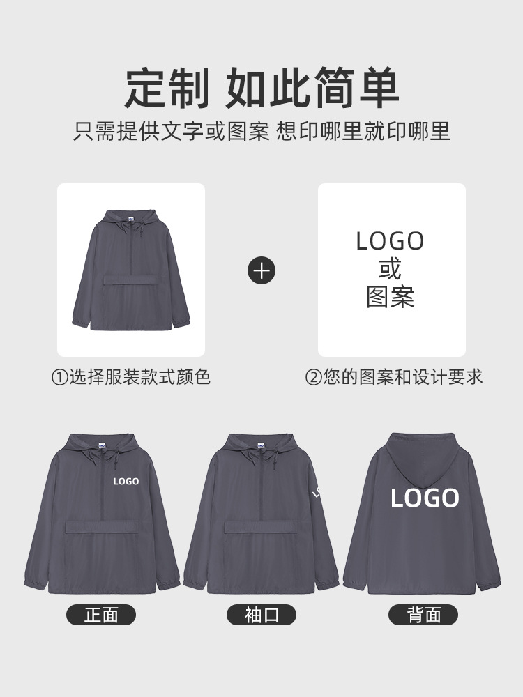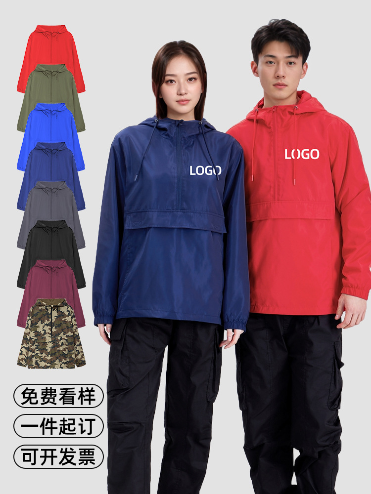 Уличная водонепроницаемая ветровка с половинной застежкой-молнией, тонкая весенне-осенняя мужская и женская ветровка на молнии, индивидуальный дизайн EJ2000