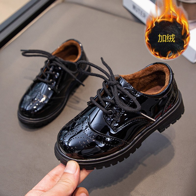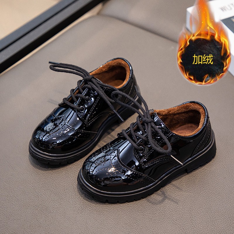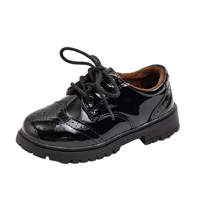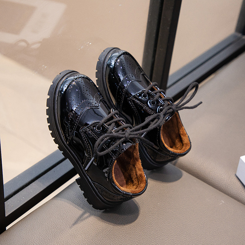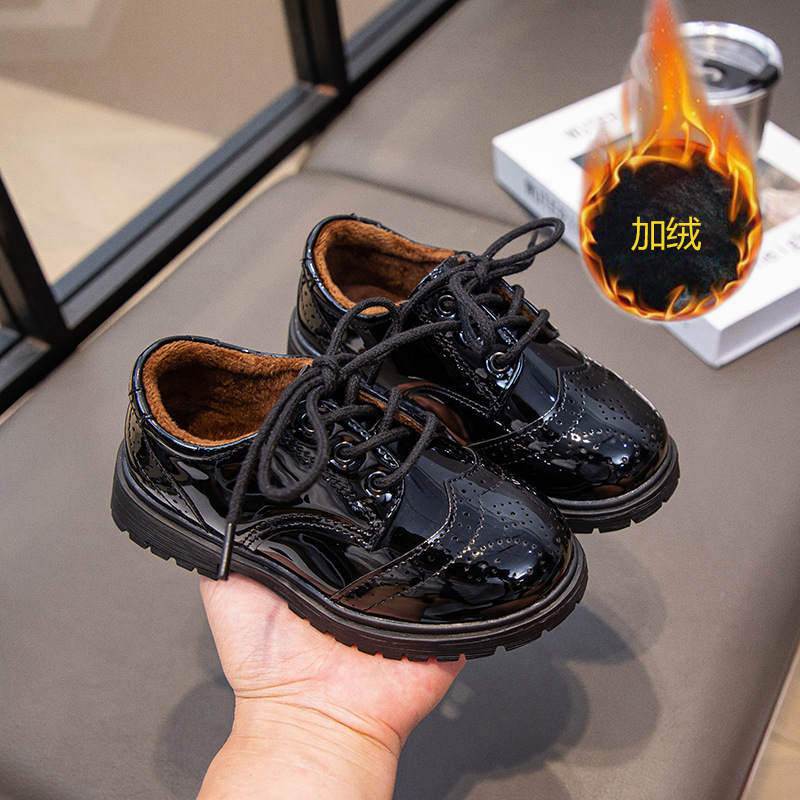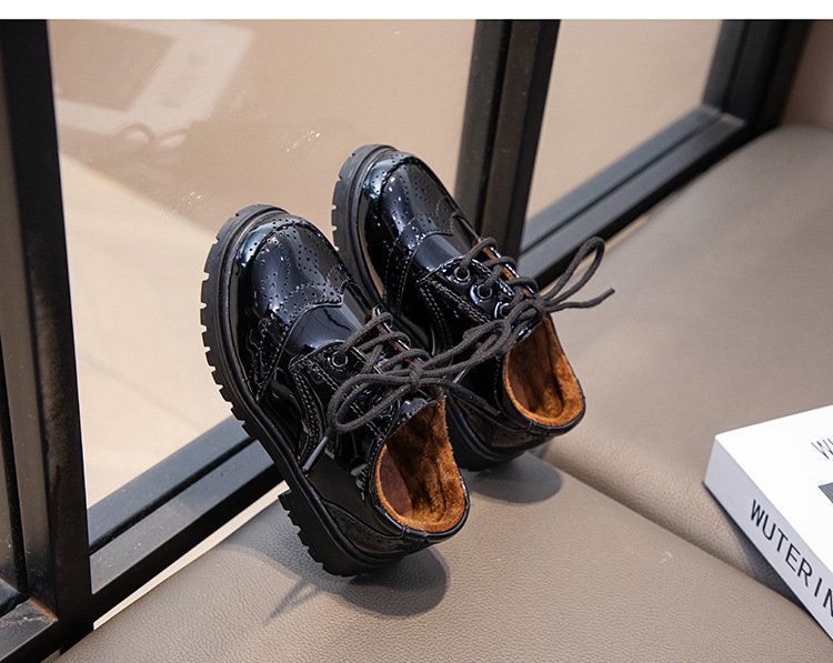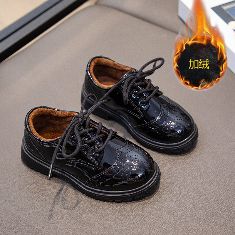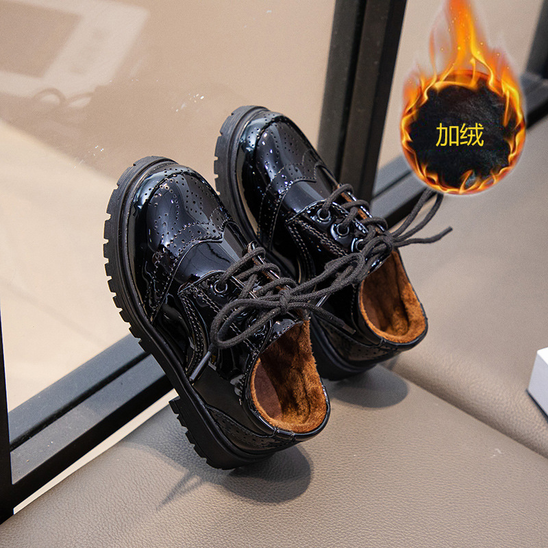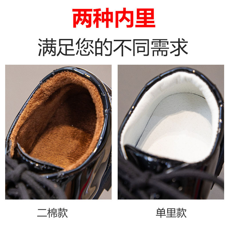 Черные кожаные туфли для мальчиков плюс бархат утолщенные хлопчатобумажные туфли