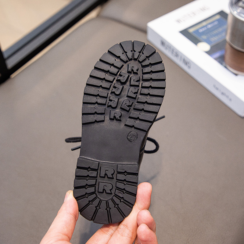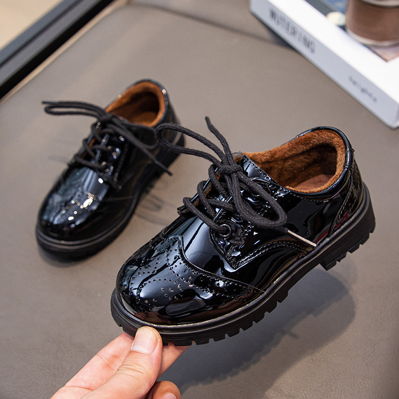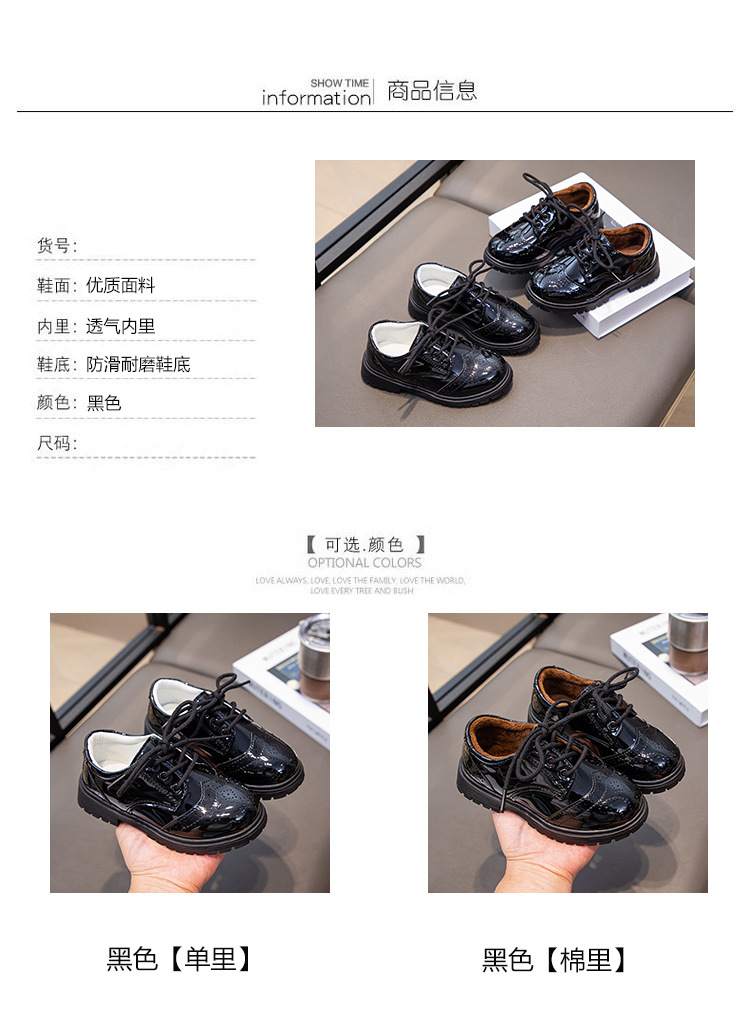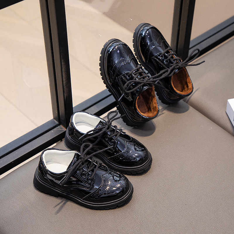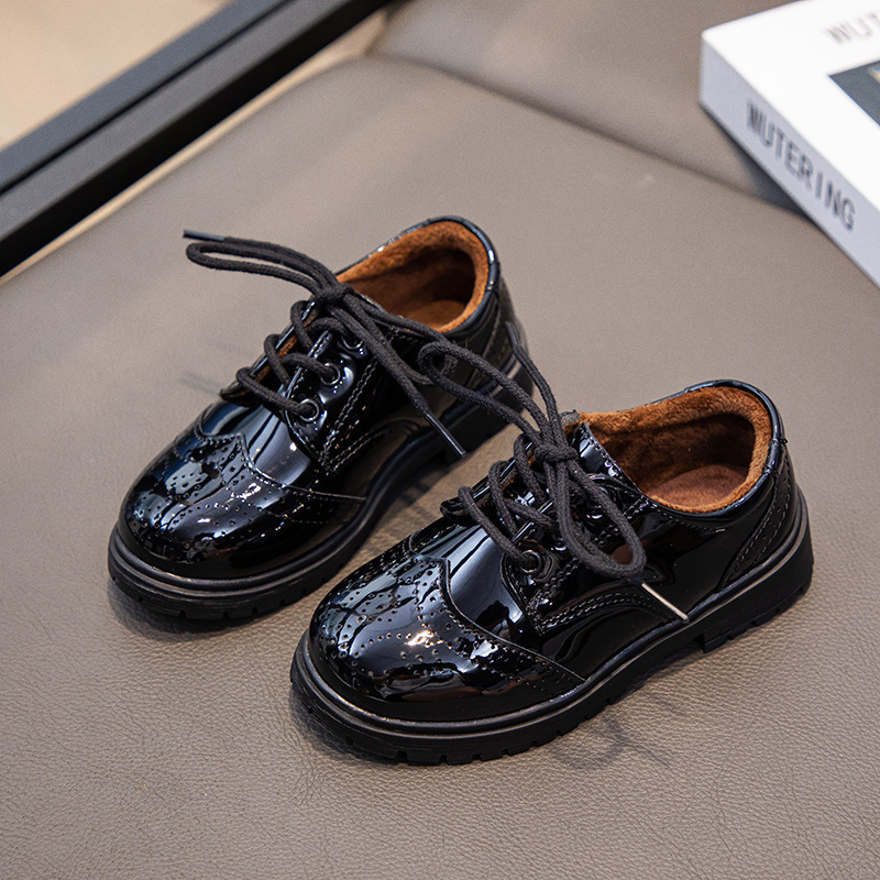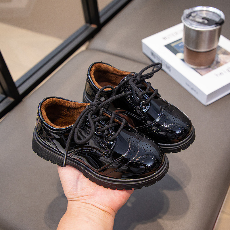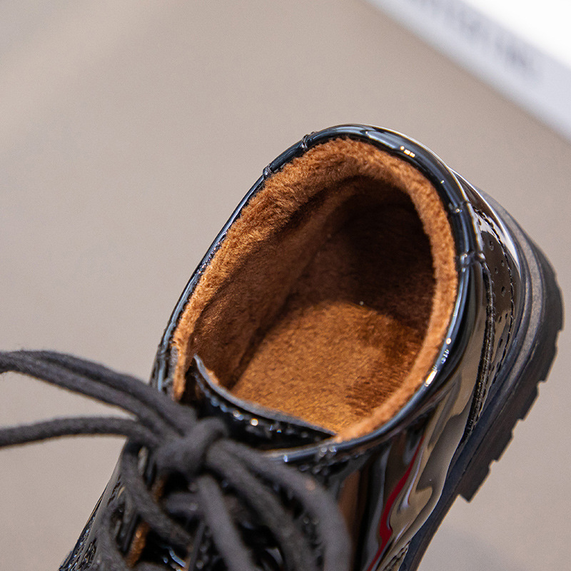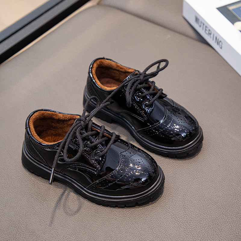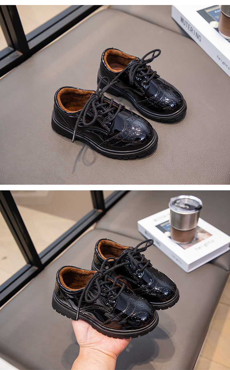 Черные кожаные туфли для мальчиков плюс бархат утолщенные хлопчатобумажные туфли