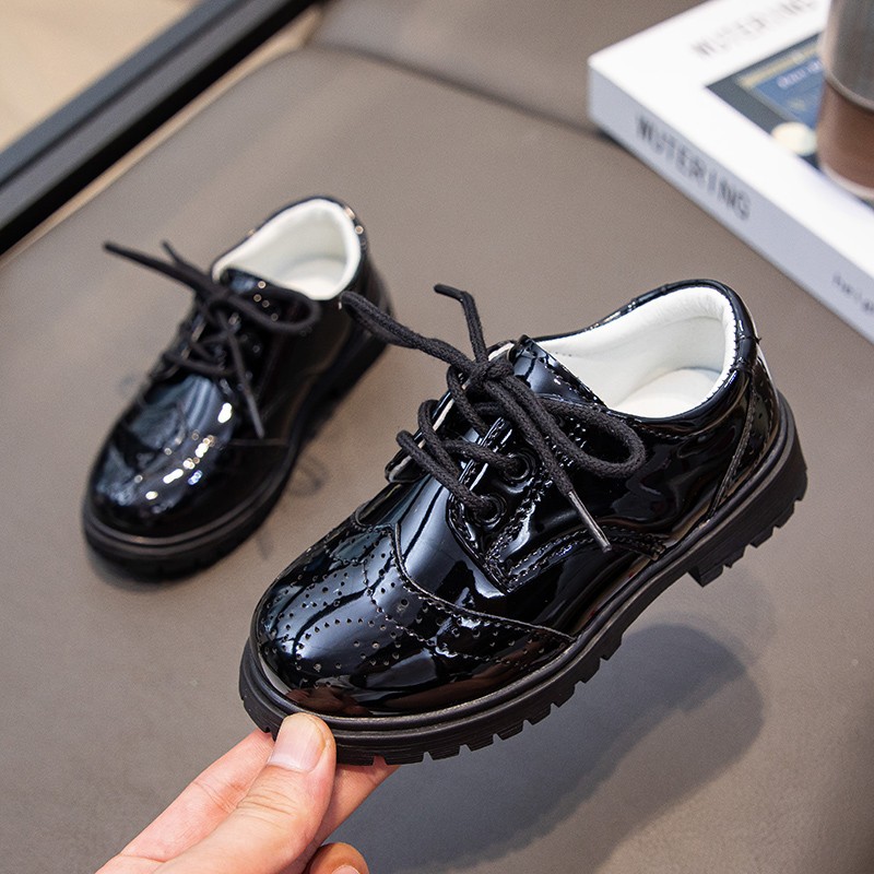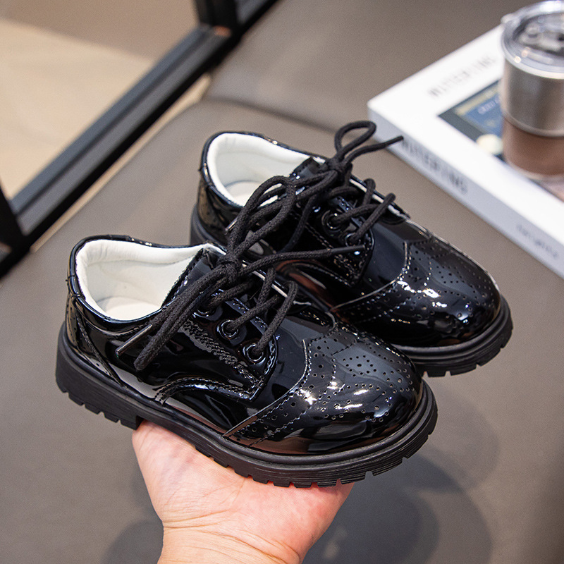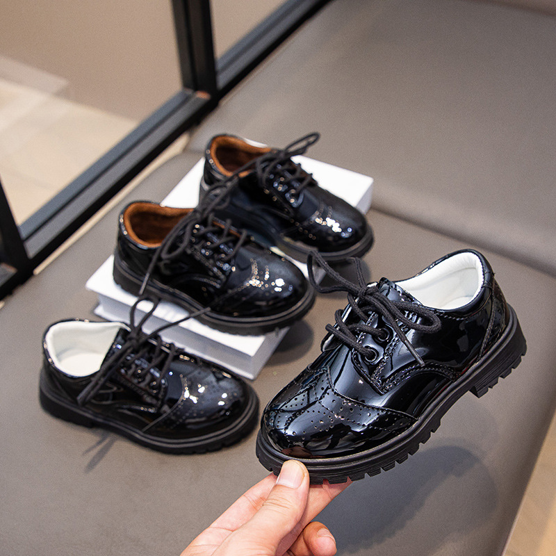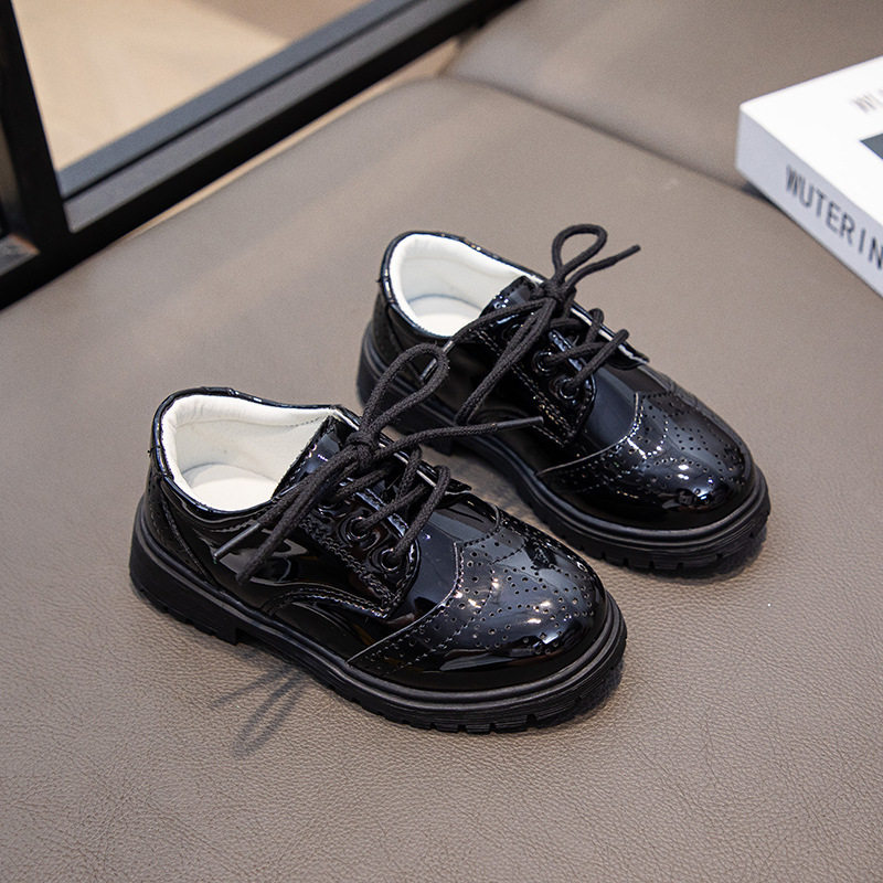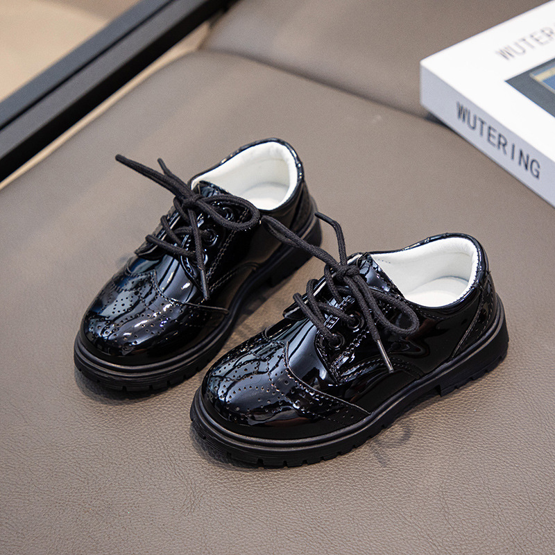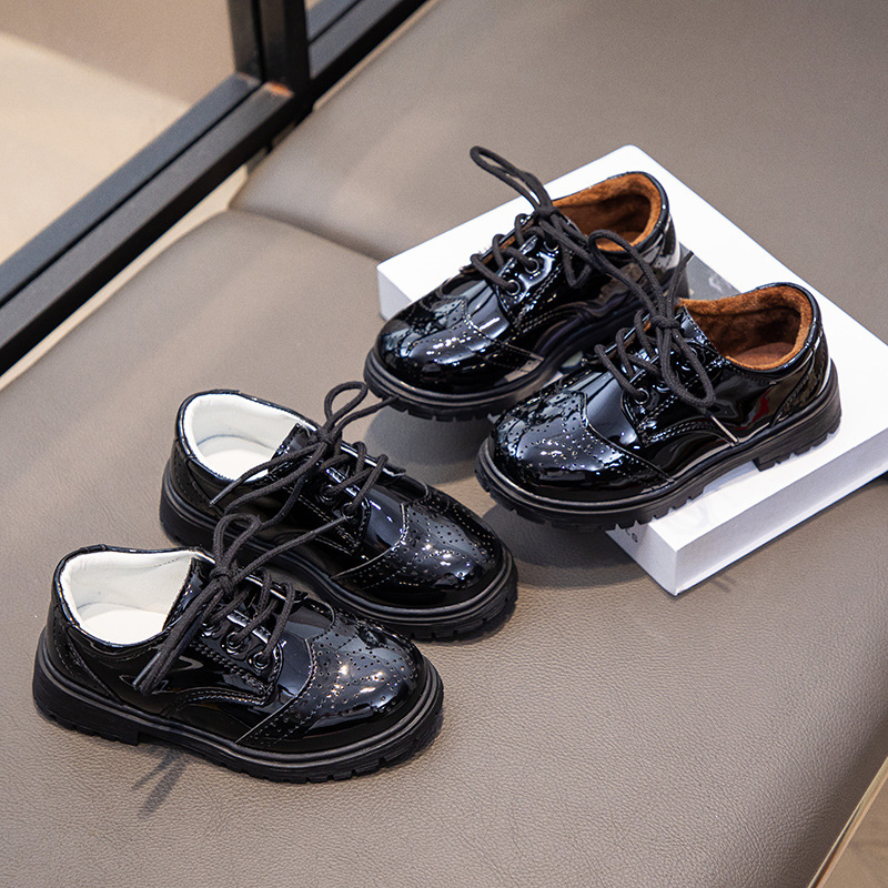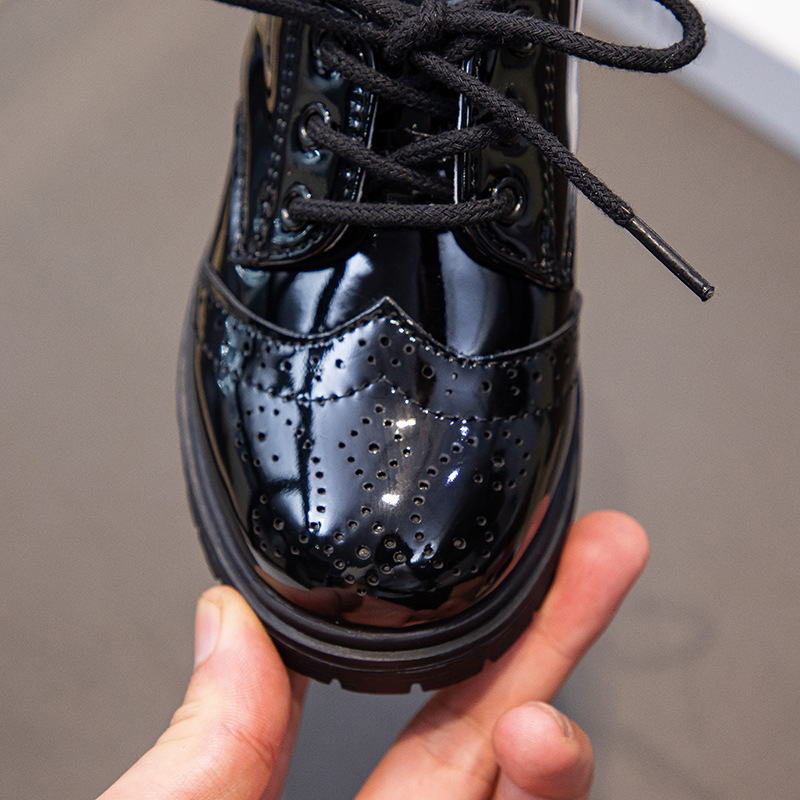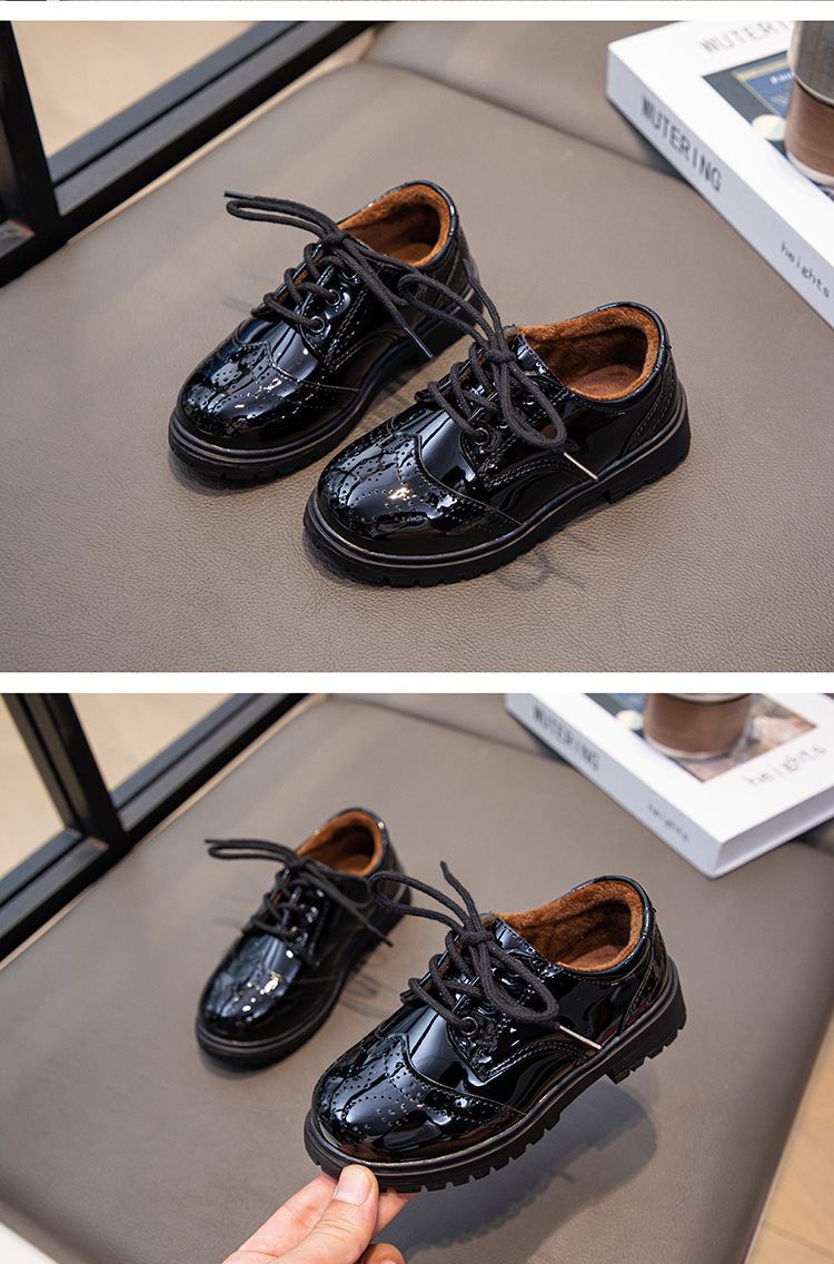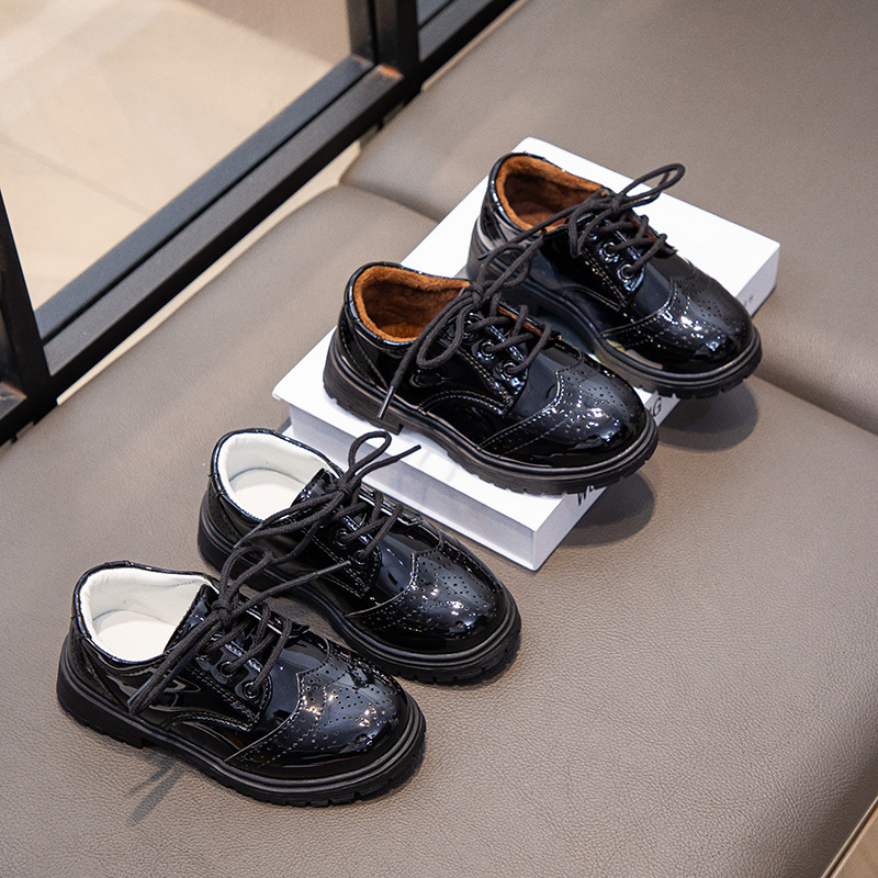 Черные кожаные туфли для мальчиков плюс бархат утолщенные хлопчатобумажные туфли