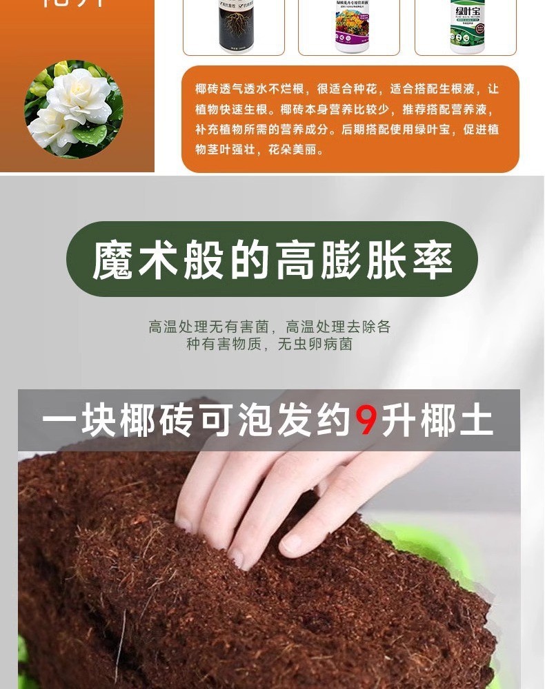 Кокосовый грунт-блок, универсальный кокосовый субстрат, крупнозернистая кокосовая стружка для выращивания цветов, овощей и растений, почва для посадки, кокосовый блок.
