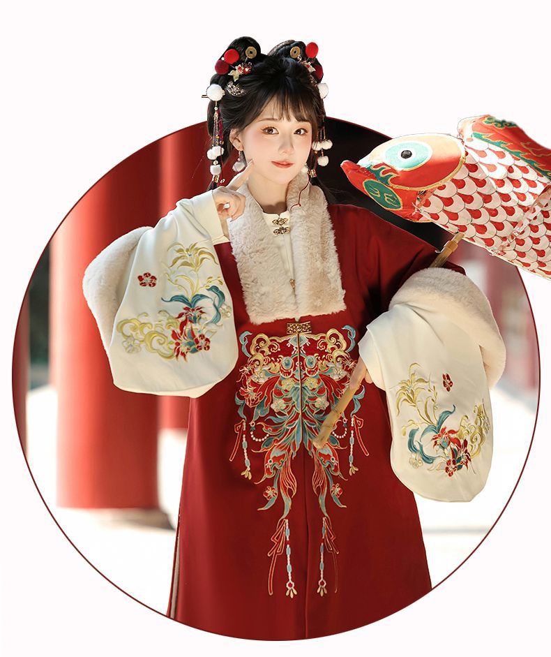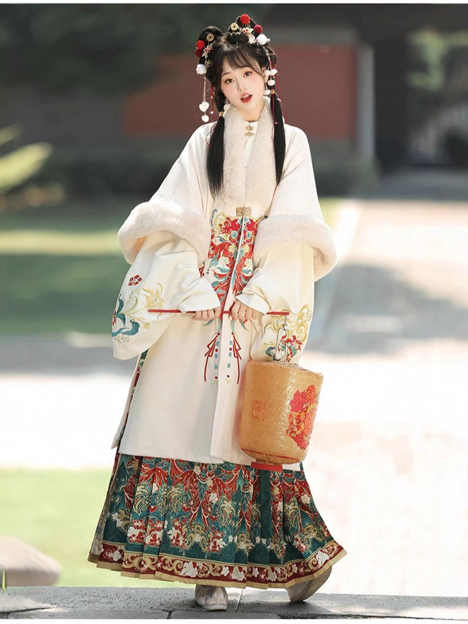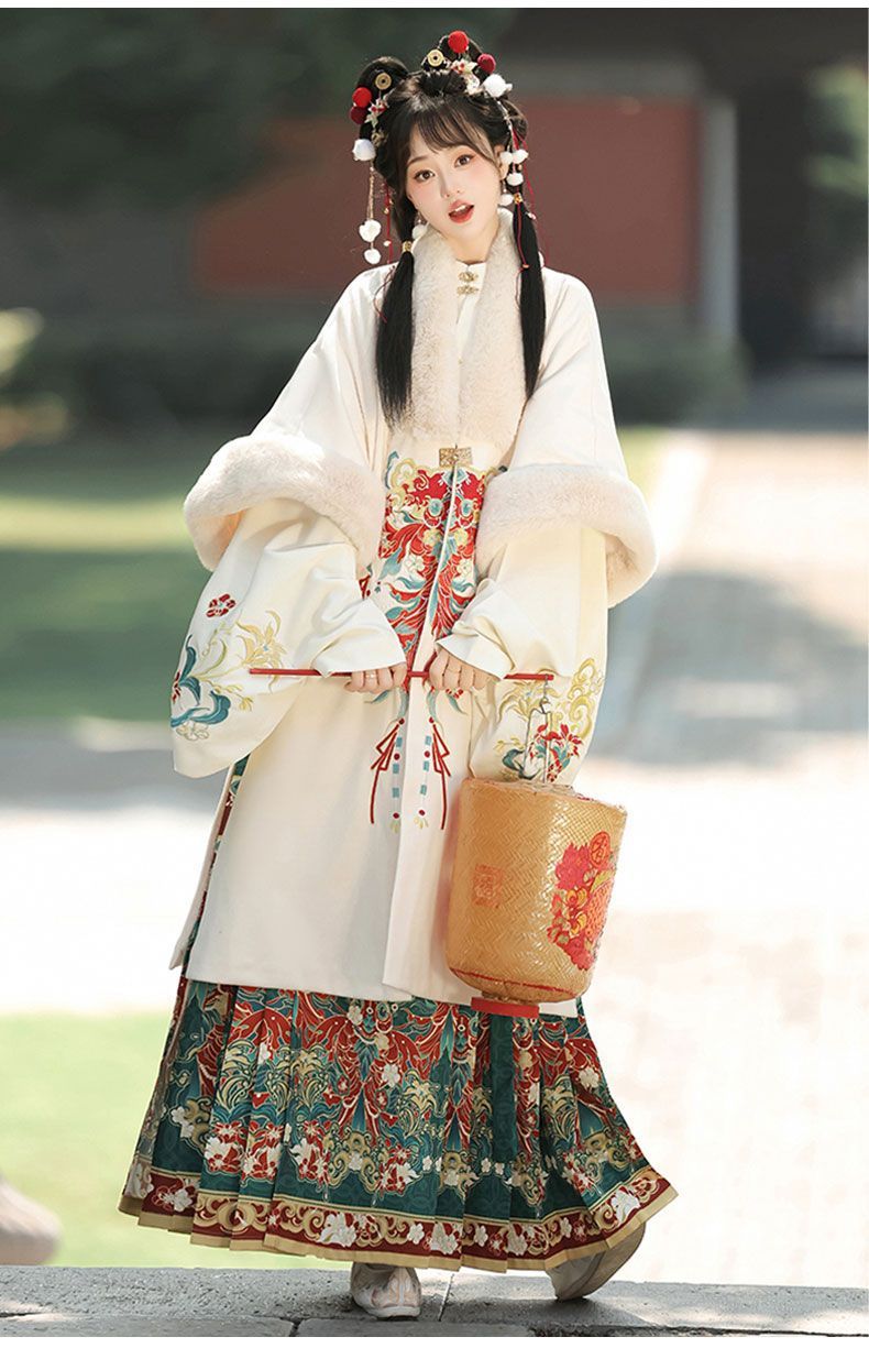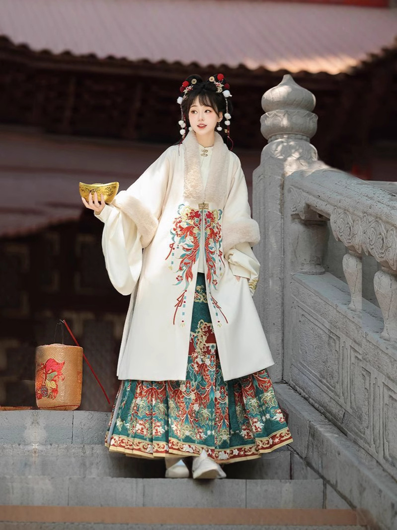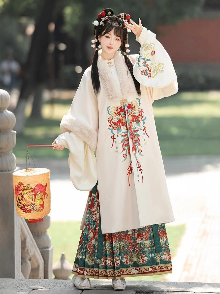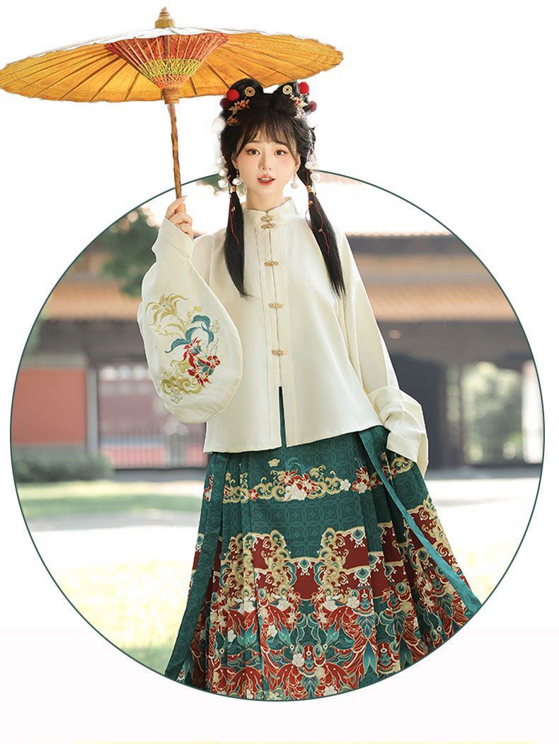 Бежевая одежда + подкладка + зеленая юбка для лошади.; Цегляно-красная одежда + подкладка + поверхность красной лошади.; Бежевая комбинированная одежда с воротником; Одежда с кирпичным красным воротником