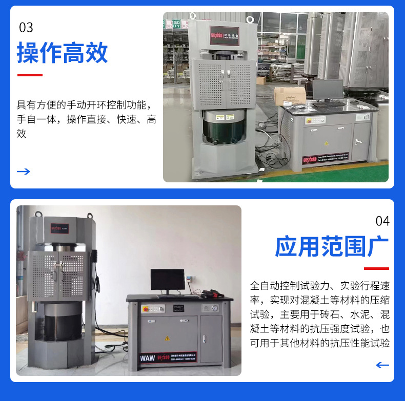 Испытание на прочность на сжатие кирпича, камня, цемента, бетона и других материалов, а также может использоваться для испытания на прочность на сжатие других материалов.