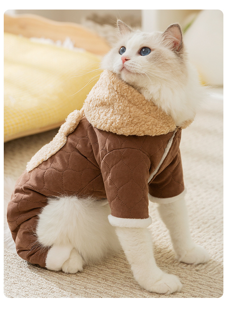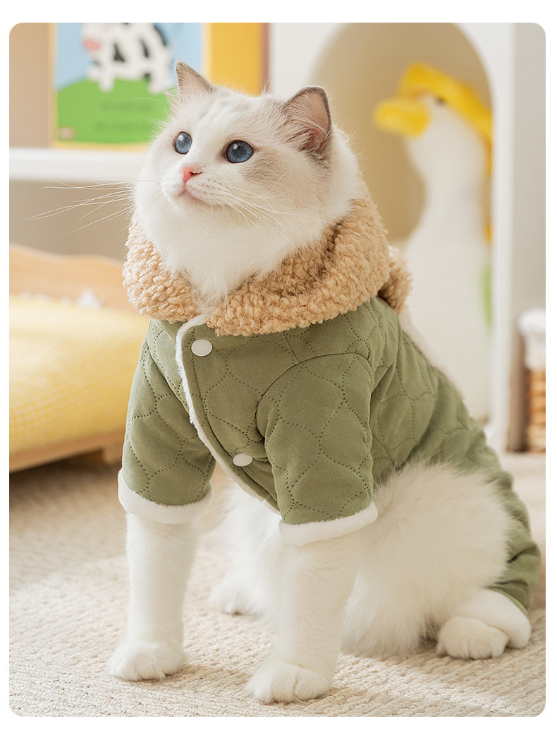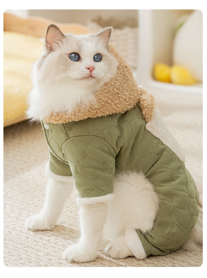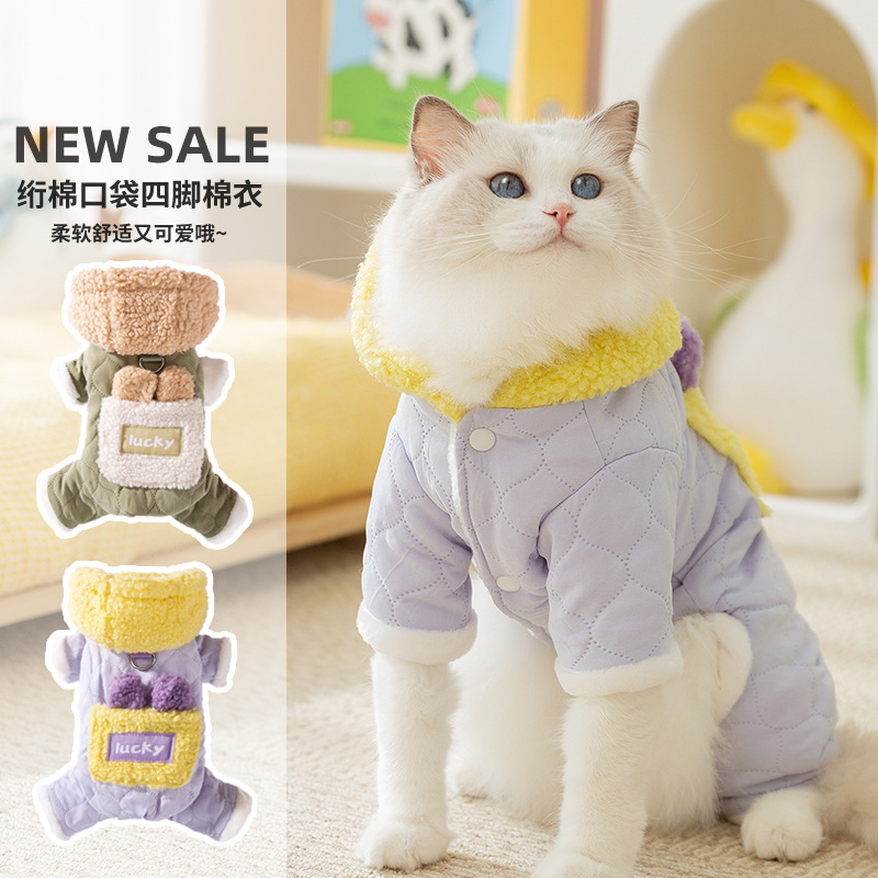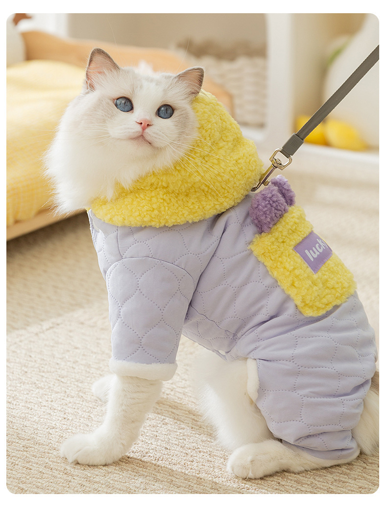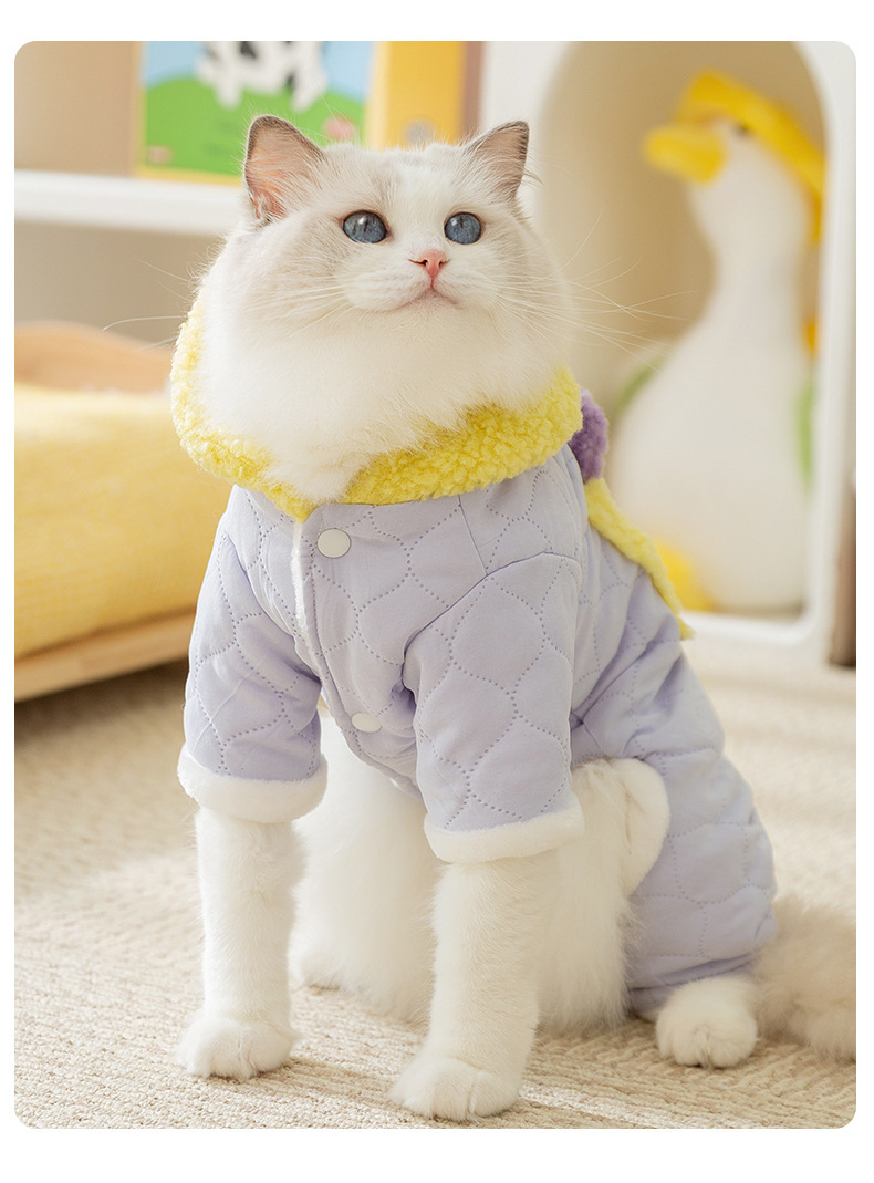Кошачья одежда осенью и зимой толстые стеганые карманы буксирная хлопчатобумажная одежда из четырех ног синяя кошка безволосая кошка домашняя одежда