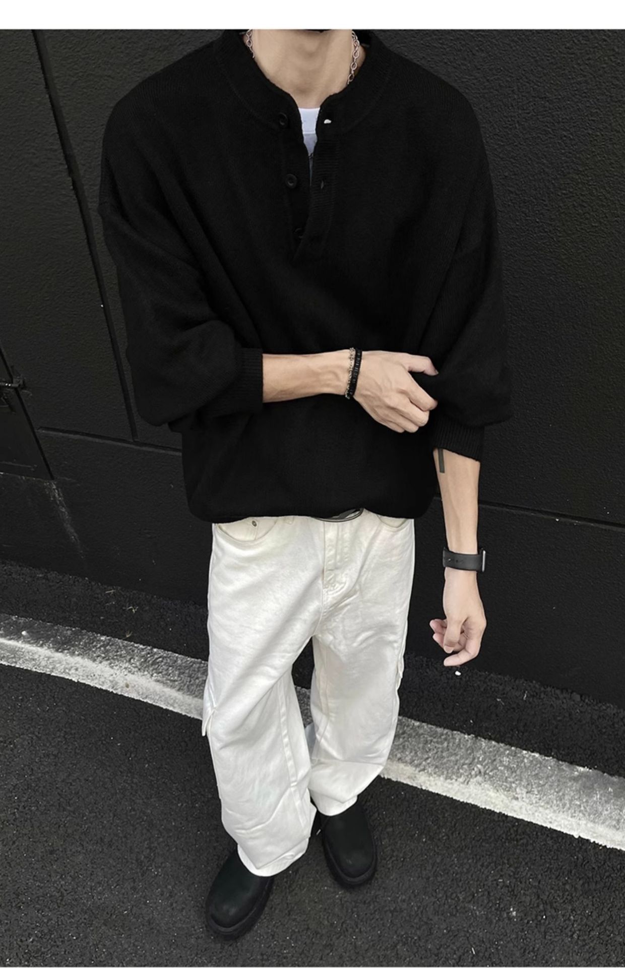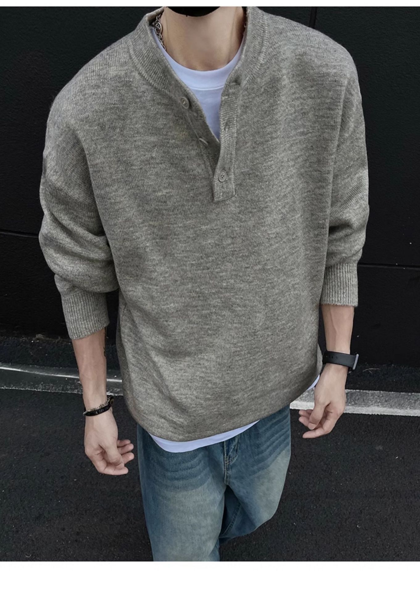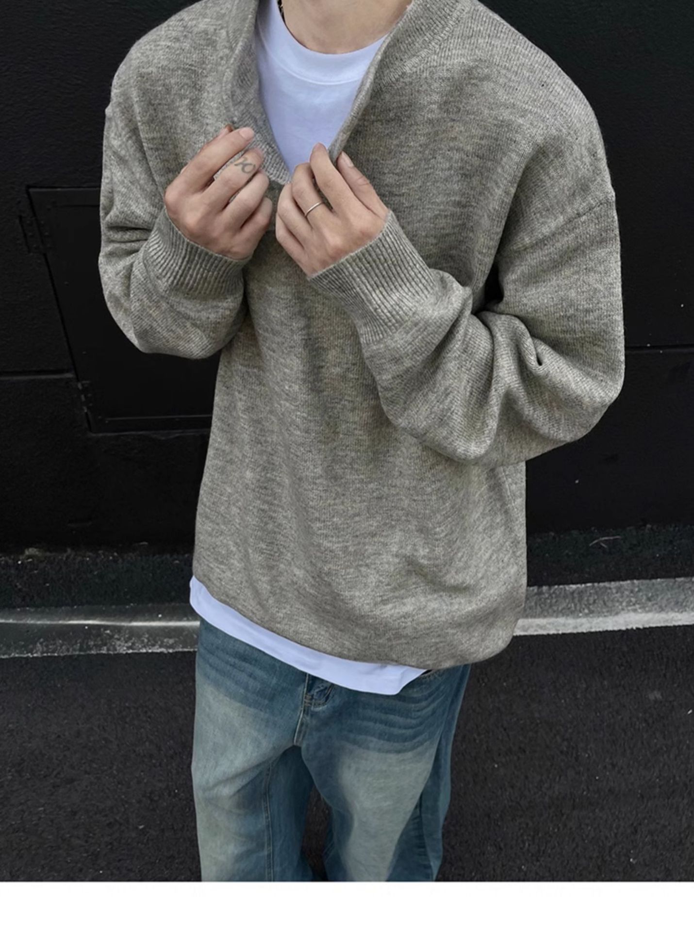 Cleanfit свитер Henry с воротником мужской осенний и зимний корейский с длинными рукавами серый вязаный свитер американский ретро свитер