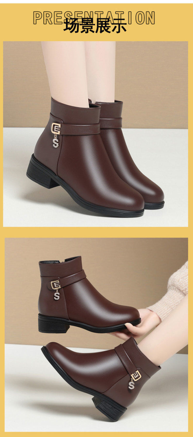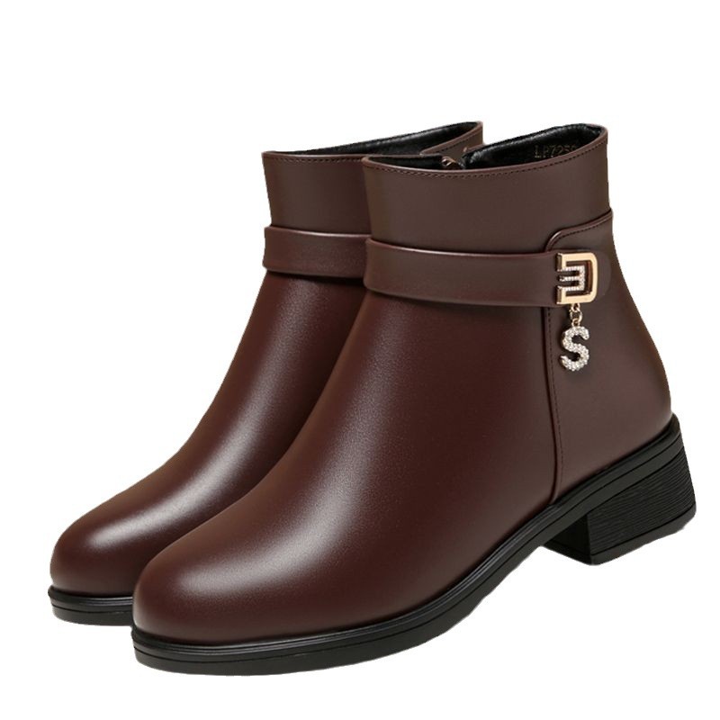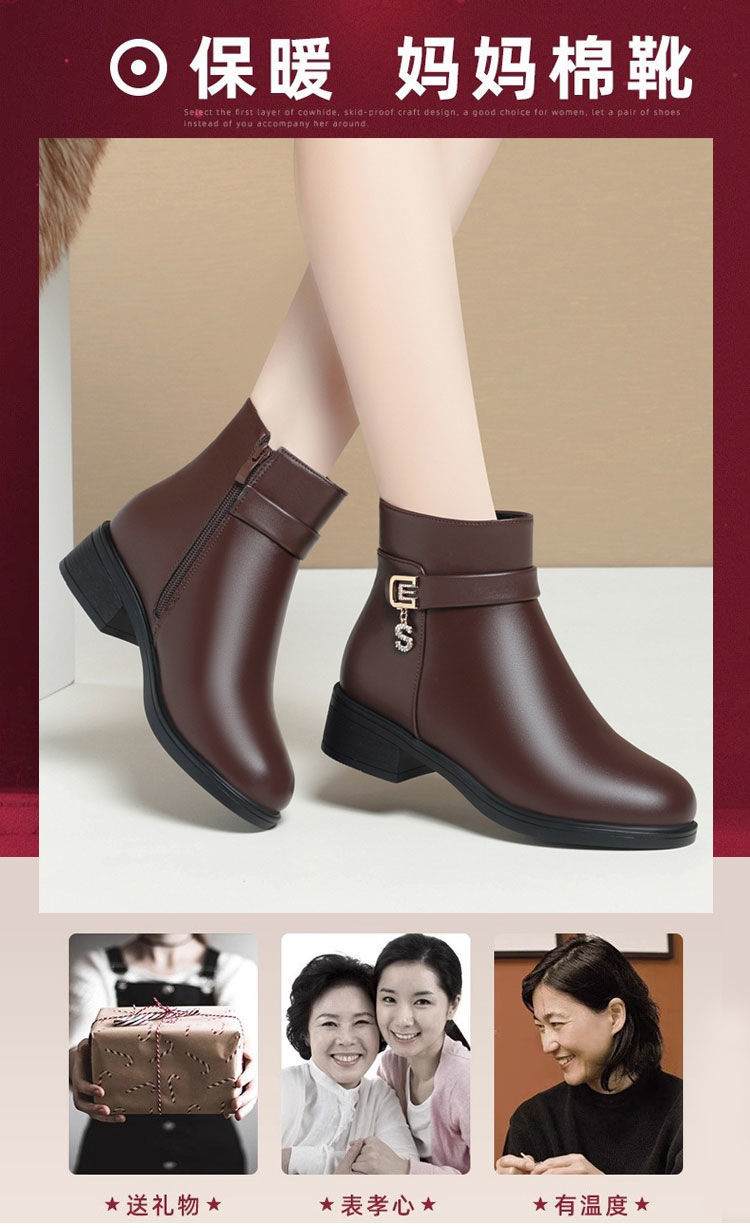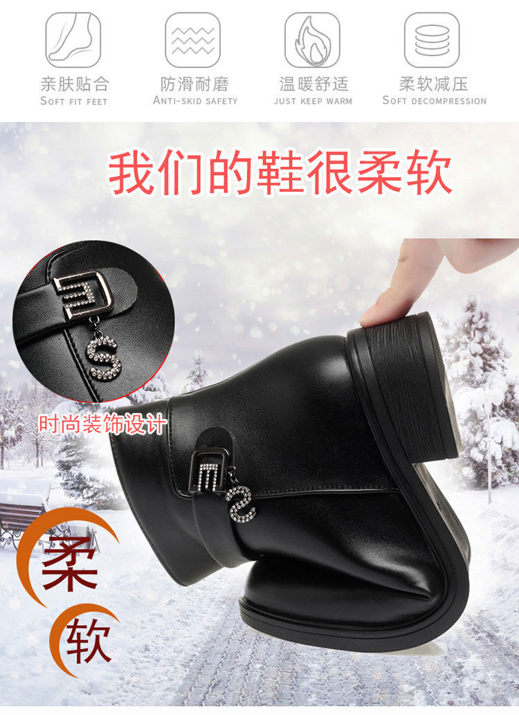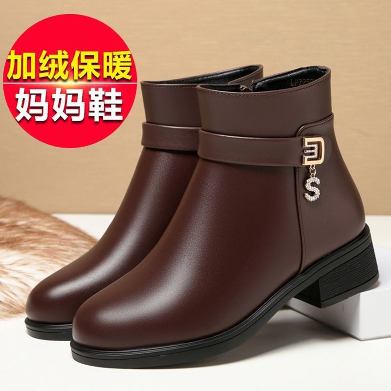 Толстые каблуки с мягким дном плюс бархатные хлопчатобумажные туфли для мамы 2024 зимой теплые и нескользкие сапоги для женщин среднего и пожилого возраста, дикие модные сапоги